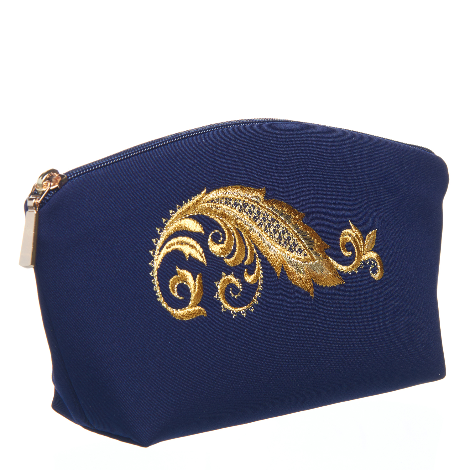 Косметичка "Золото осени". Синяя с золотой вышивкой