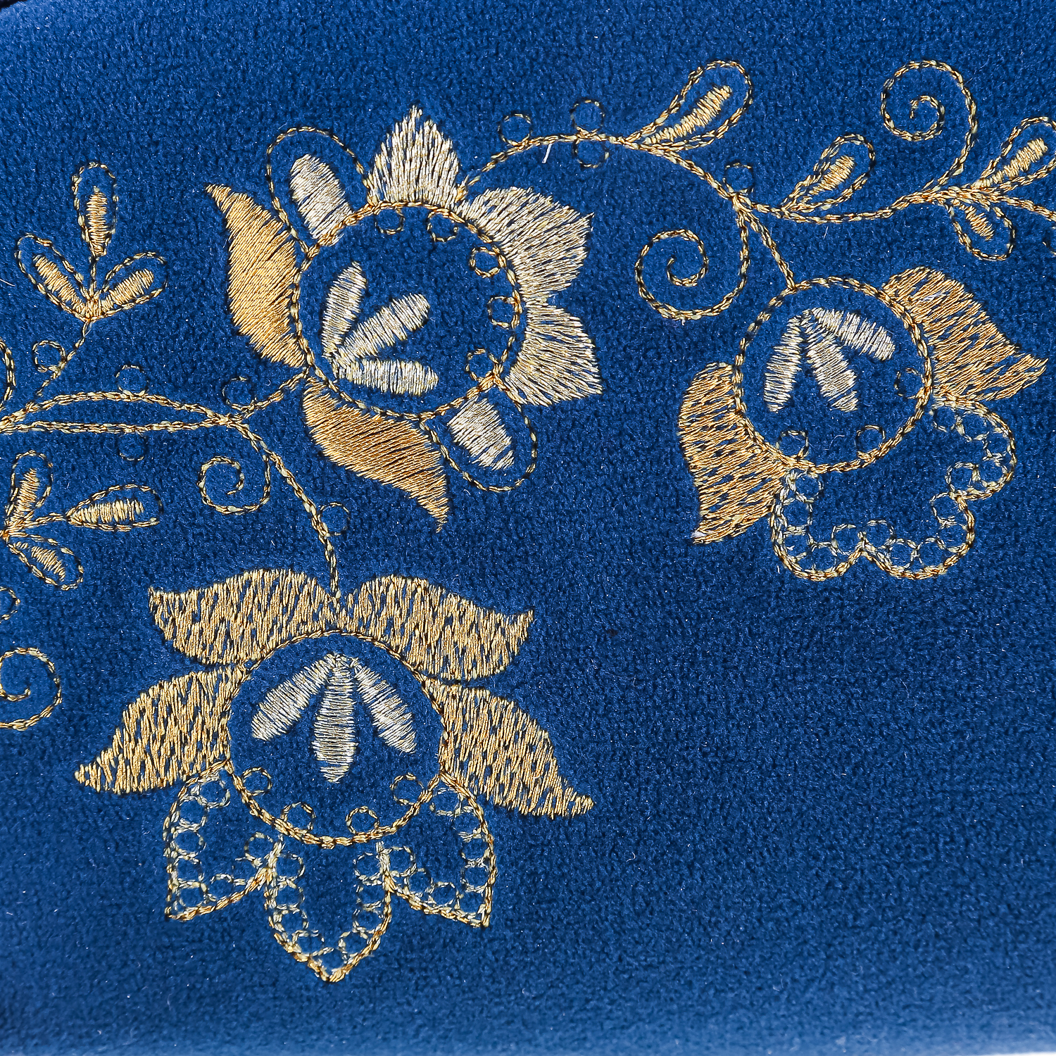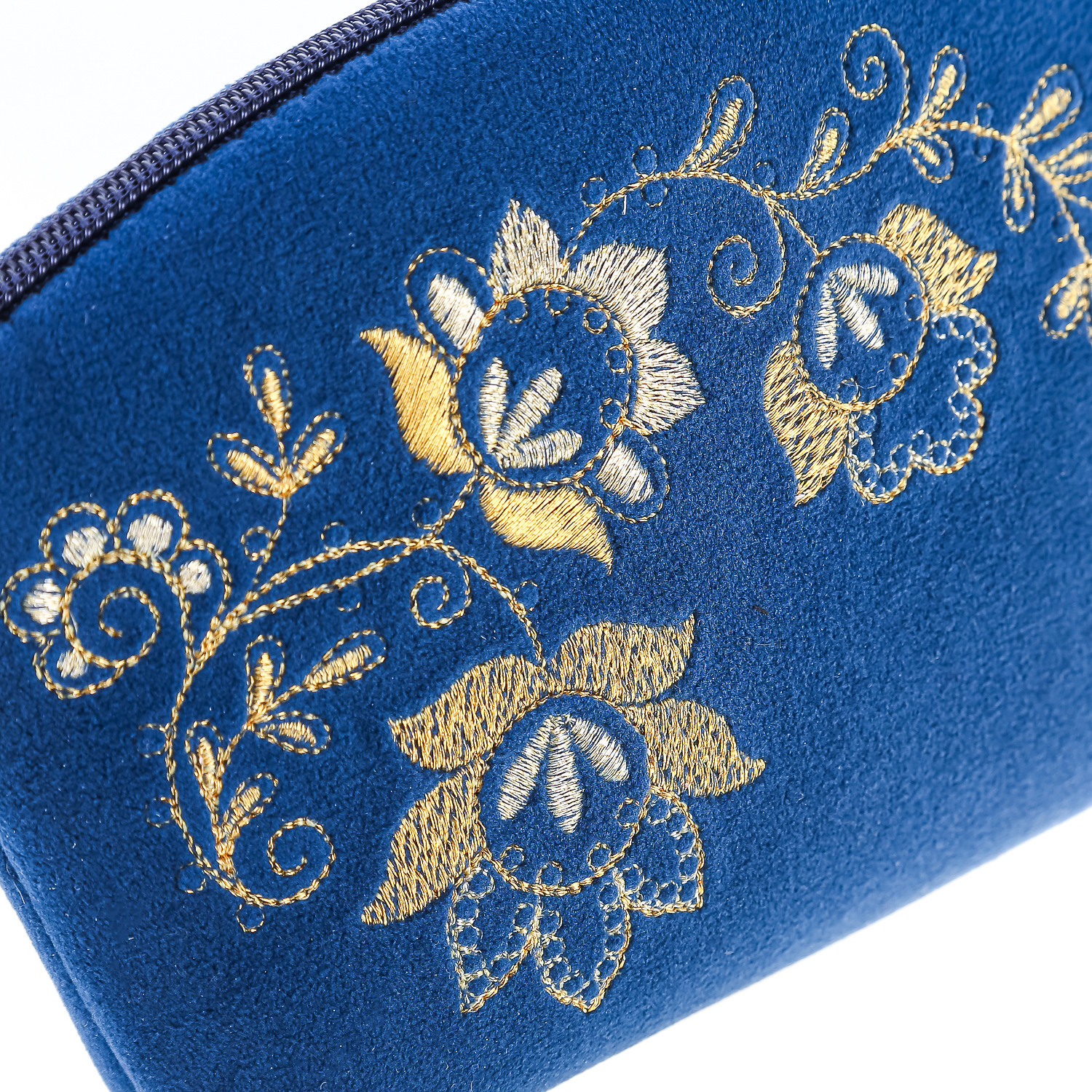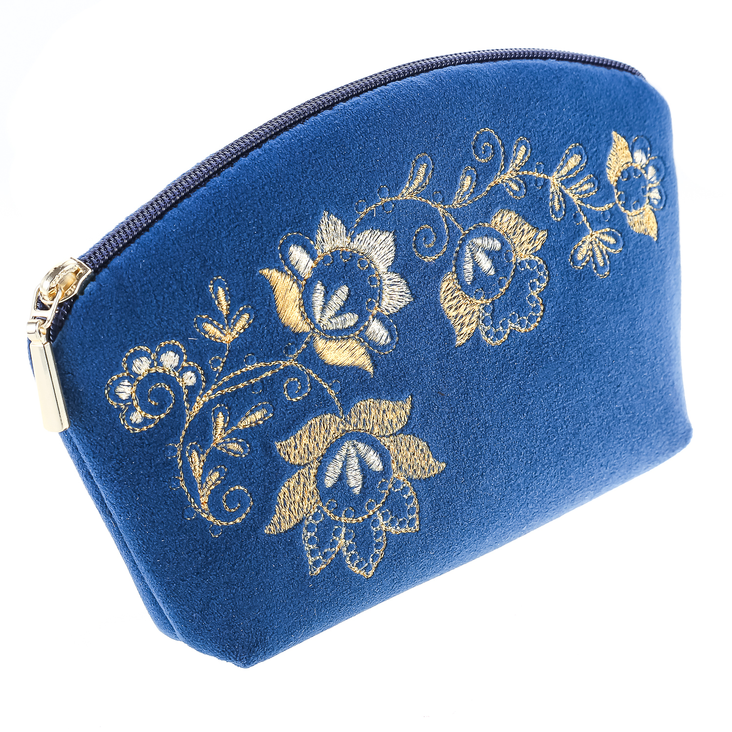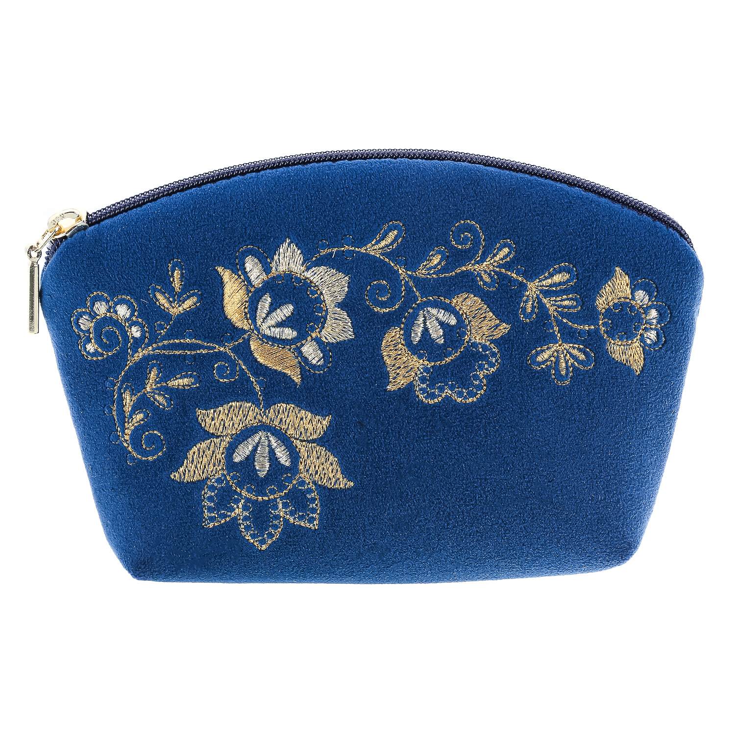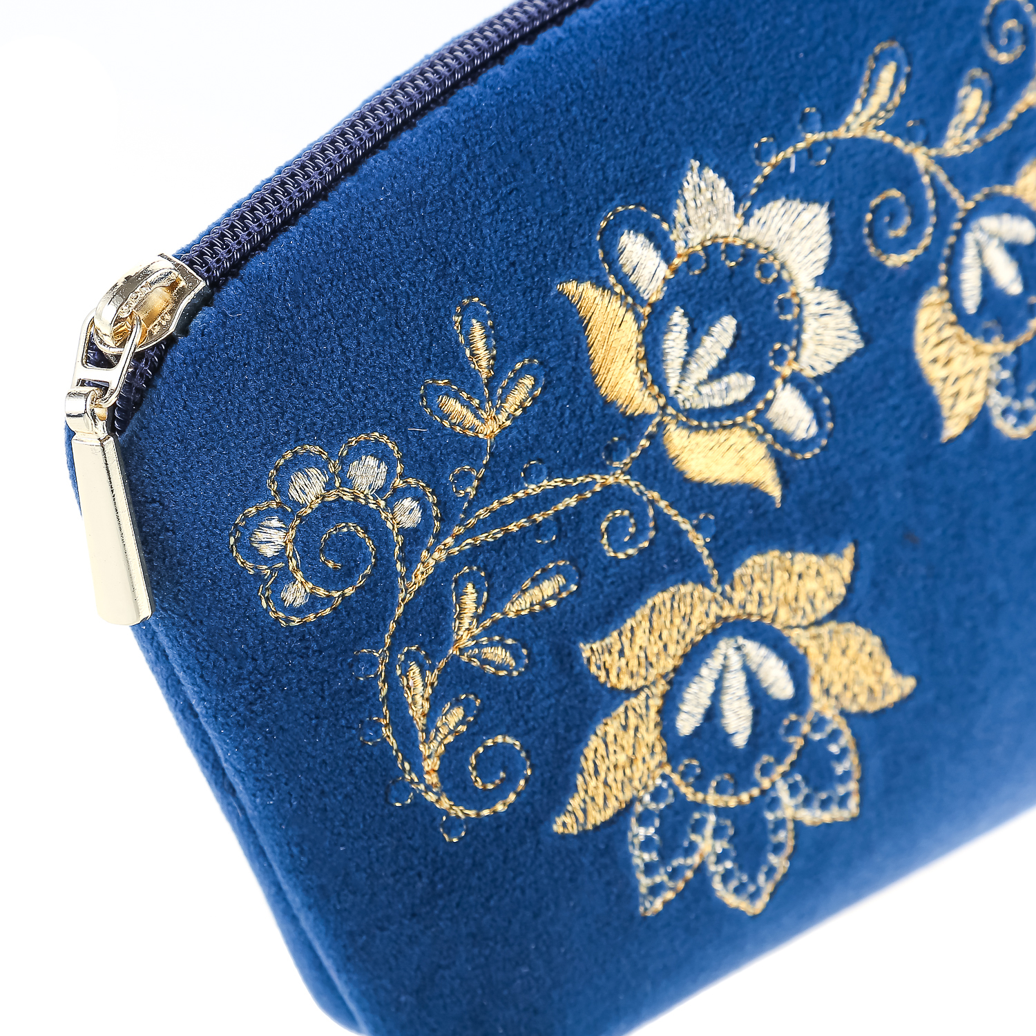 Косметичка бархатная "Весеннее настроение". Темно-синяя с золотой вышивкой