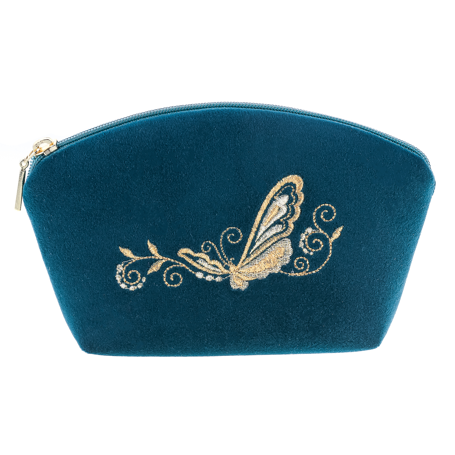 Русские подарки и сувениры → Аксессуары → Косметички → Косметичка бархатная "Бабочка". Морская волна с золотой вышивкой