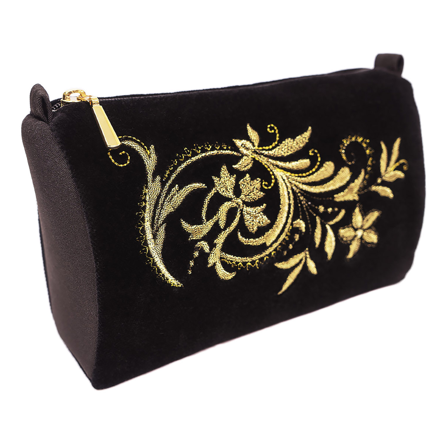 Косметичка "Узоры". Черная с вышивкой.Материалы: бархат, полиэстер.
