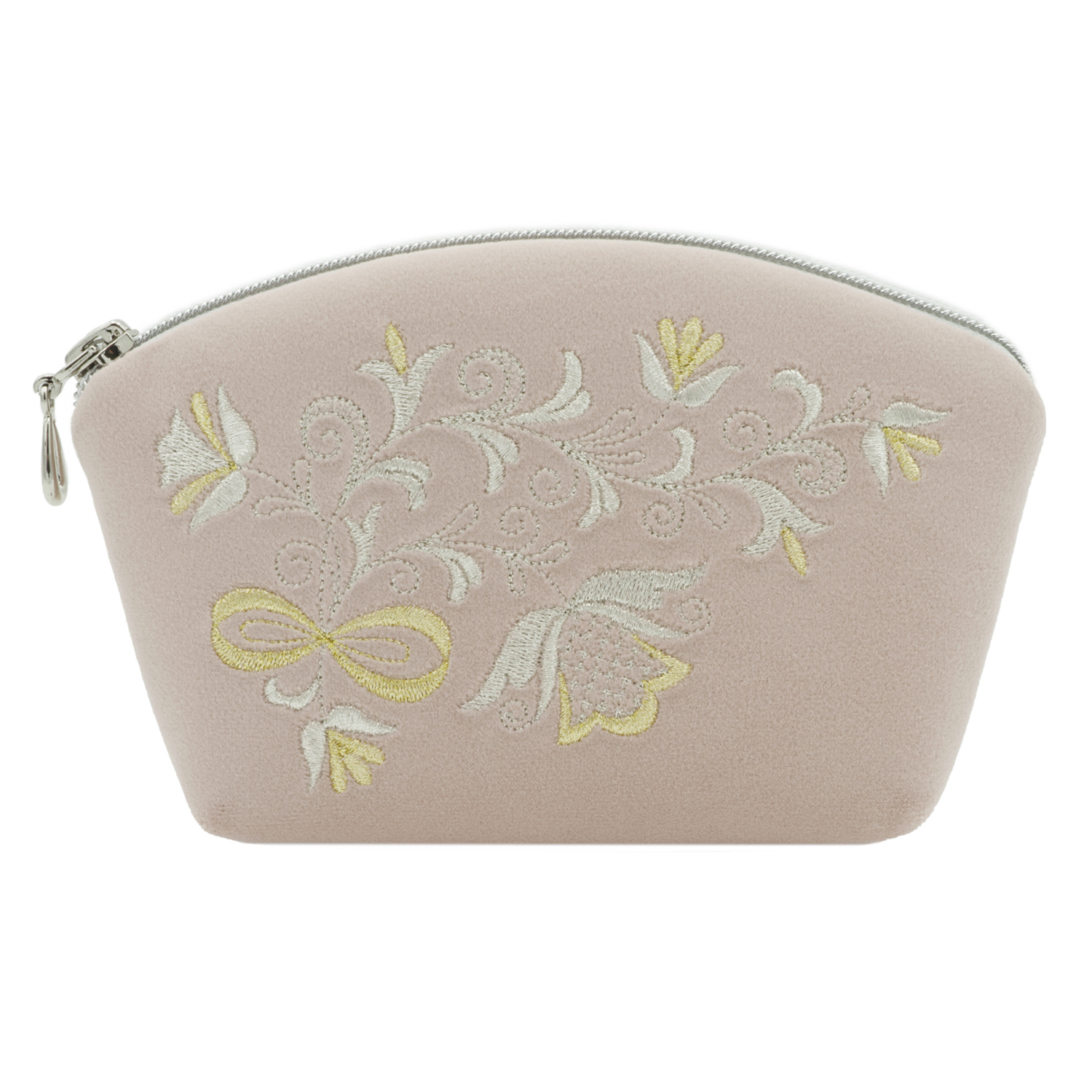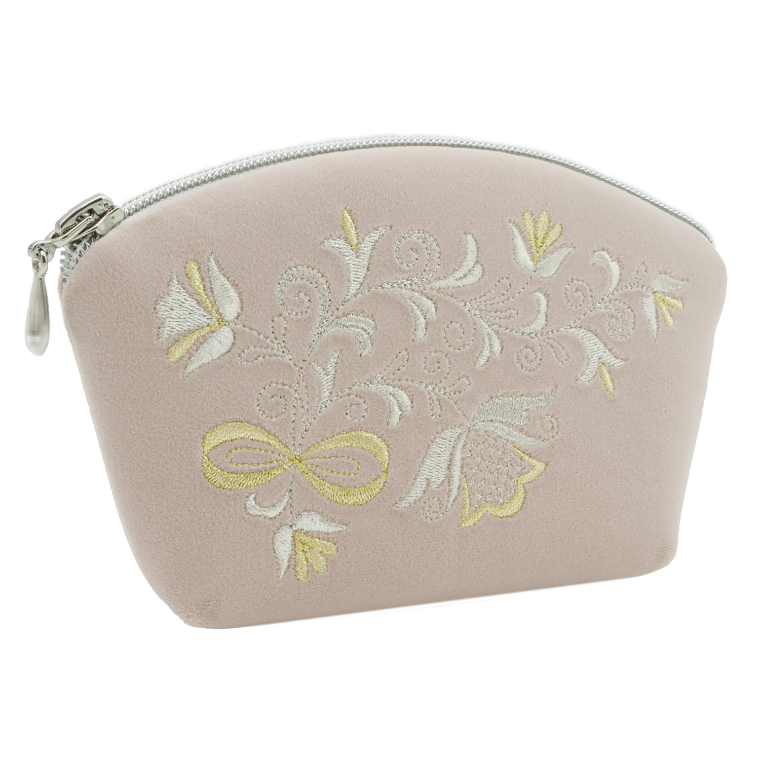 Русские подарки и сувениры → Аксессуары → Косметички → Косметичка бархатная с вышивкой "Букет". Розовая