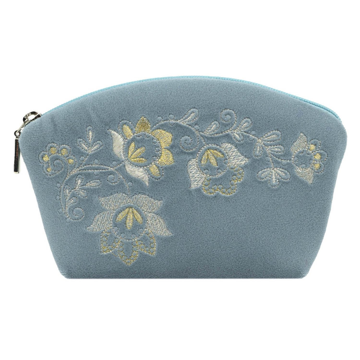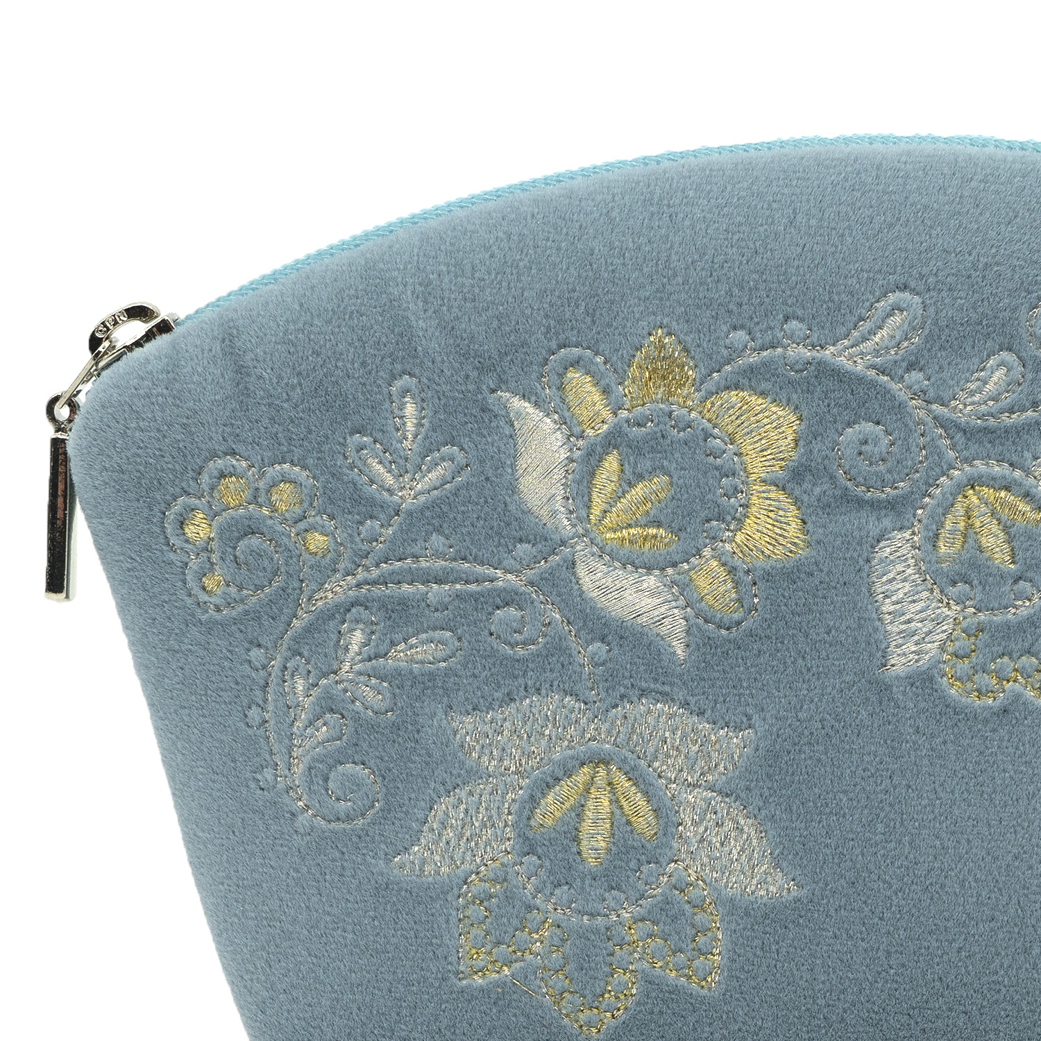 Косметичка бархатная с вышивкой "Весеннее настроение". Голубая.