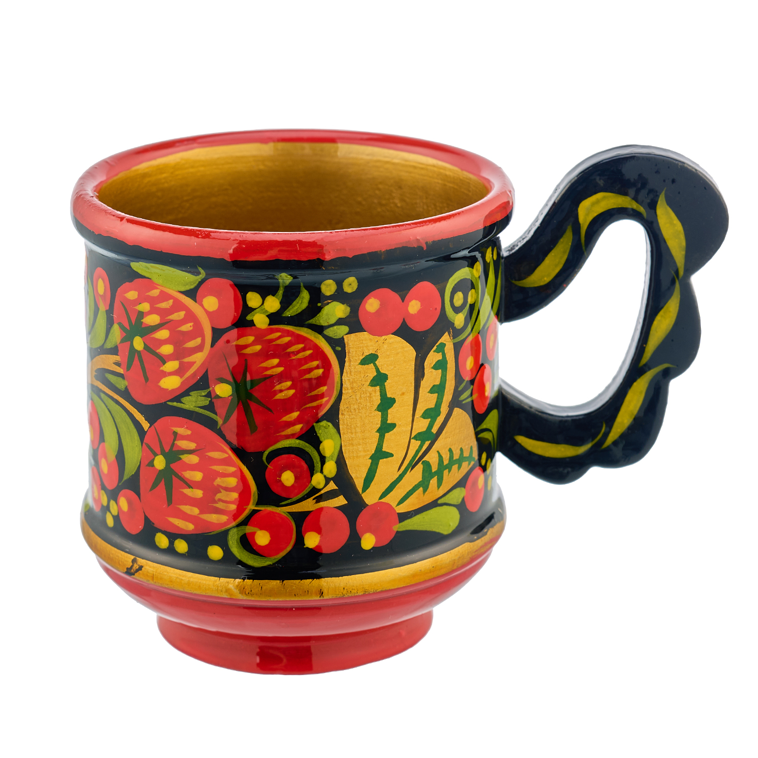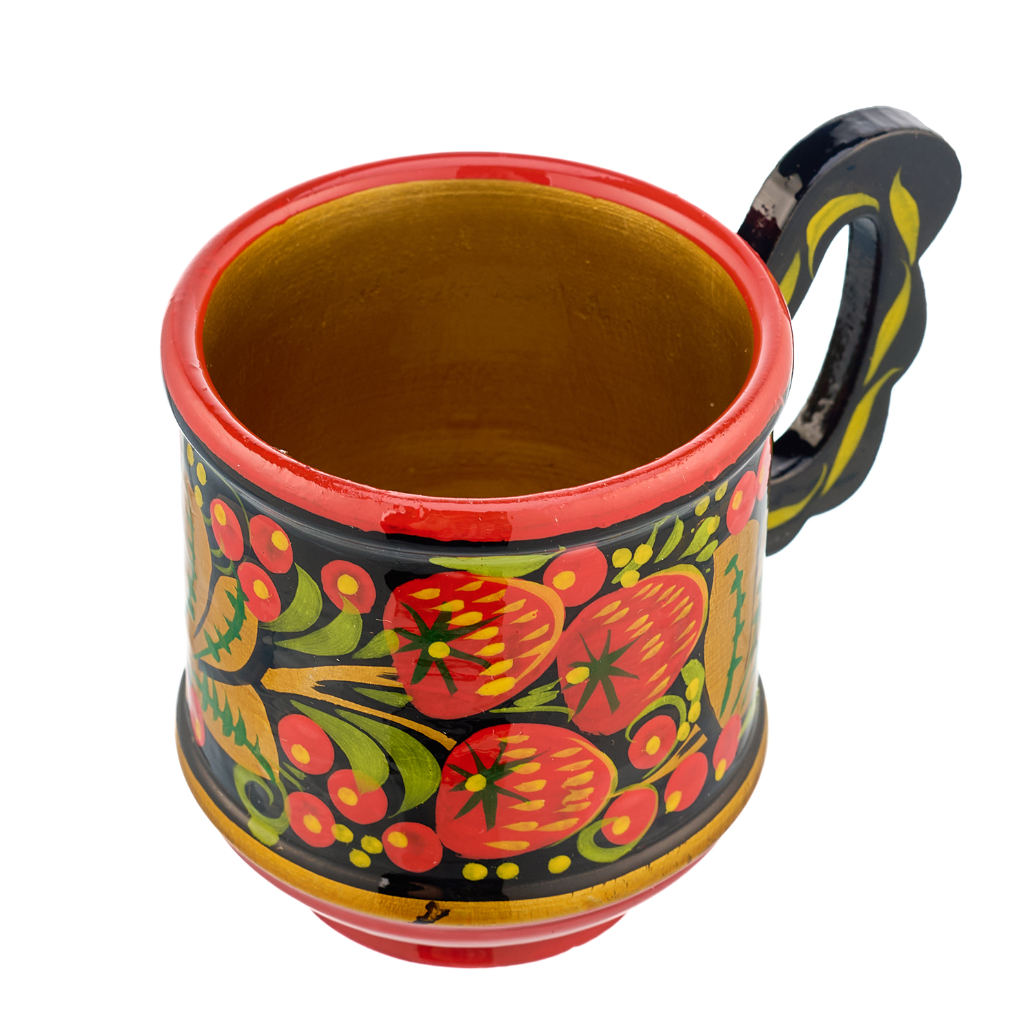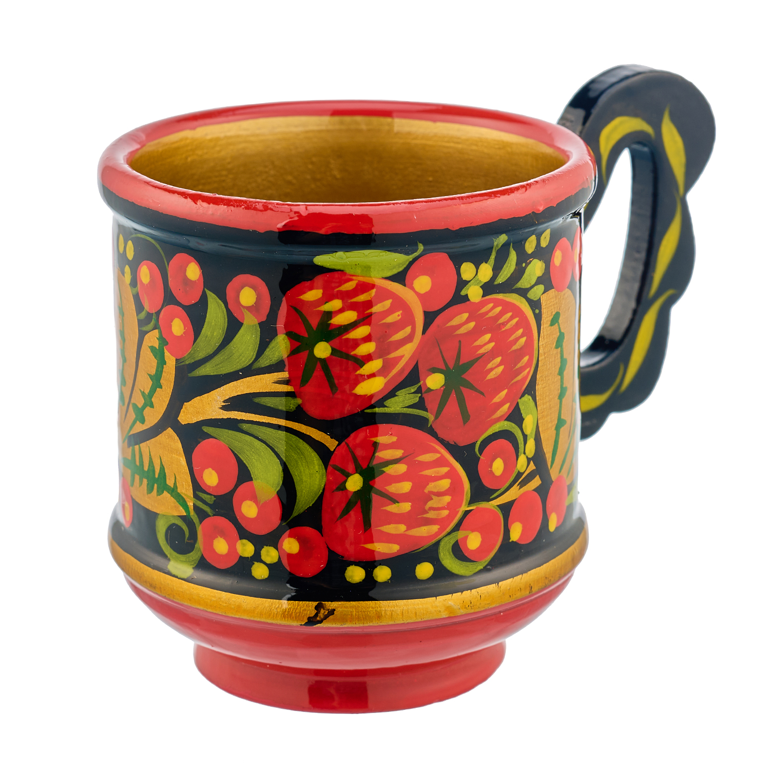 Кружка "Клубника". Хохлома.Материалы: дерево, краски, лак.