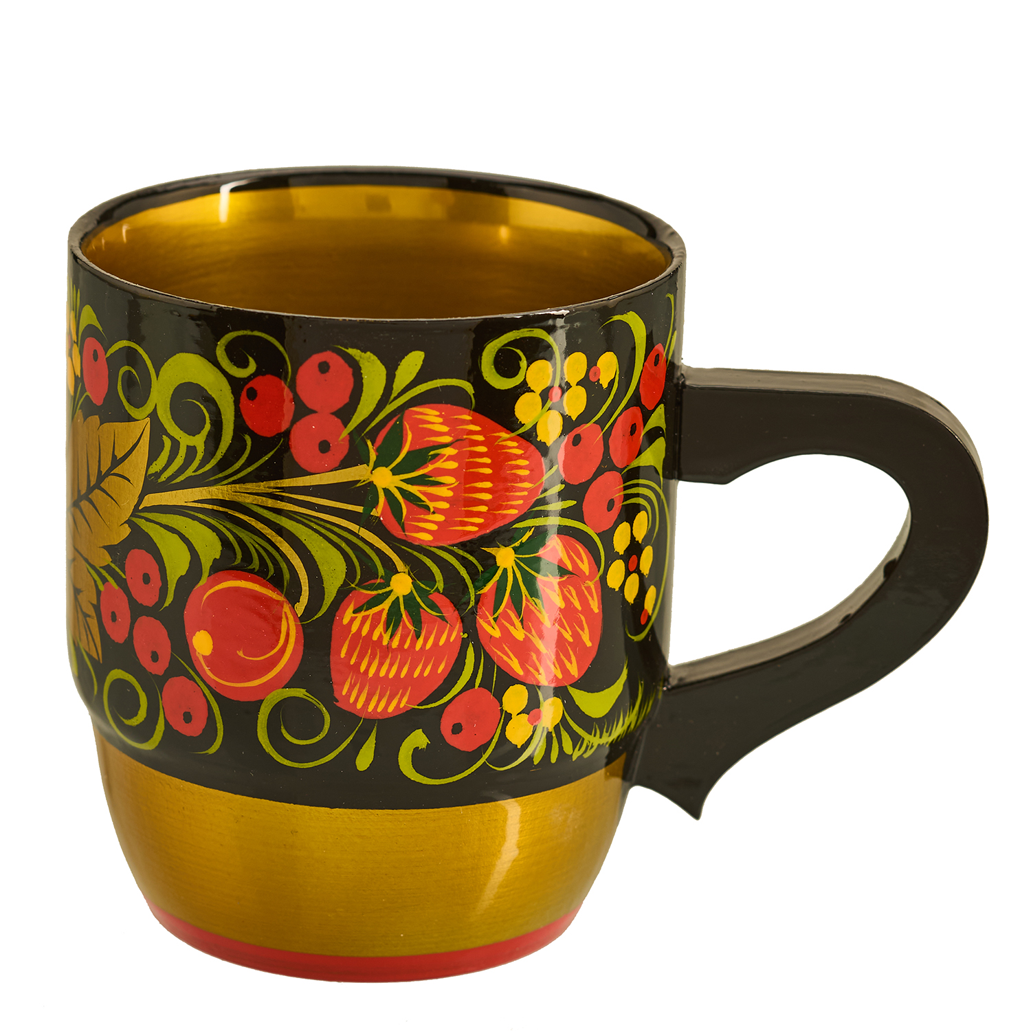 Кружка "Клубника". Хохлома.Материалы: дерево, краски, лак.
