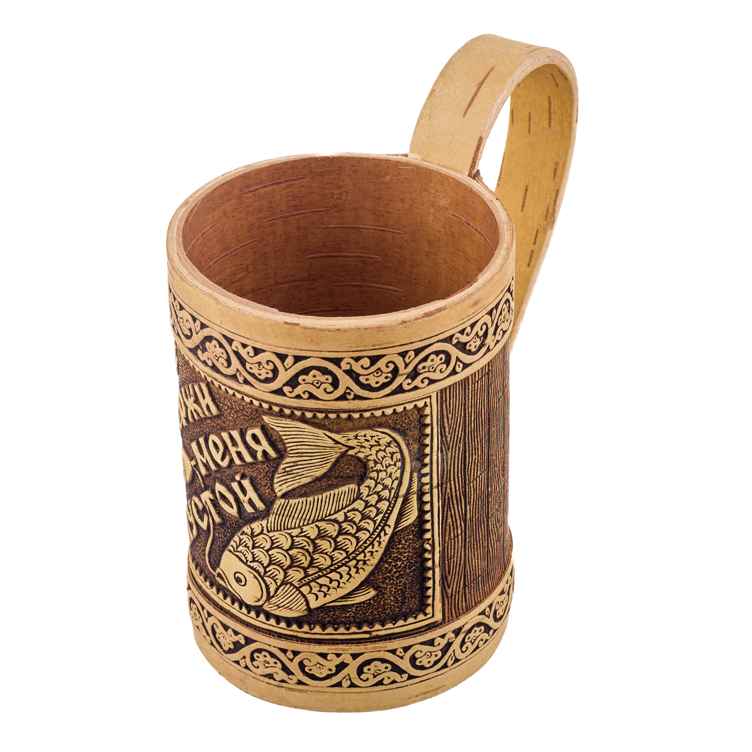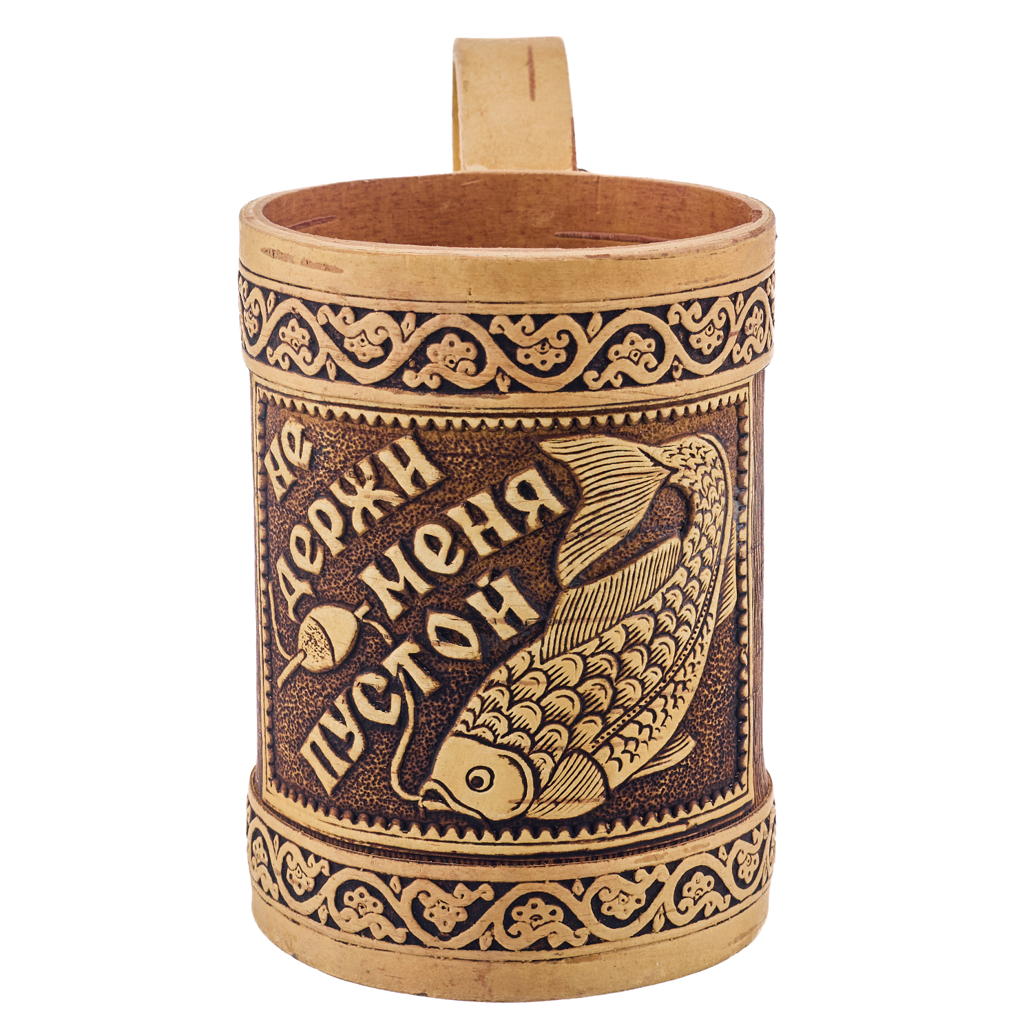 Кружка пивная из бересты "Рыба. Не держи меня пустой".
