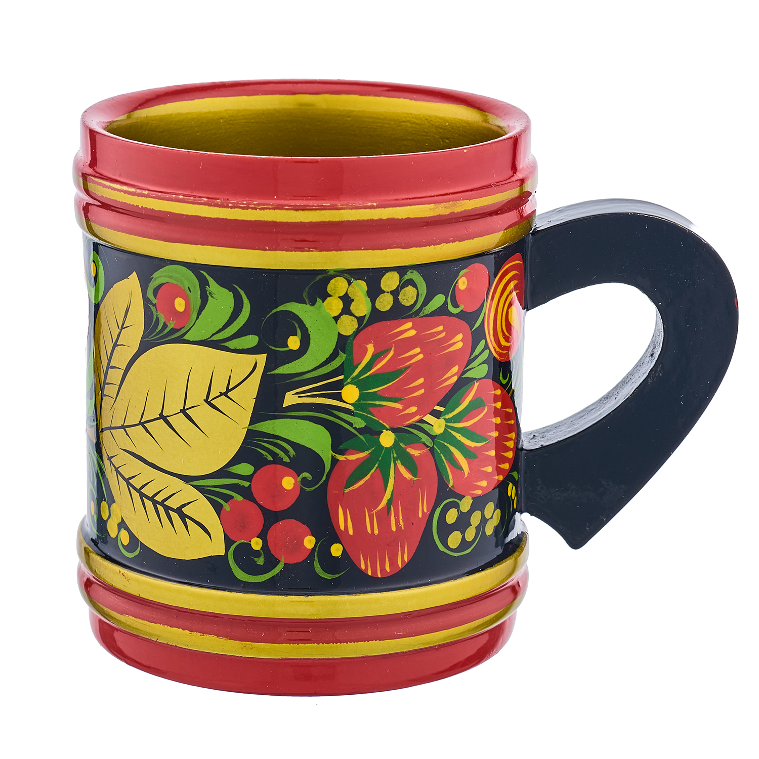 Кружка деревянная с росписью "Клубника". Хохлома