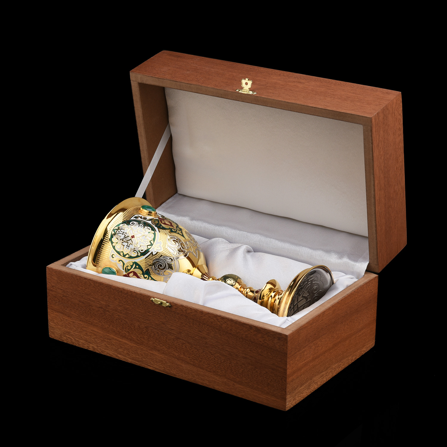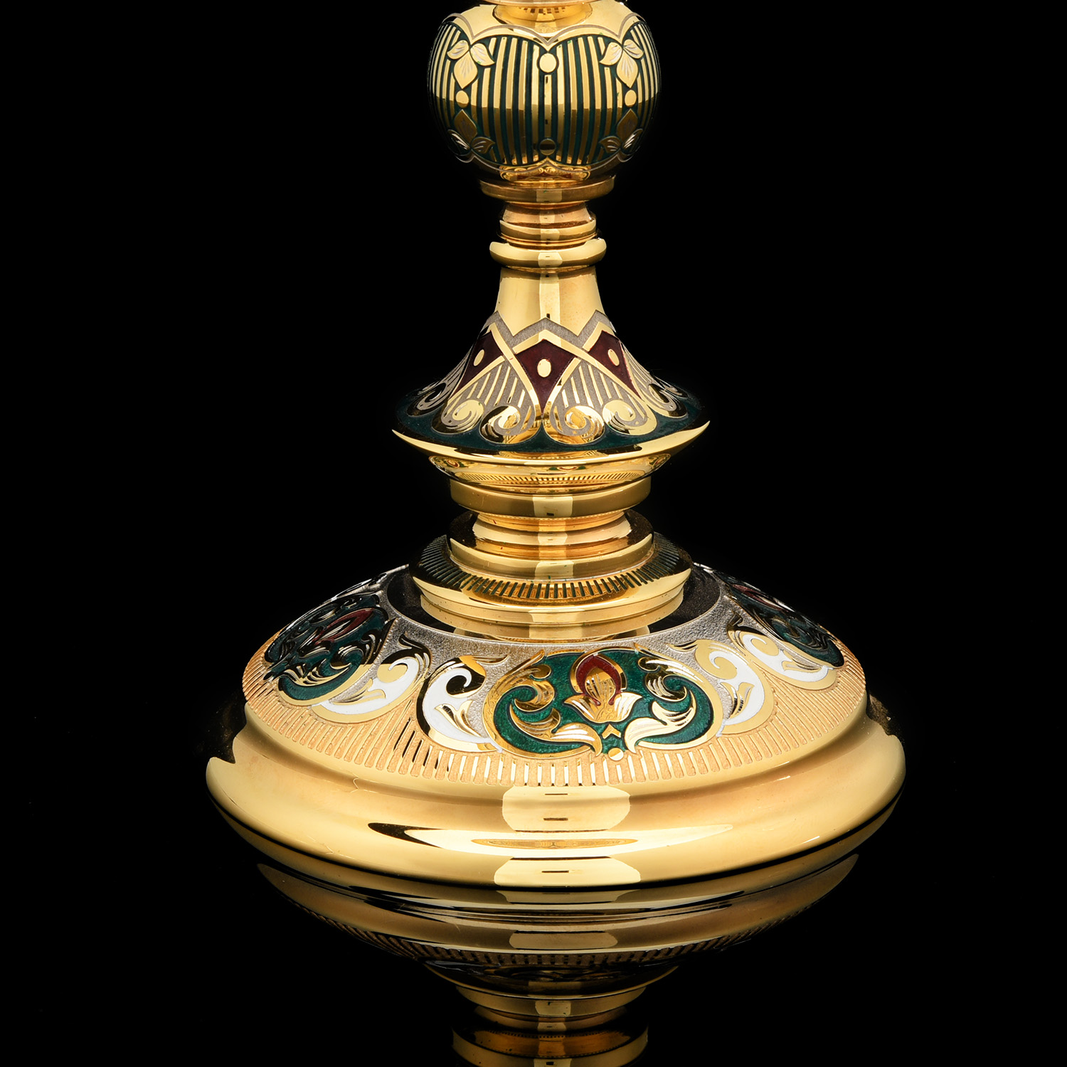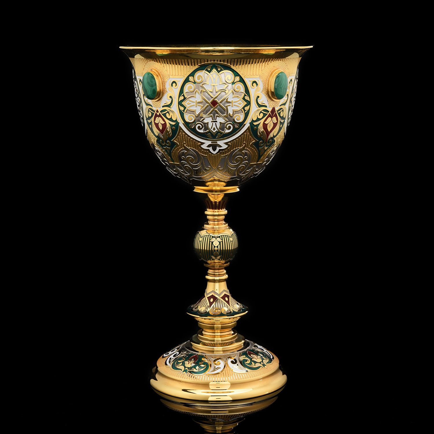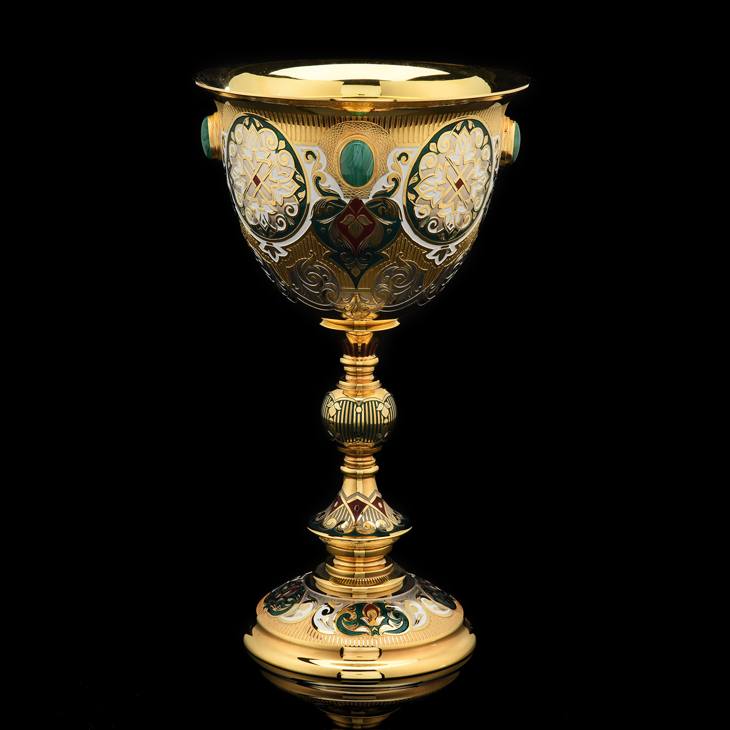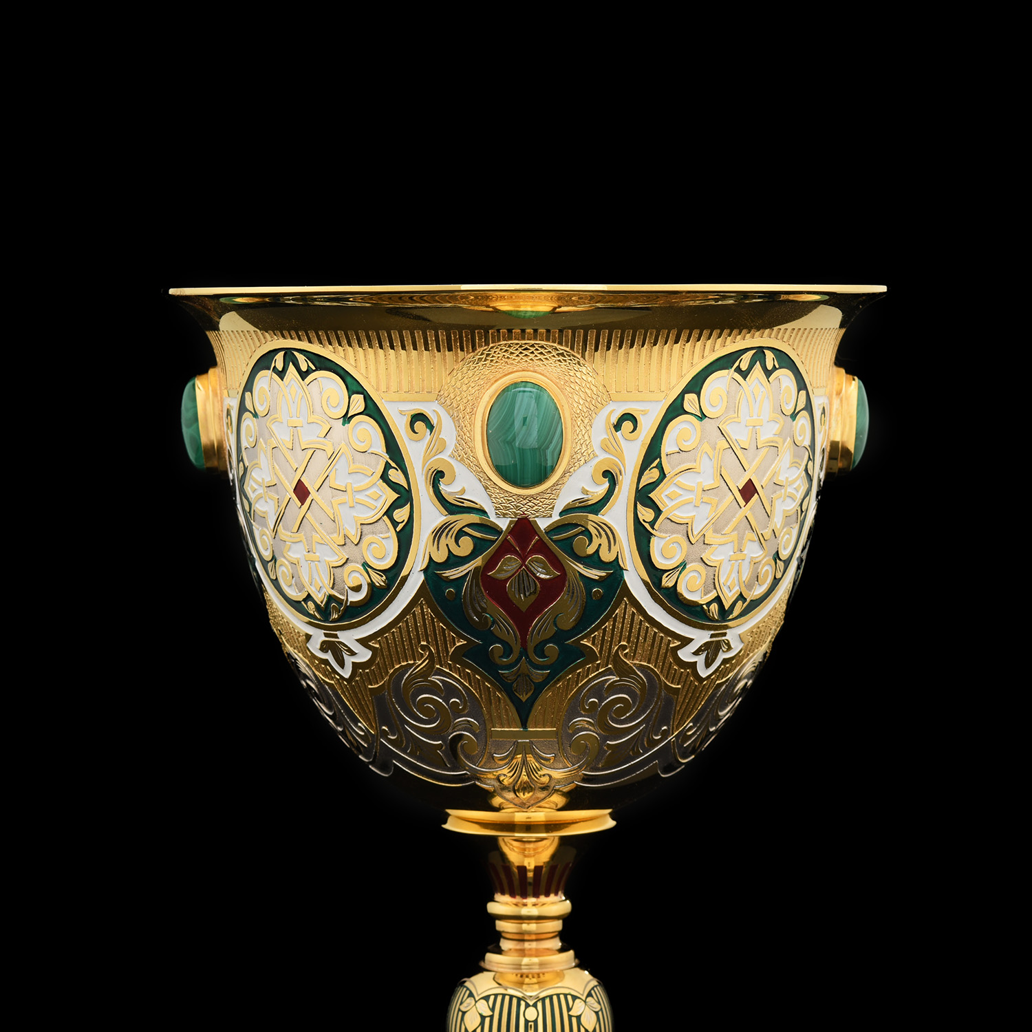Кубок "Малахит". Златоуст.Материалы: латунь, никель, золото 999,9*, эмаль, малахит.
