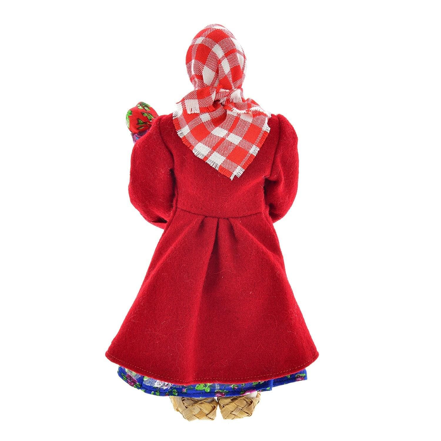 Лицо и руки  миловидной бабы оформлены  из керамики на основе высококачественной глины и расписаны вручную по неглазурированной поверхности. Традиционный головной убор платок, сарафан с расшитым передником и коротайка, а также плетеные лапти изготовлены  вручную в соответствии с традициями  кройки и шитья русского женского праздничного  костюма.