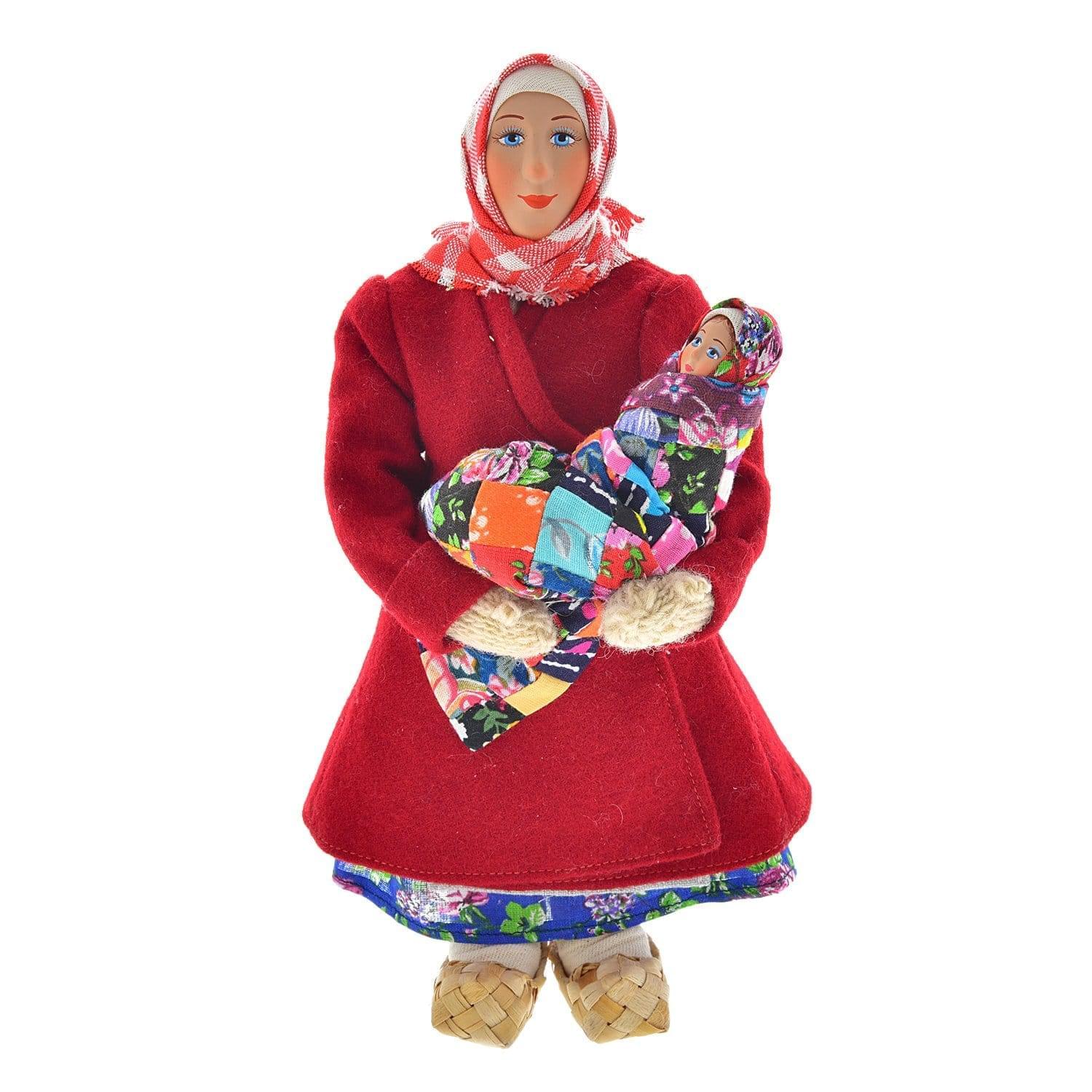 Фарфоровая кукла ручной работы "Баба в коротайке с ребёнком"
