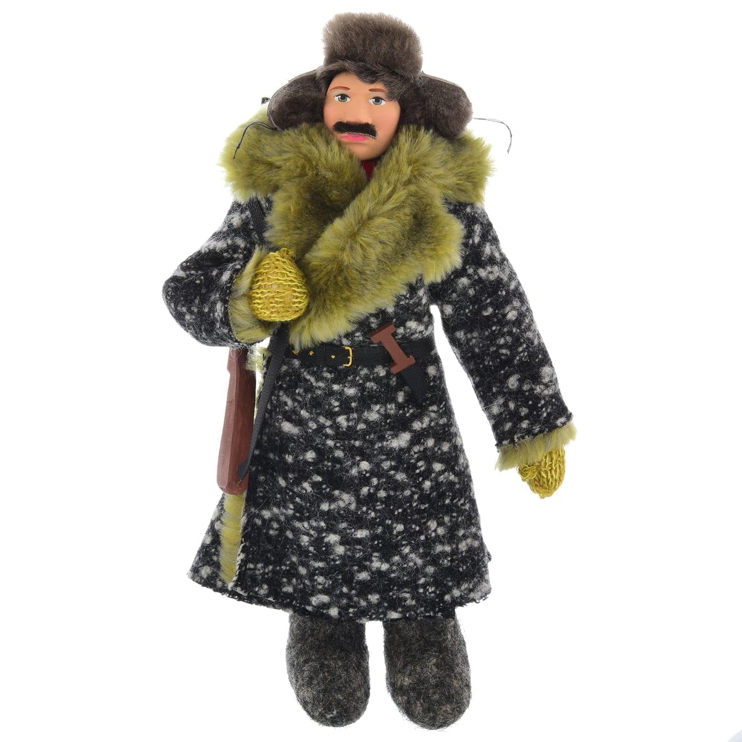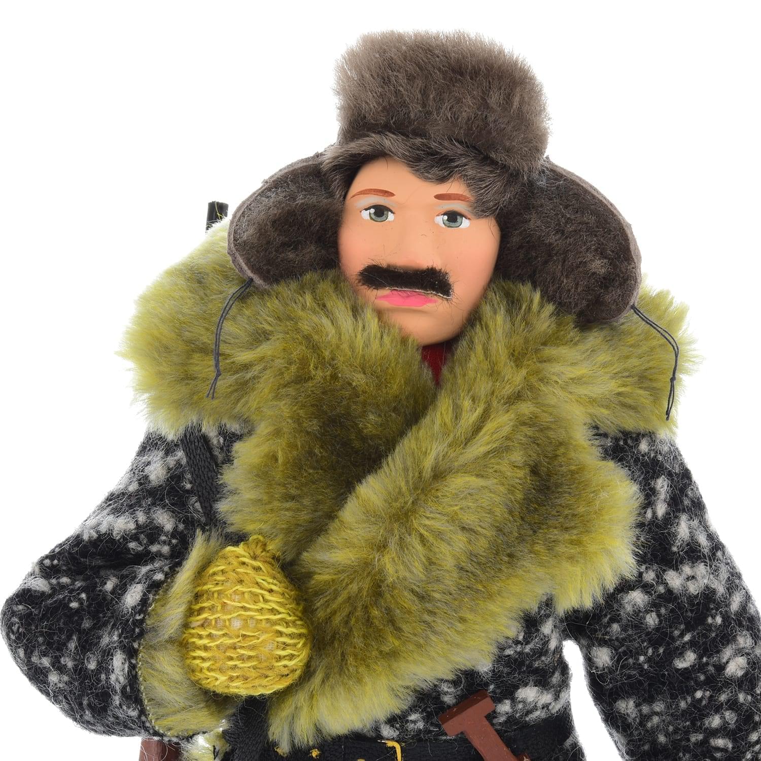 Перед Вами — современный образ усатого красавца-охотника в дубленке и меховой шапке-ушанке с ружьем. Эта кукла представляет собой особый род штучного сувенира, универсальный элемент декора для интерьера, который непременно порадует любителя небанальных образцов хендмейда и русской охоты.