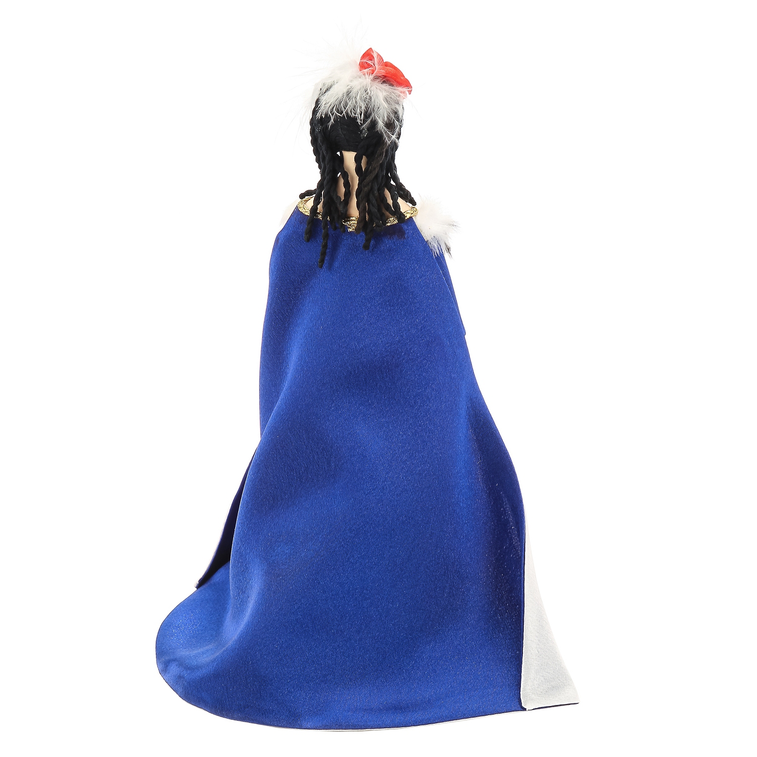 Мастера кропотливо подошли к созданию маскарадного костюма, который стилизован под костюм королей. Об этом говорит расцветка наряда и воротник из горностая.