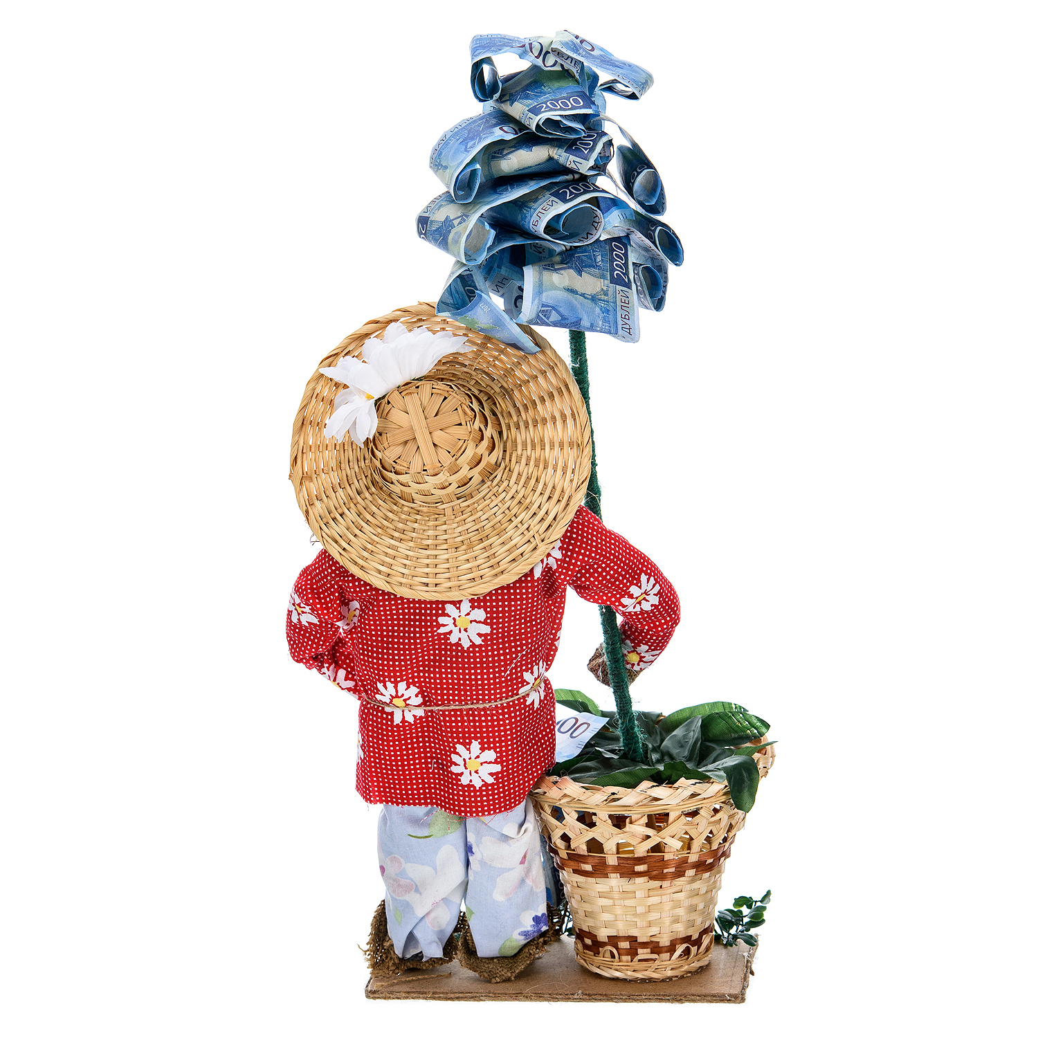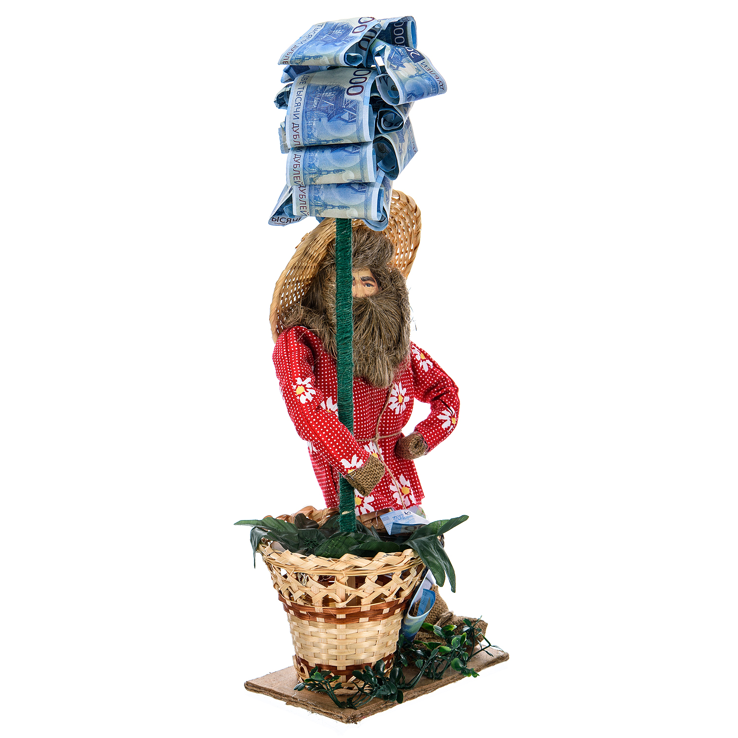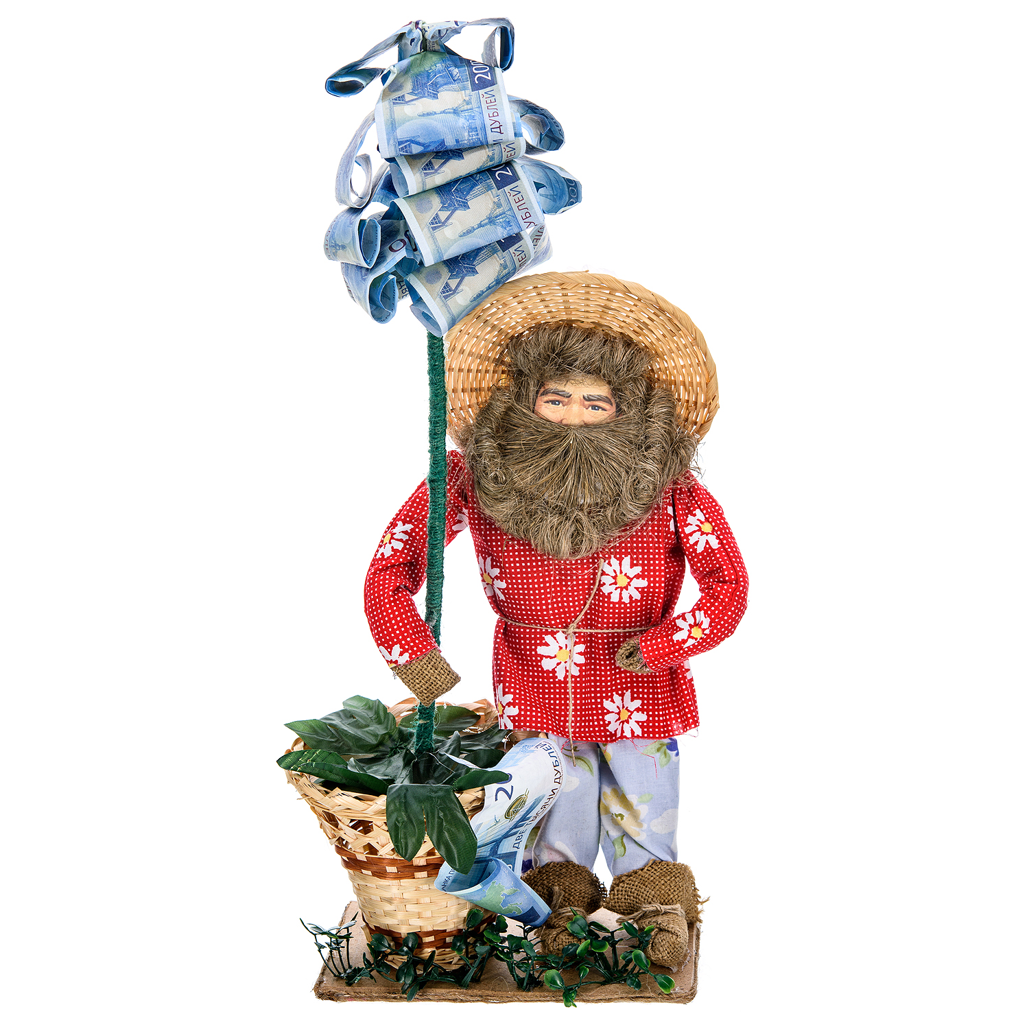 Кукла-оберег "Домовой с денежным деревом".Материалы: текстиль, солома, бумага.