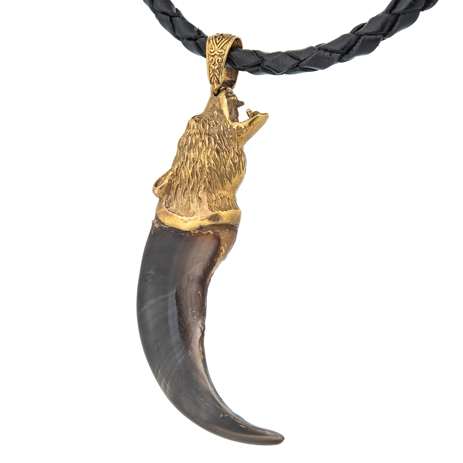 Материалы: коготь медведя, бронза, золочение, кожа.