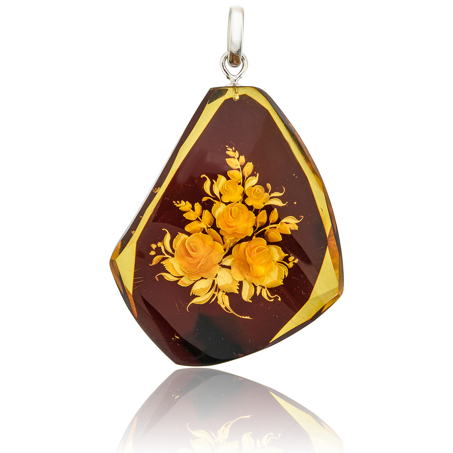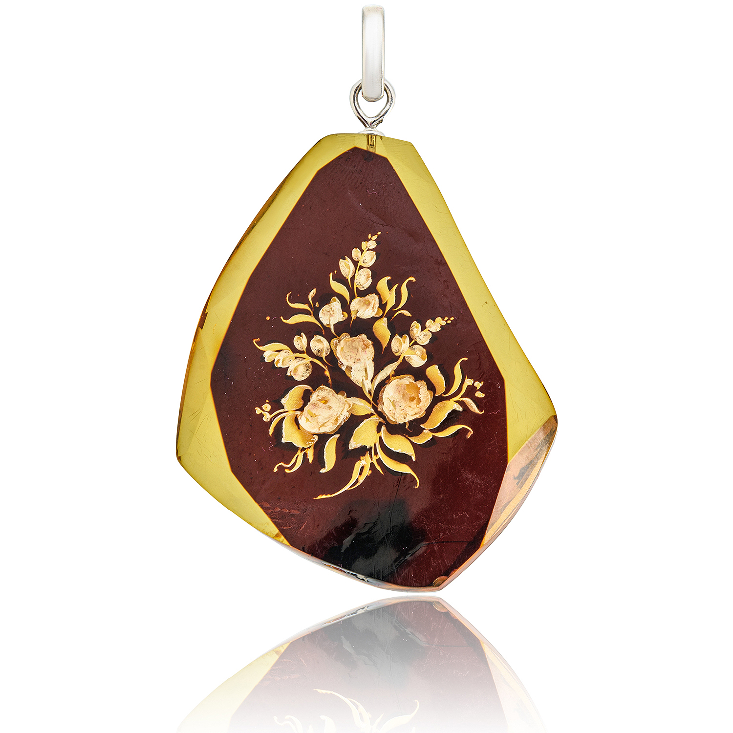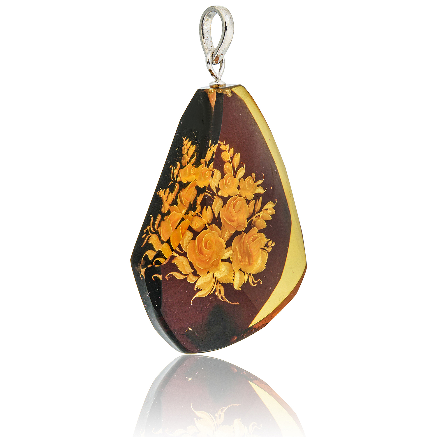 Кулон из натурального янтаря с гравировкой "Цветы"