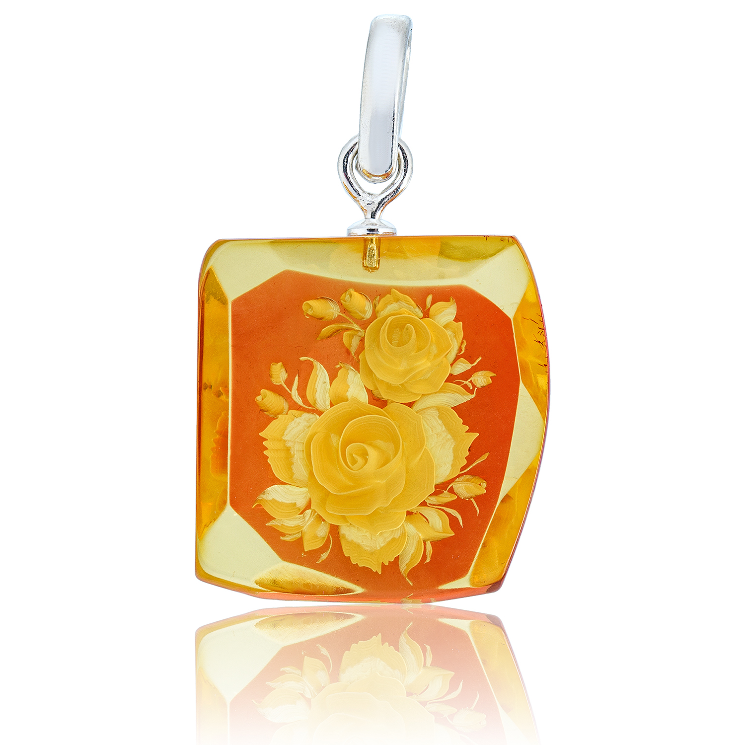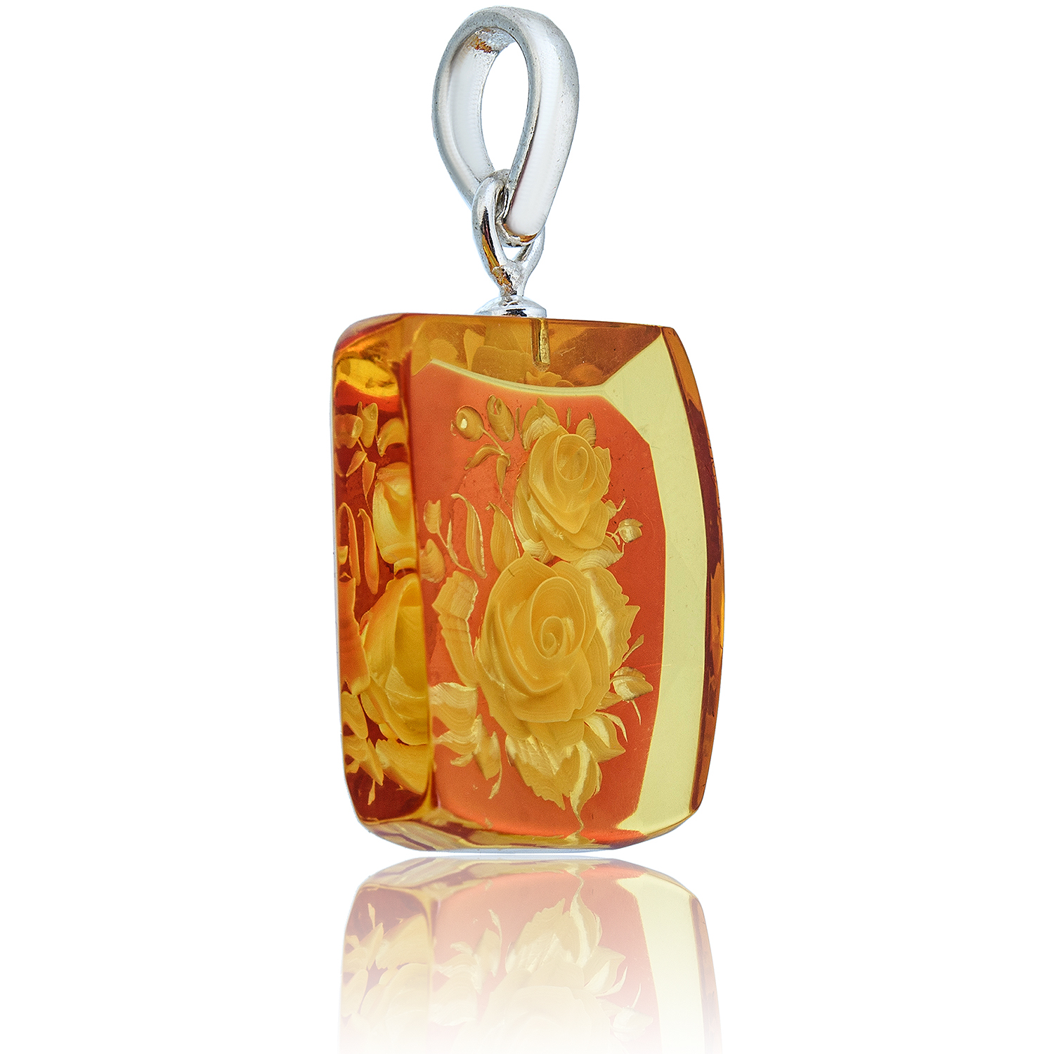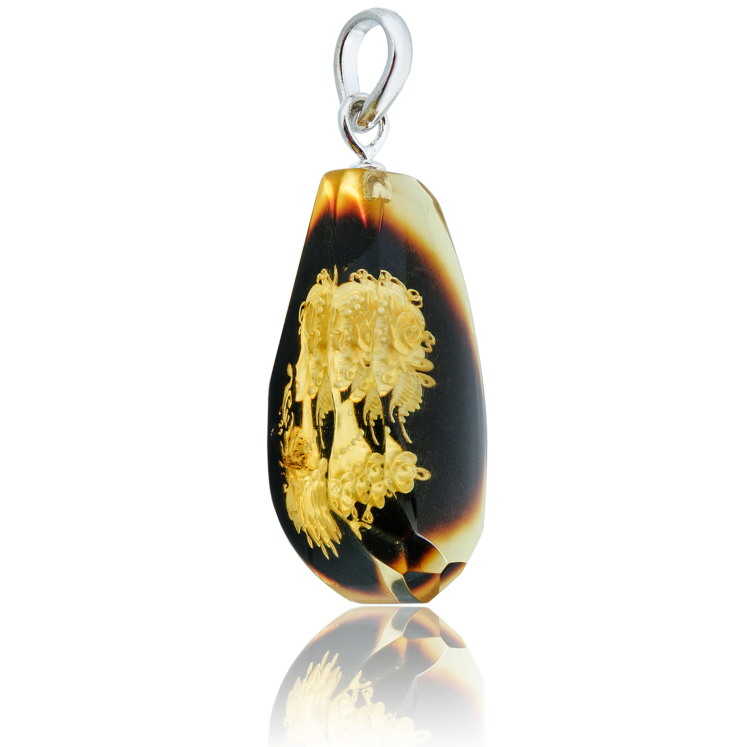 Кулон из натурального янтаря с гравировкой "Камея"