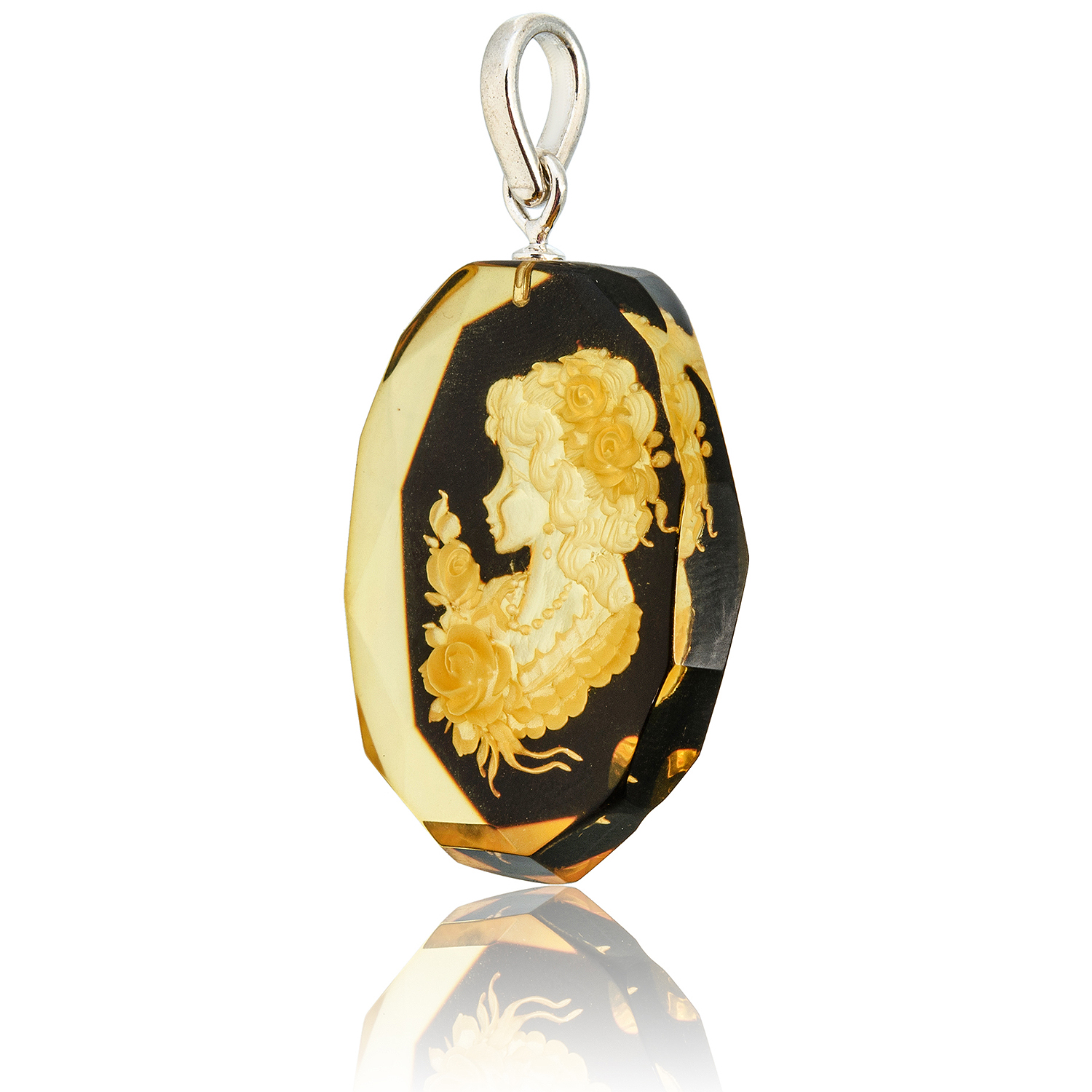Русские подарки и сувениры → Украшения → Кулоны и подвески → Кулон из натурального янтаря с гравировкой "Камея"