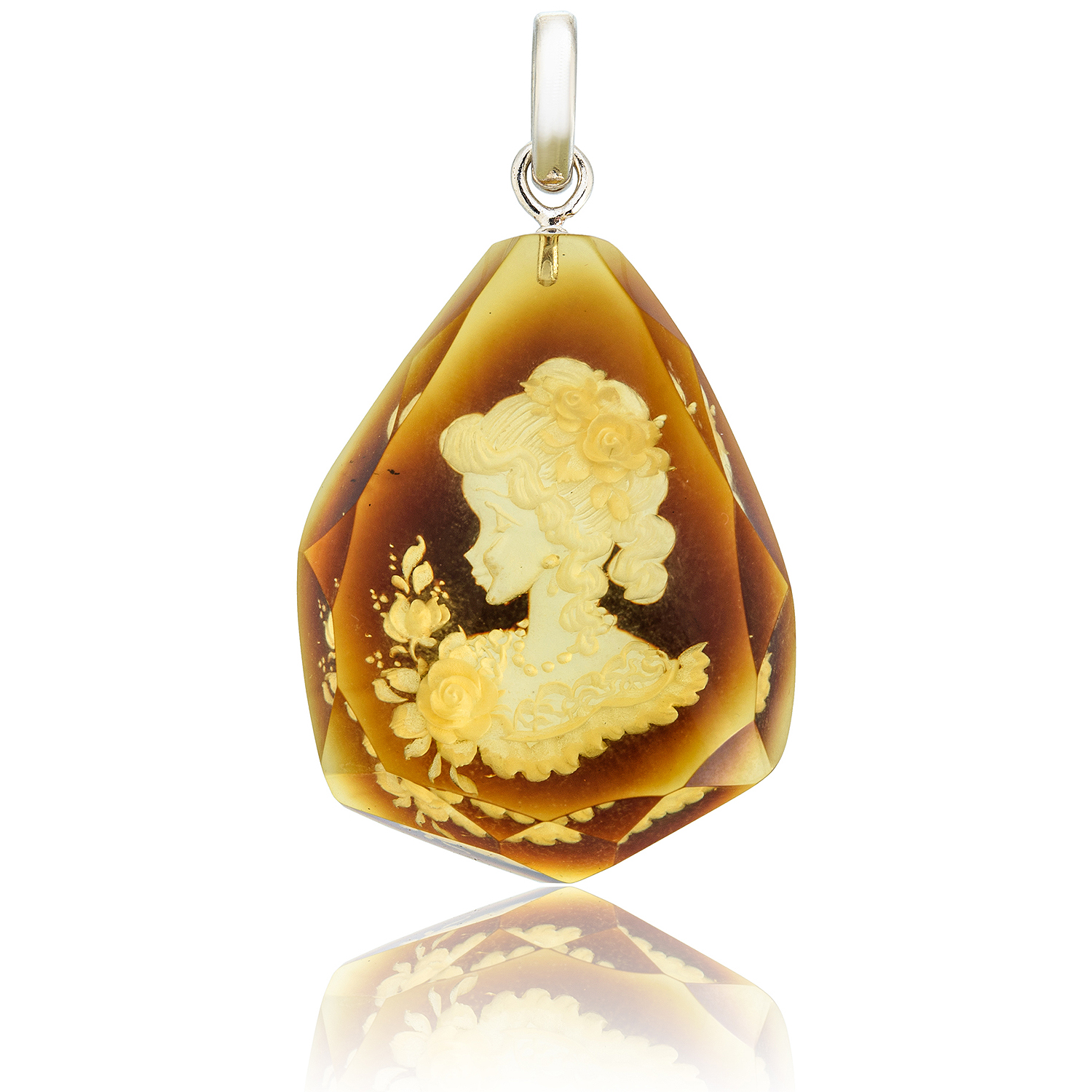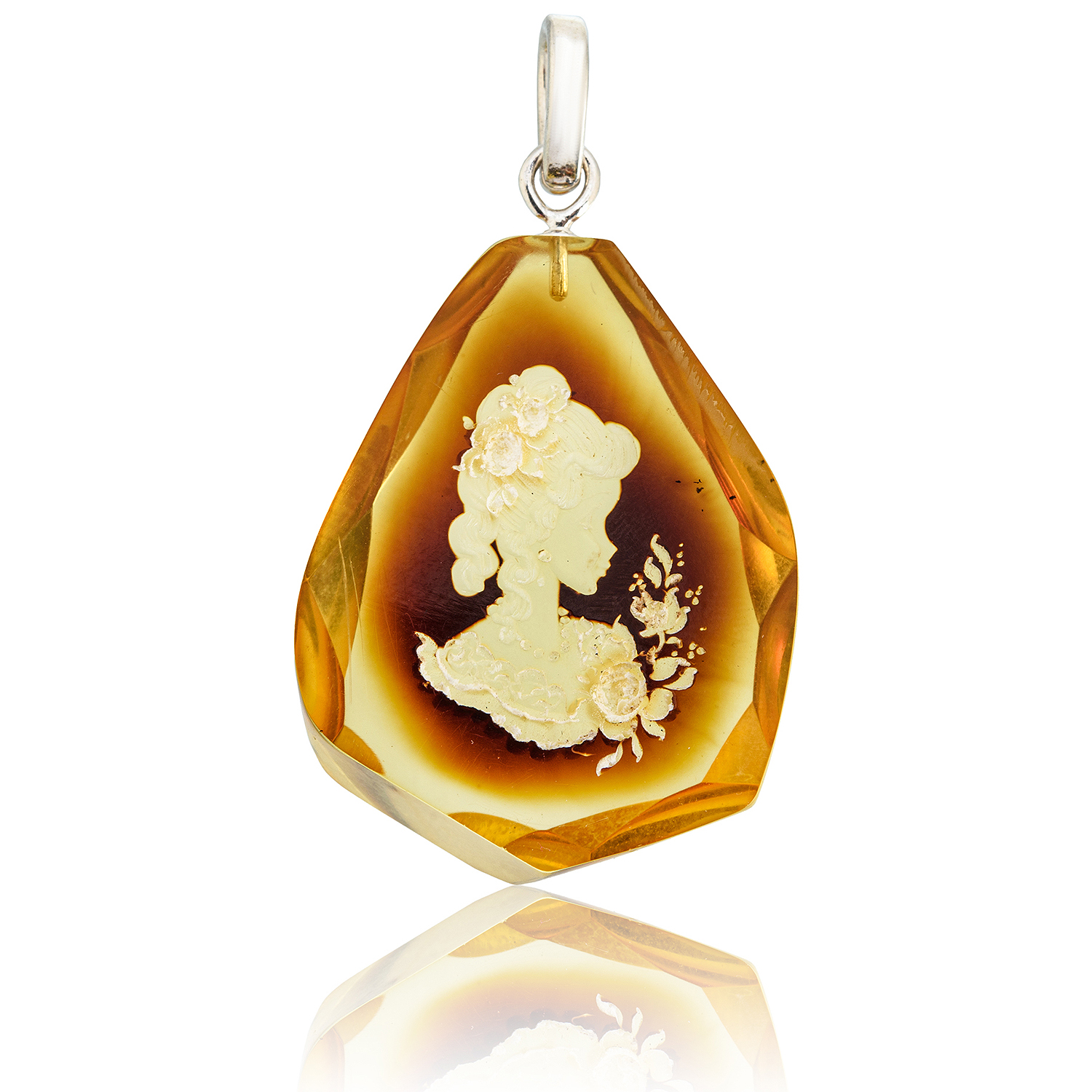 Русские подарки и сувениры → Украшения → Кулоны и подвески → Кулон из натурального янтаря с гравировкой "Камея"