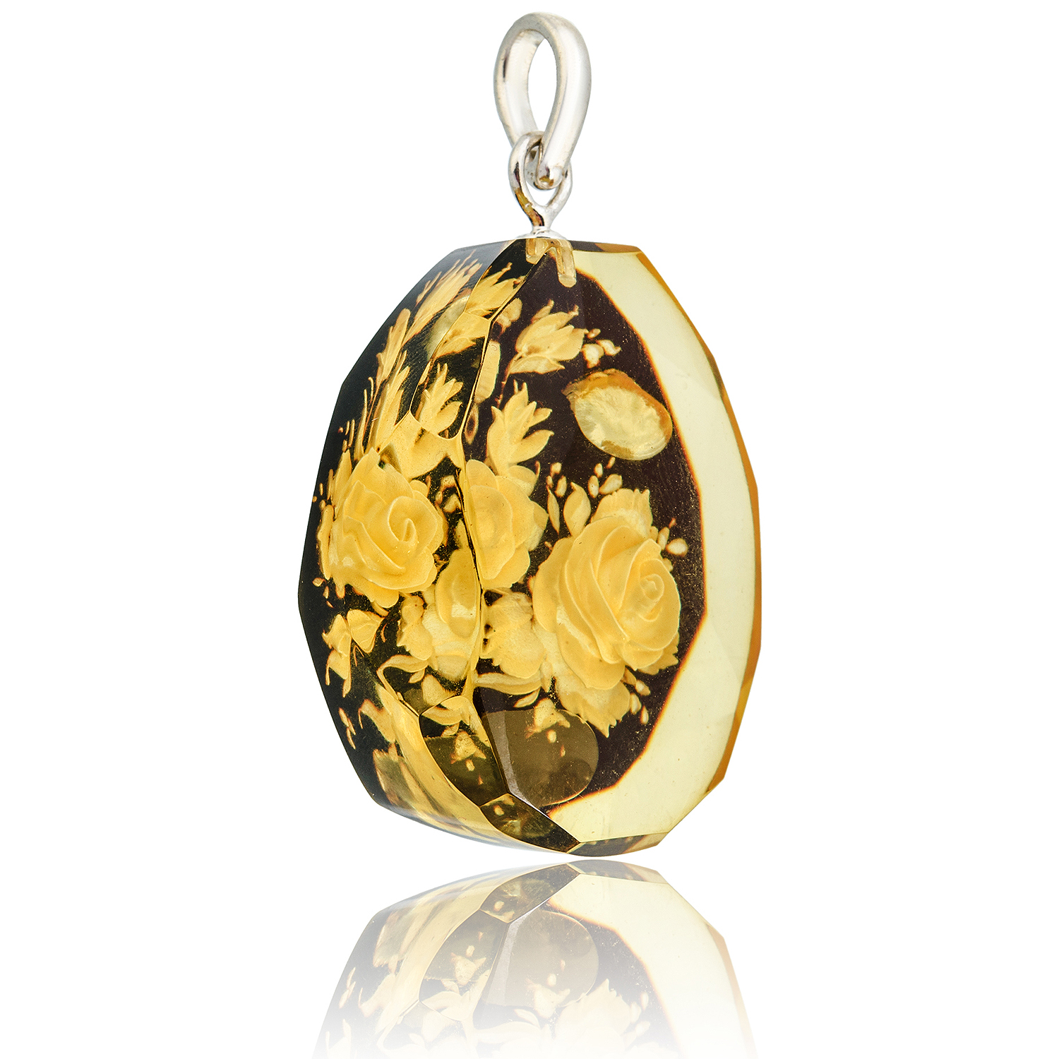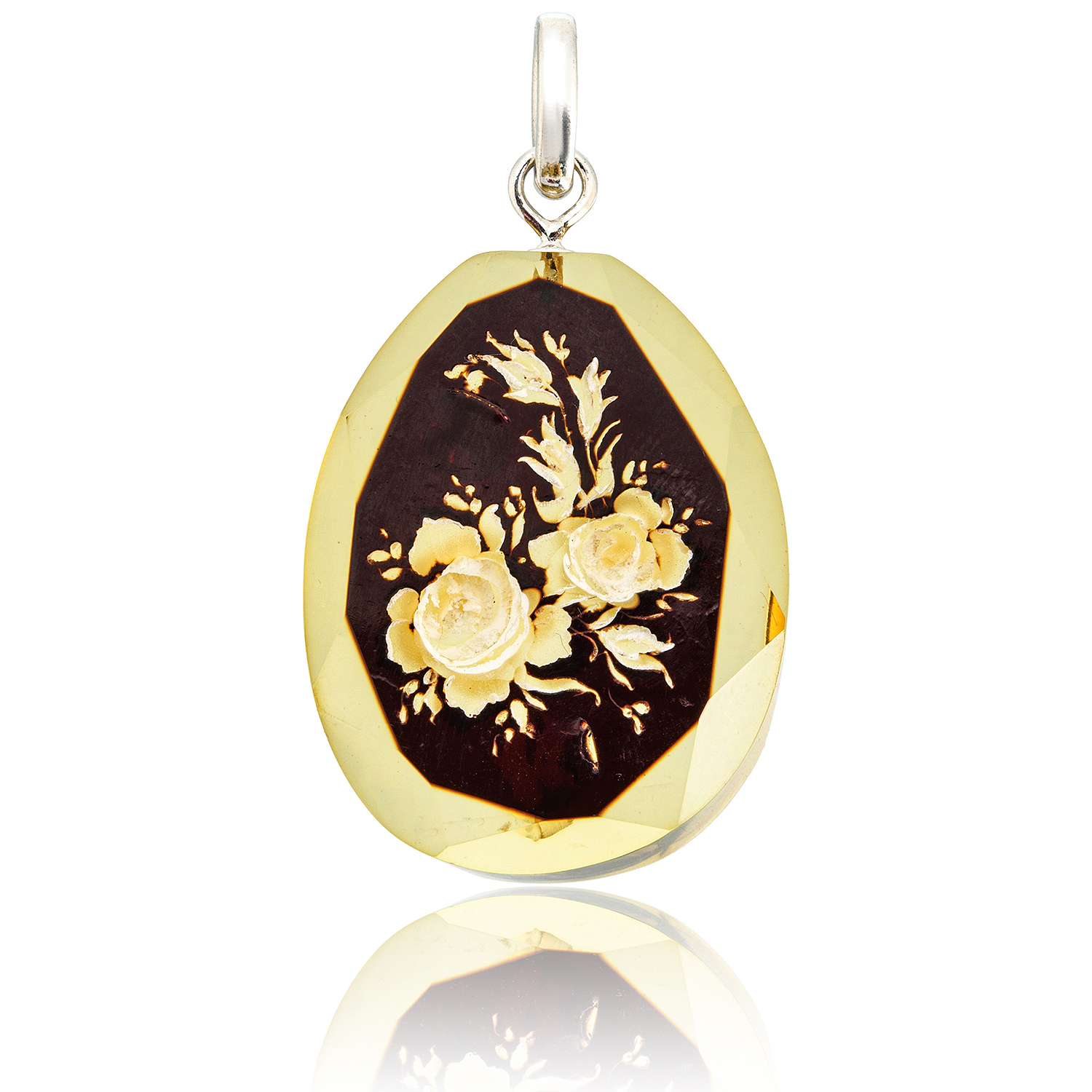 Русские подарки и сувениры → Украшения → Кулоны и подвески → Кулон из натурального янтаря с гравировкой "Цветы"