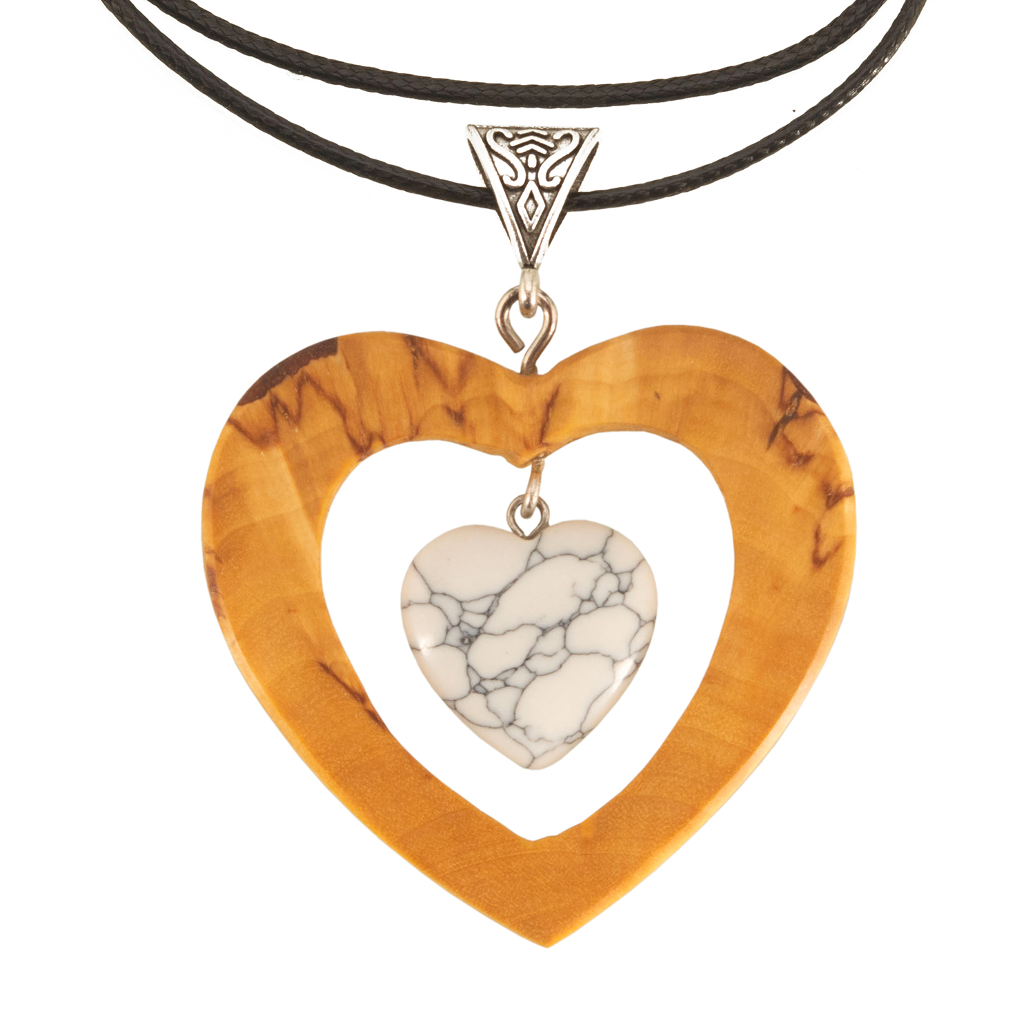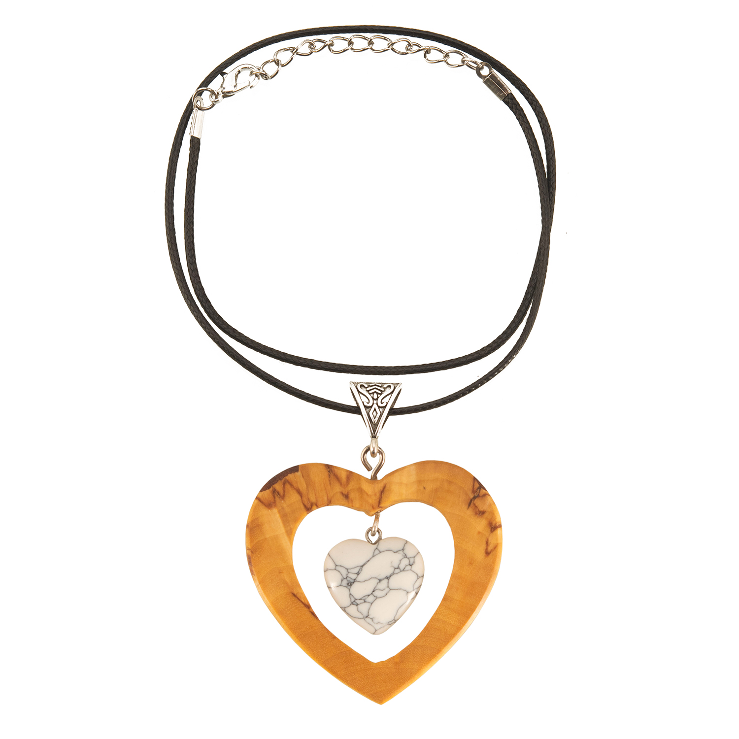 Кулон из карельской березы и кахолонга "Два сердца"