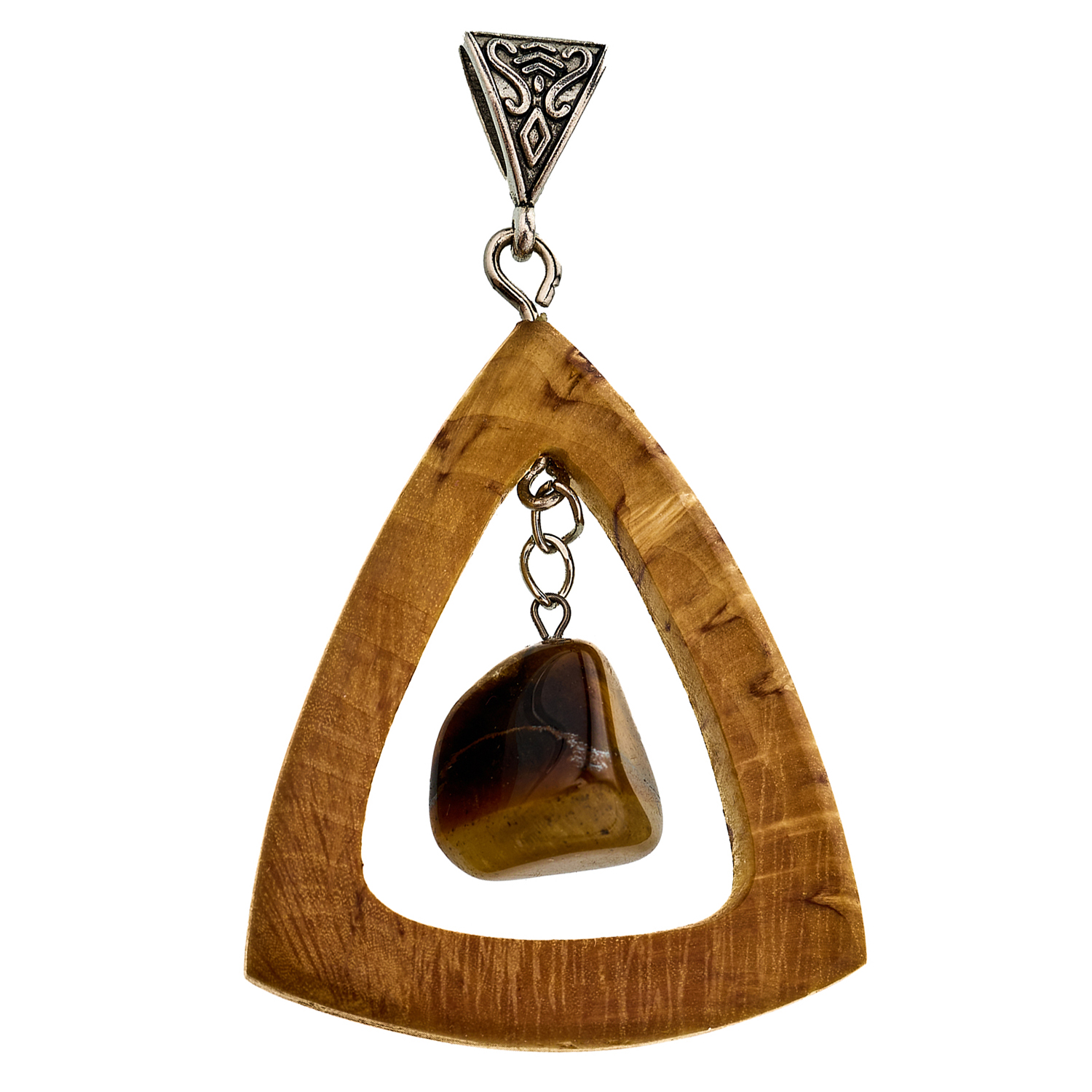 Русские подарки и сувениры → Украшения → Кулоны и подвески → Кулон-оберег из карельской березы с тигровым глазом