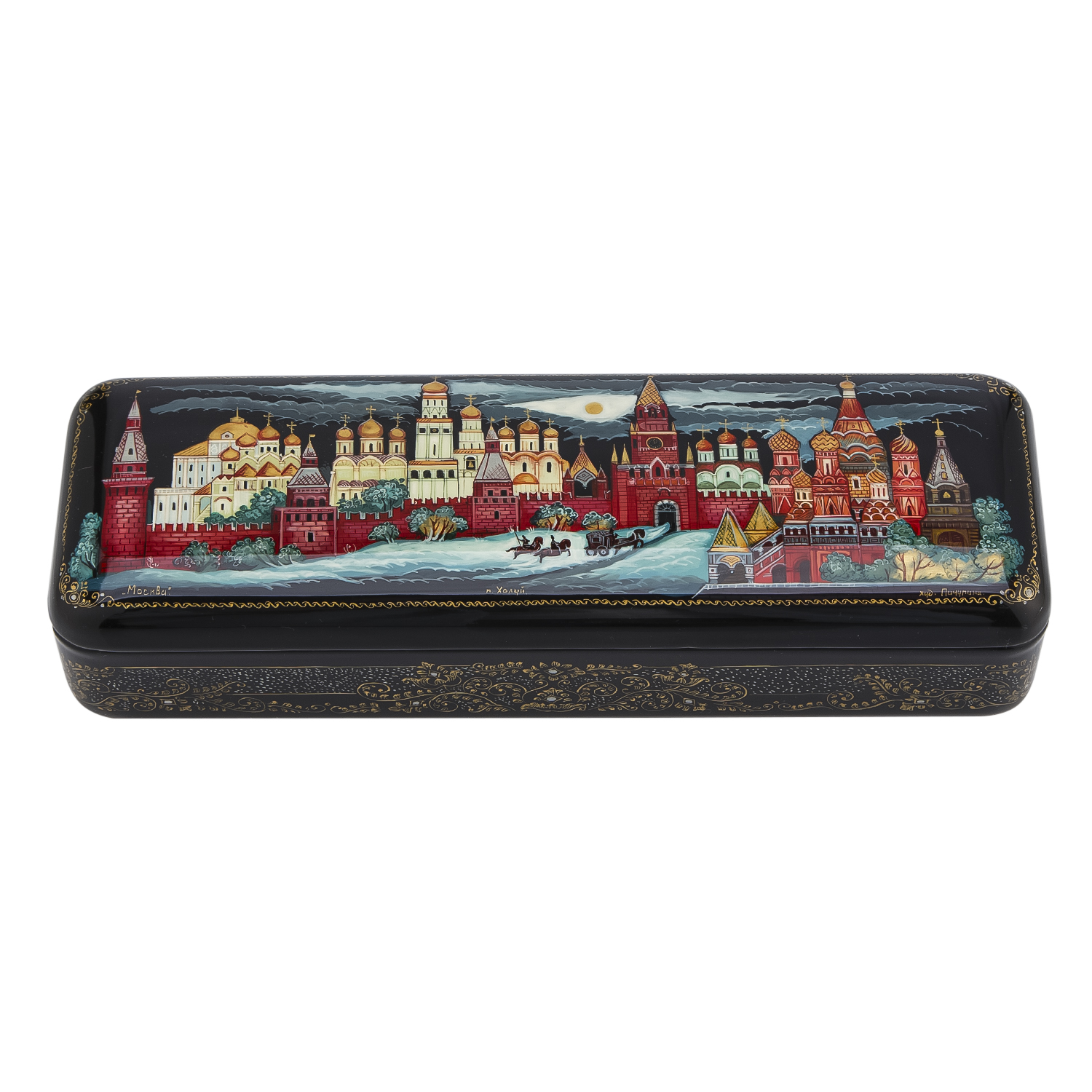 Русские подарки и сувениры → Шкатулки → Лаковая миниатюра → Шкатулка с художественной росписью "Москва"