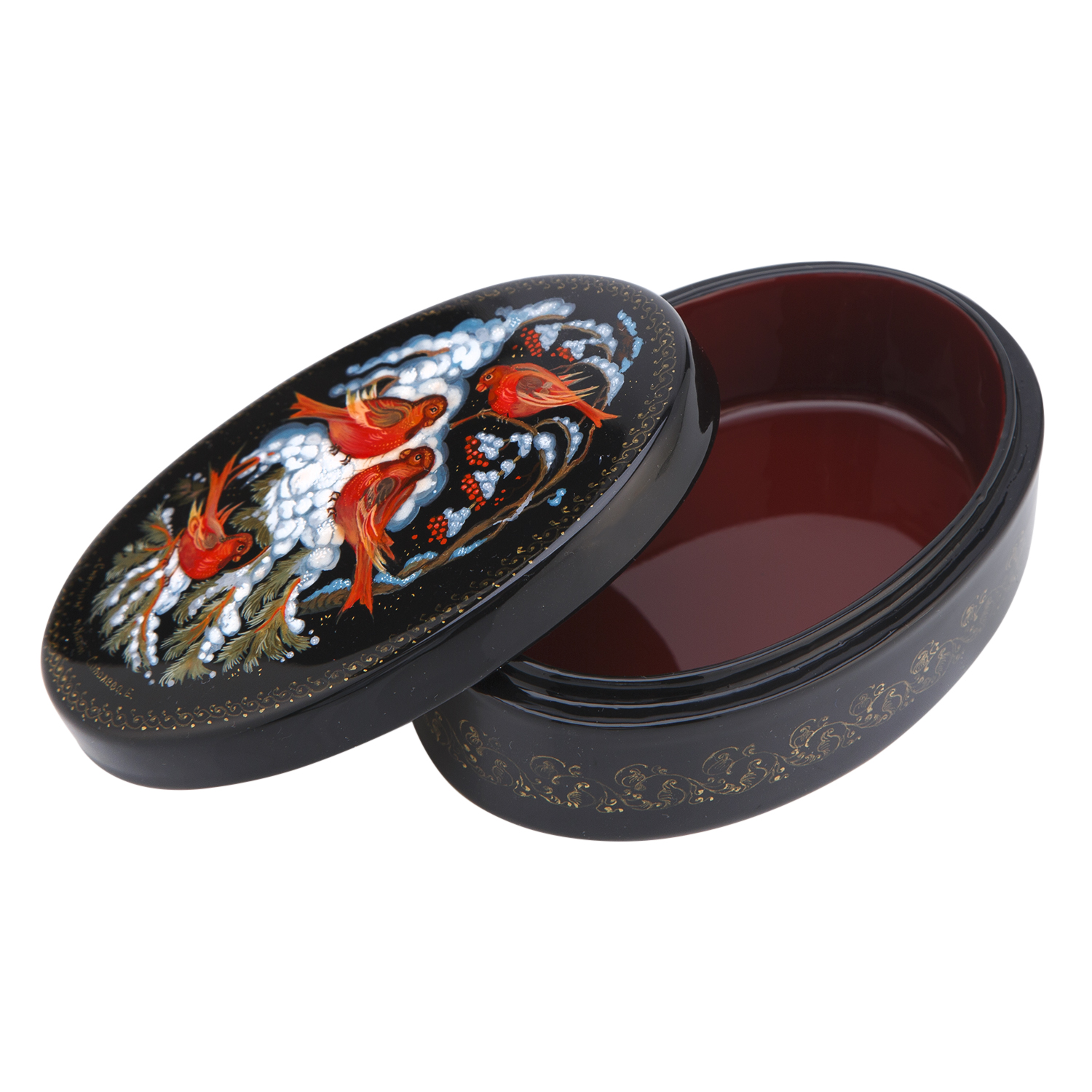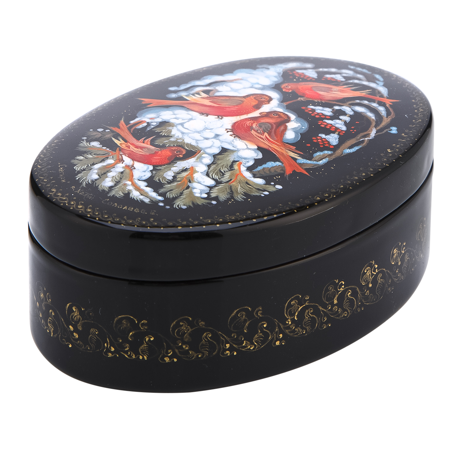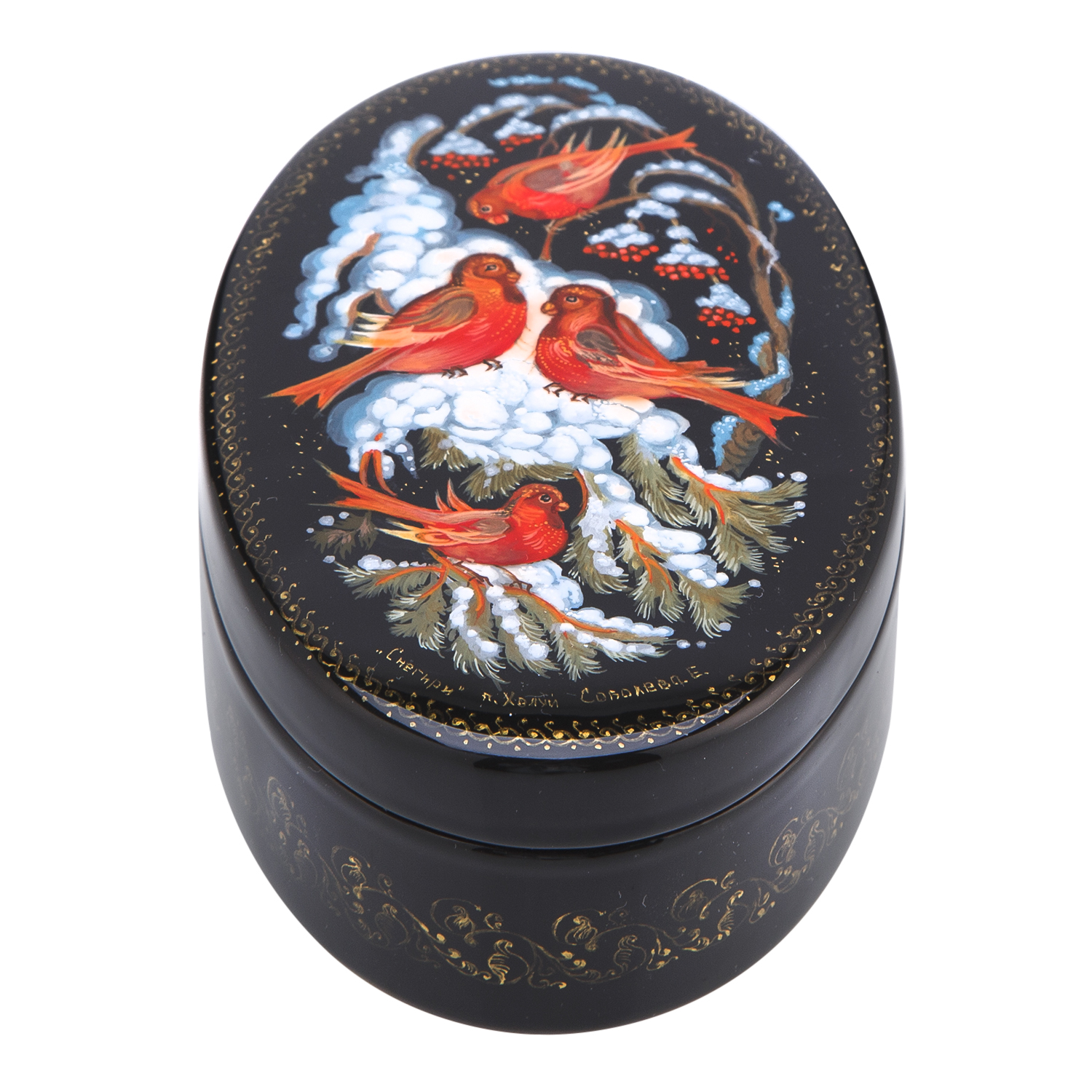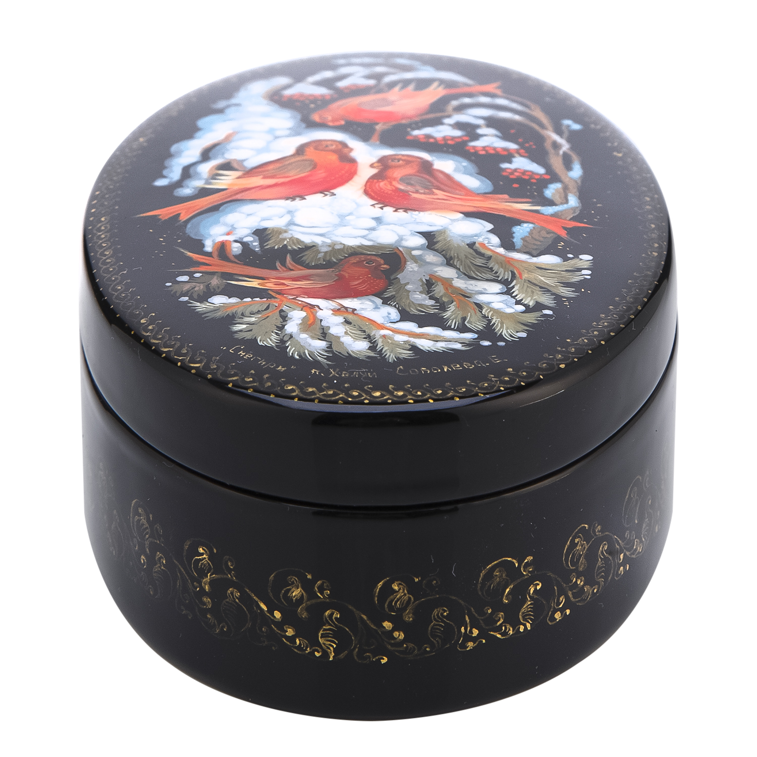 Шкатулка с художественной росписью "Снегири"