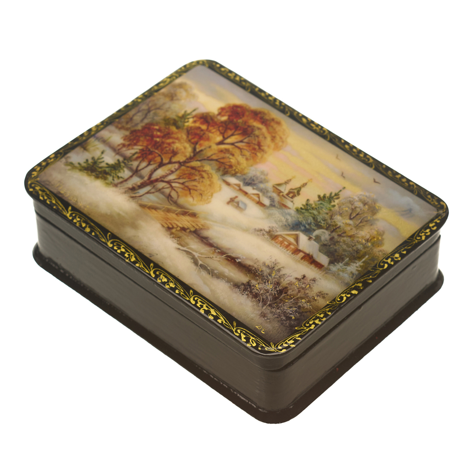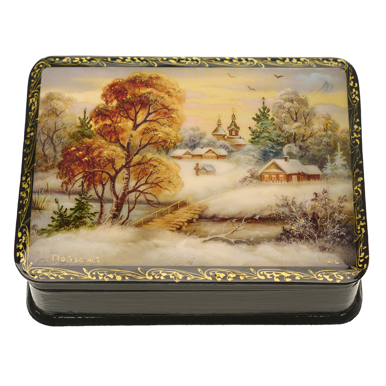 Шкатулка "Зима в деревне".Материал: папье-маше.
