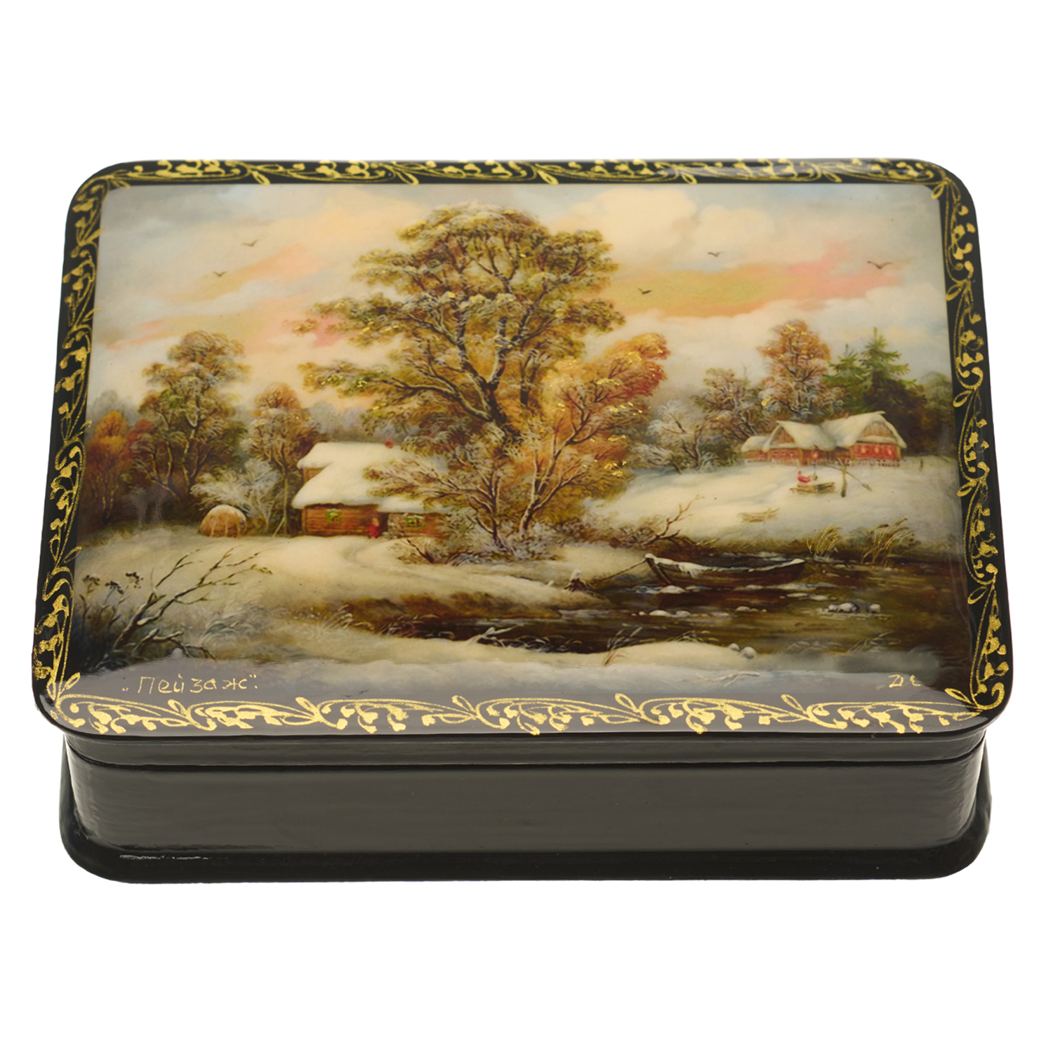 Шкатулка "Зима в деревне".Материал: папье-маше.