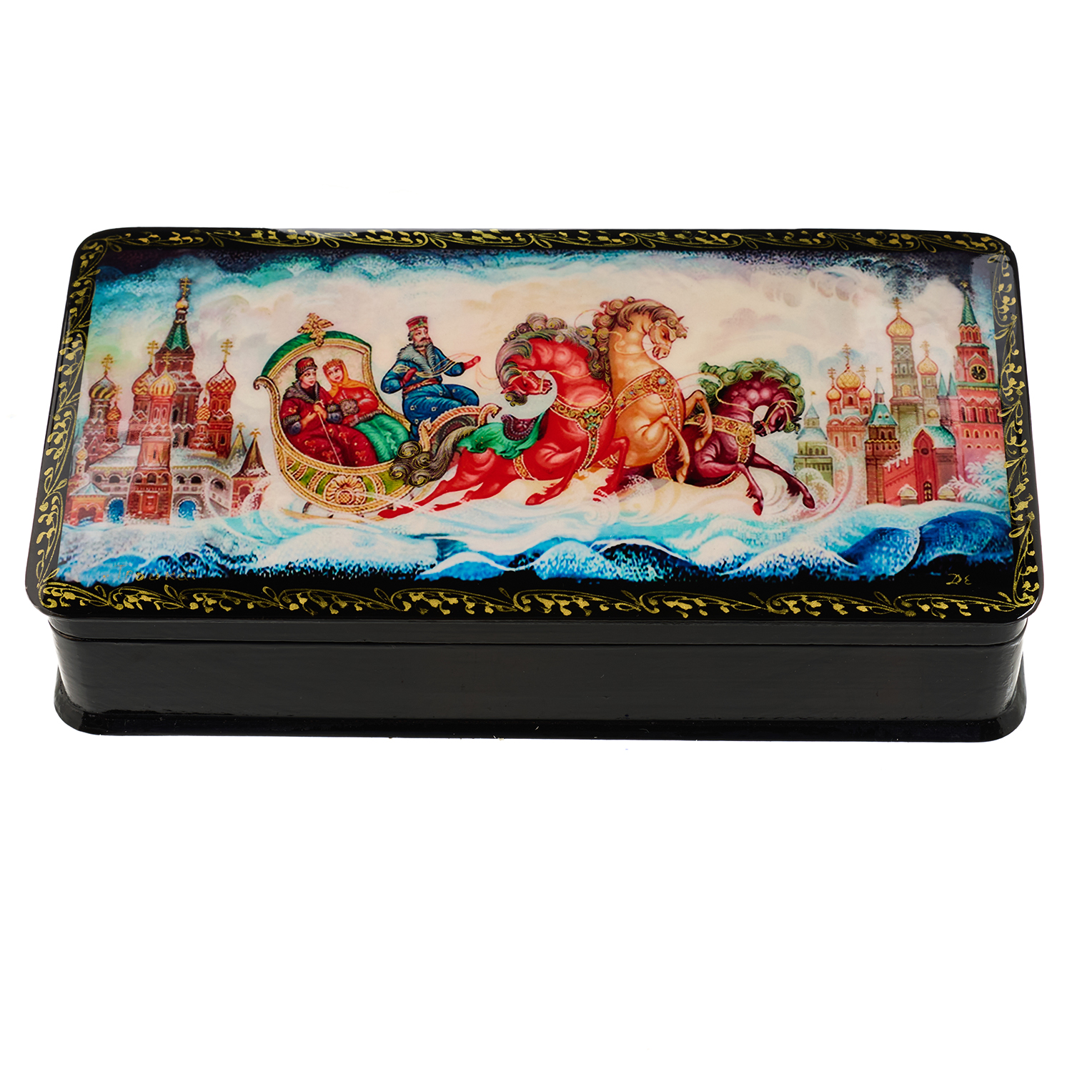 Русские подарки и сувениры → Шкатулки → Лаковая миниатюра → Шкатулка с художественной росписью "Зимняя тройка"