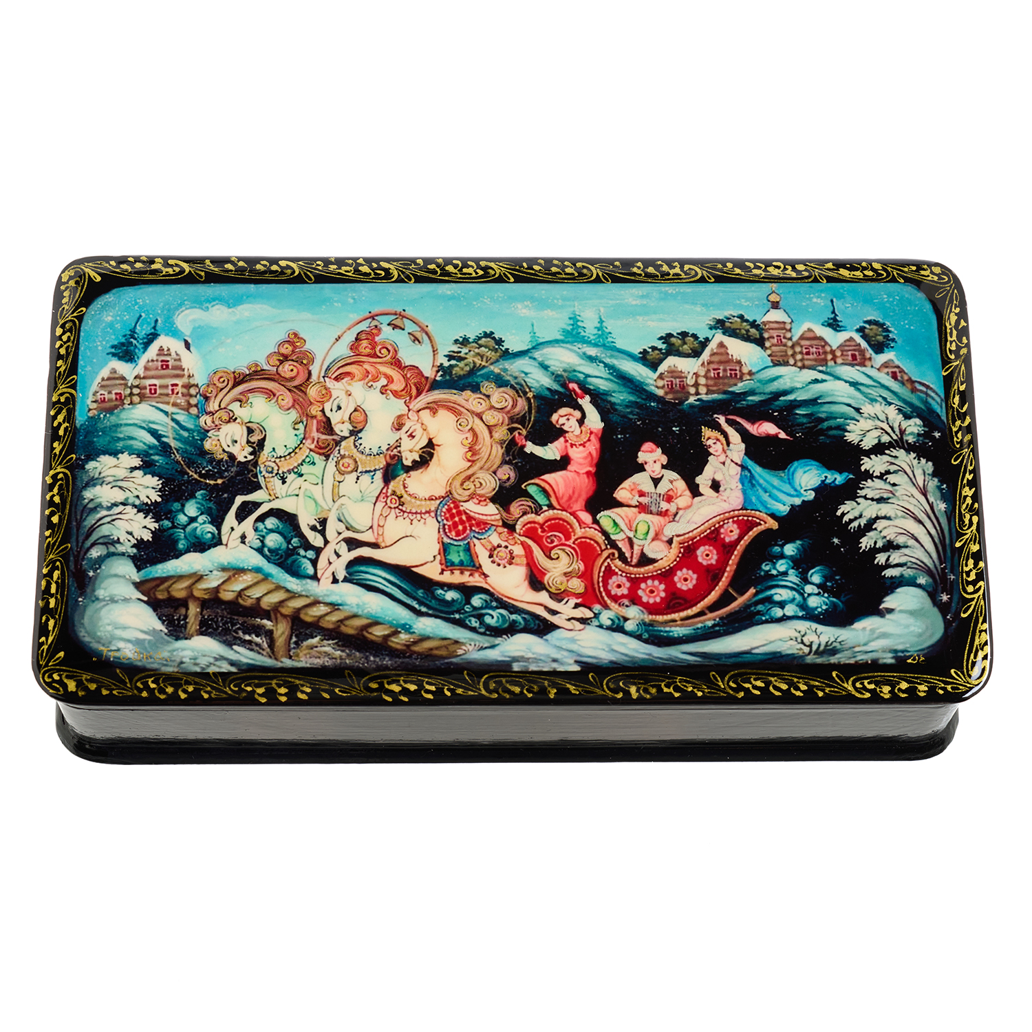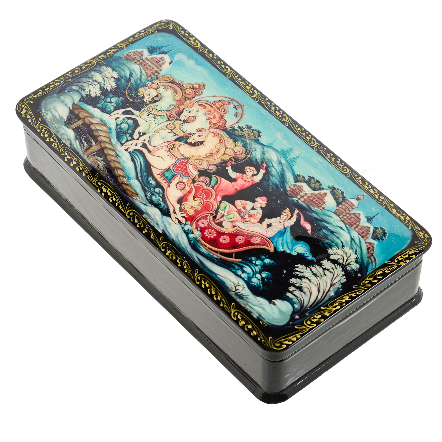 Русские подарки и сувениры → Шкатулки → Лаковая миниатюра → Шкатулка с художественной росписью "Зимняя тройка"