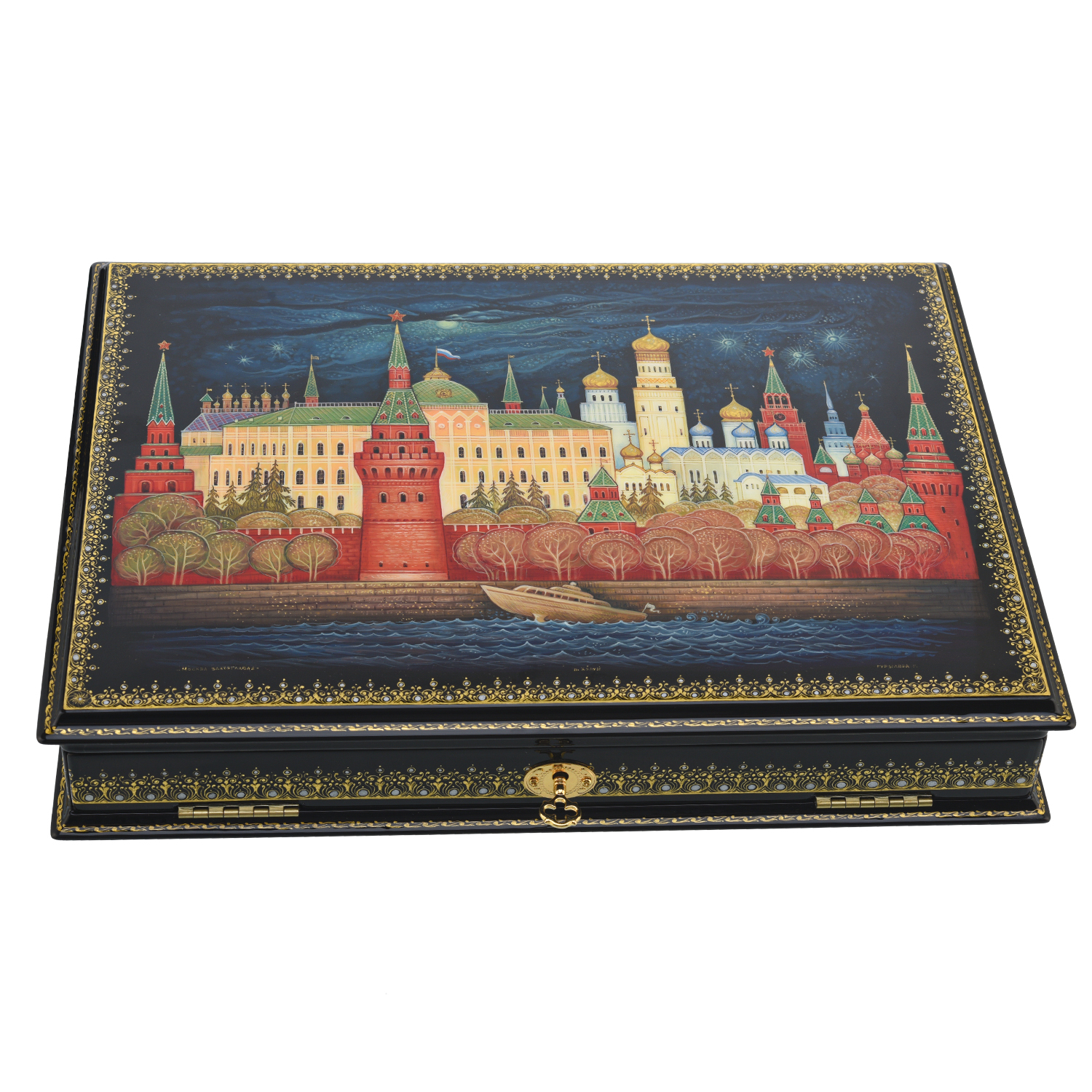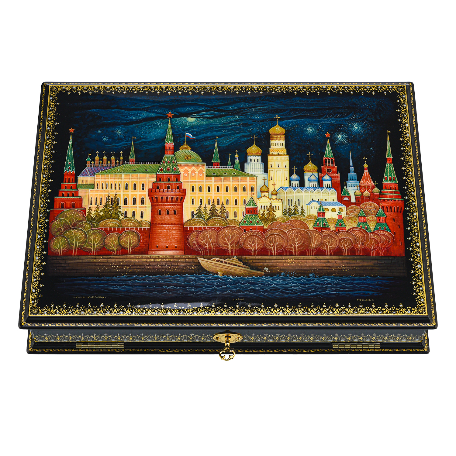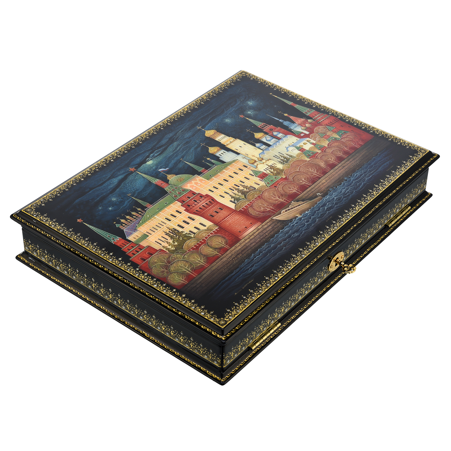 Русские подарки и сувениры → Шкатулки → Лаковая миниатюра → Шкатулка для документов с художественной росписью "Москва"