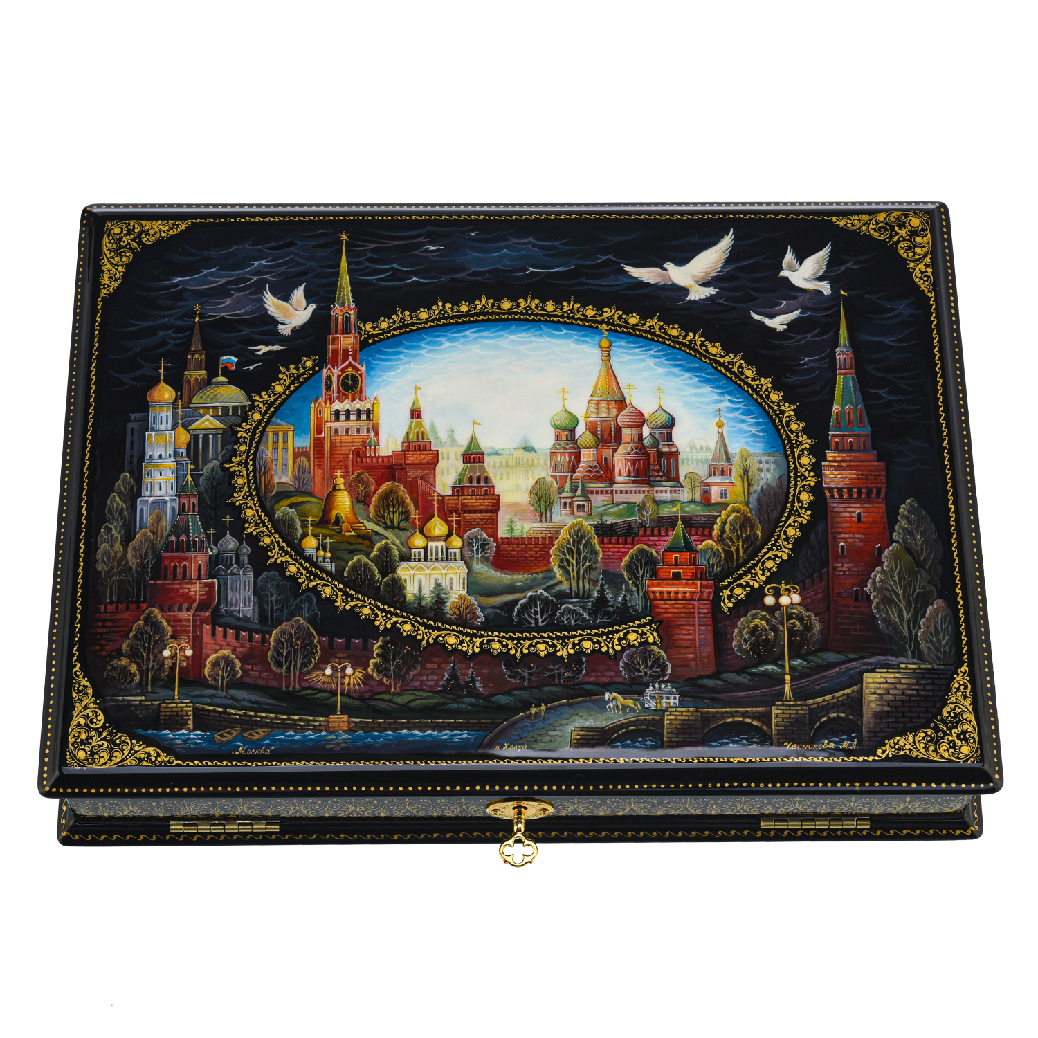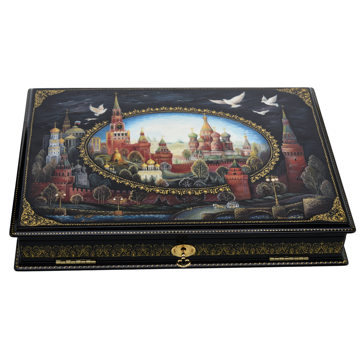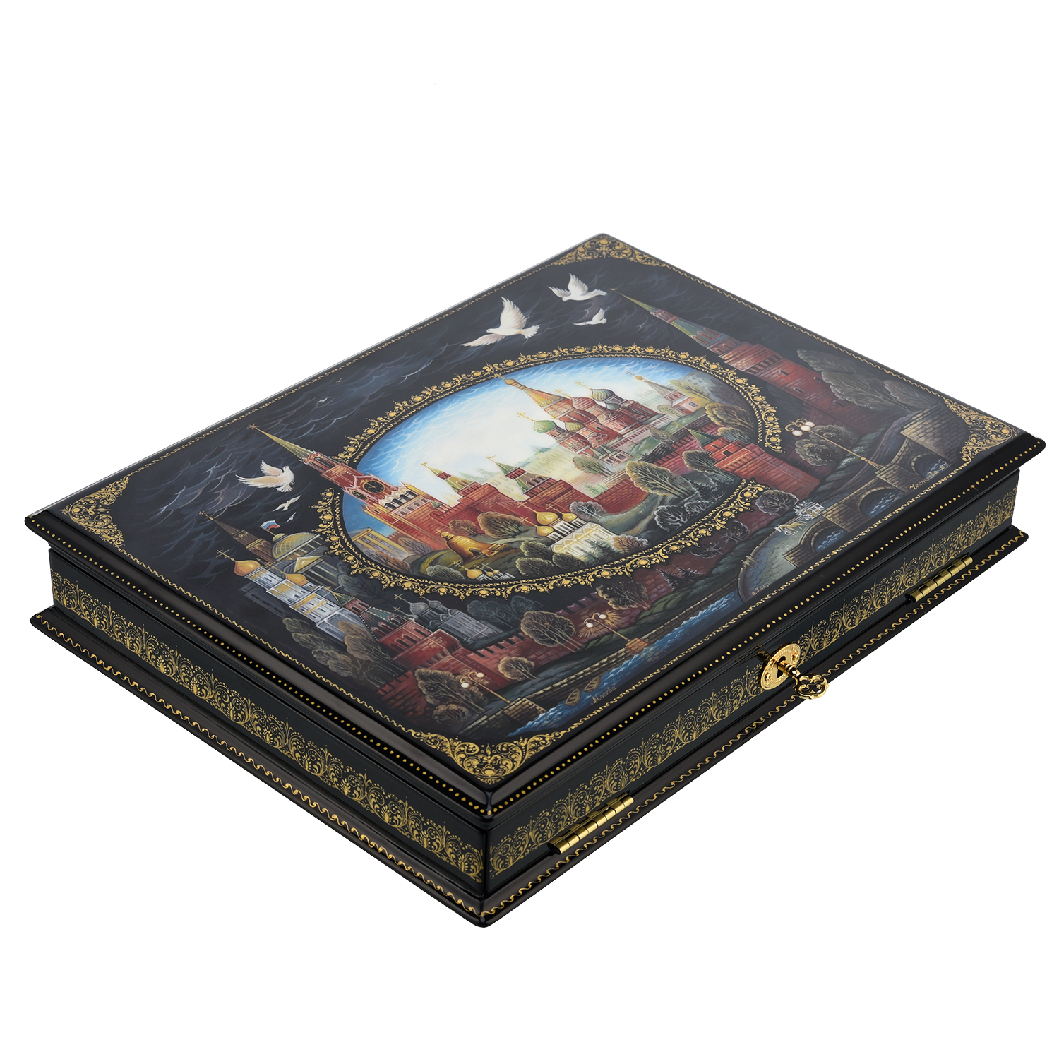 Русские подарки и сувениры → Шкатулки → Лаковая миниатюра → Шкатулка для документов с художественной росписью "Москва"