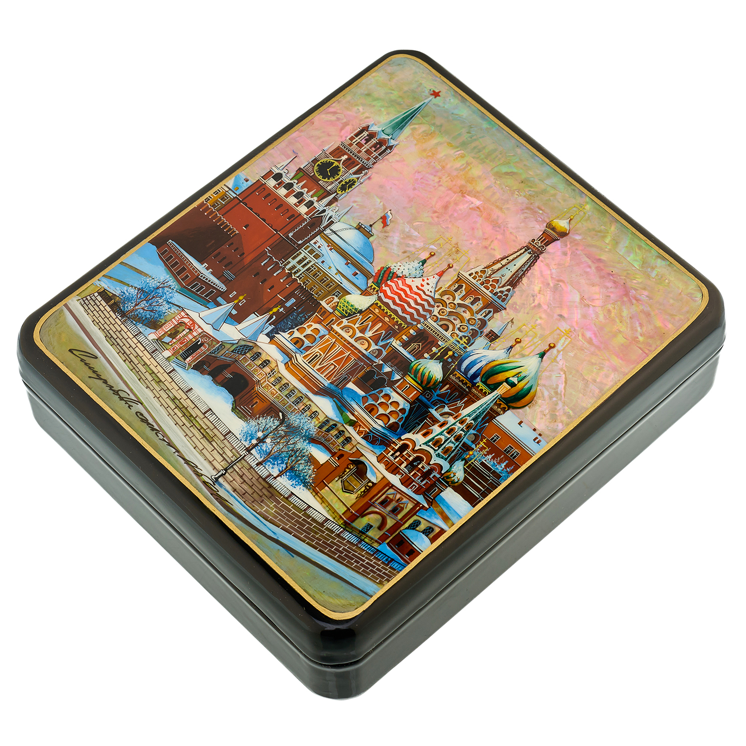 Русские подарки и сувениры → Шкатулки → Лаковая миниатюра → Шкатулка с художественной росписью "Зимняя Москва"