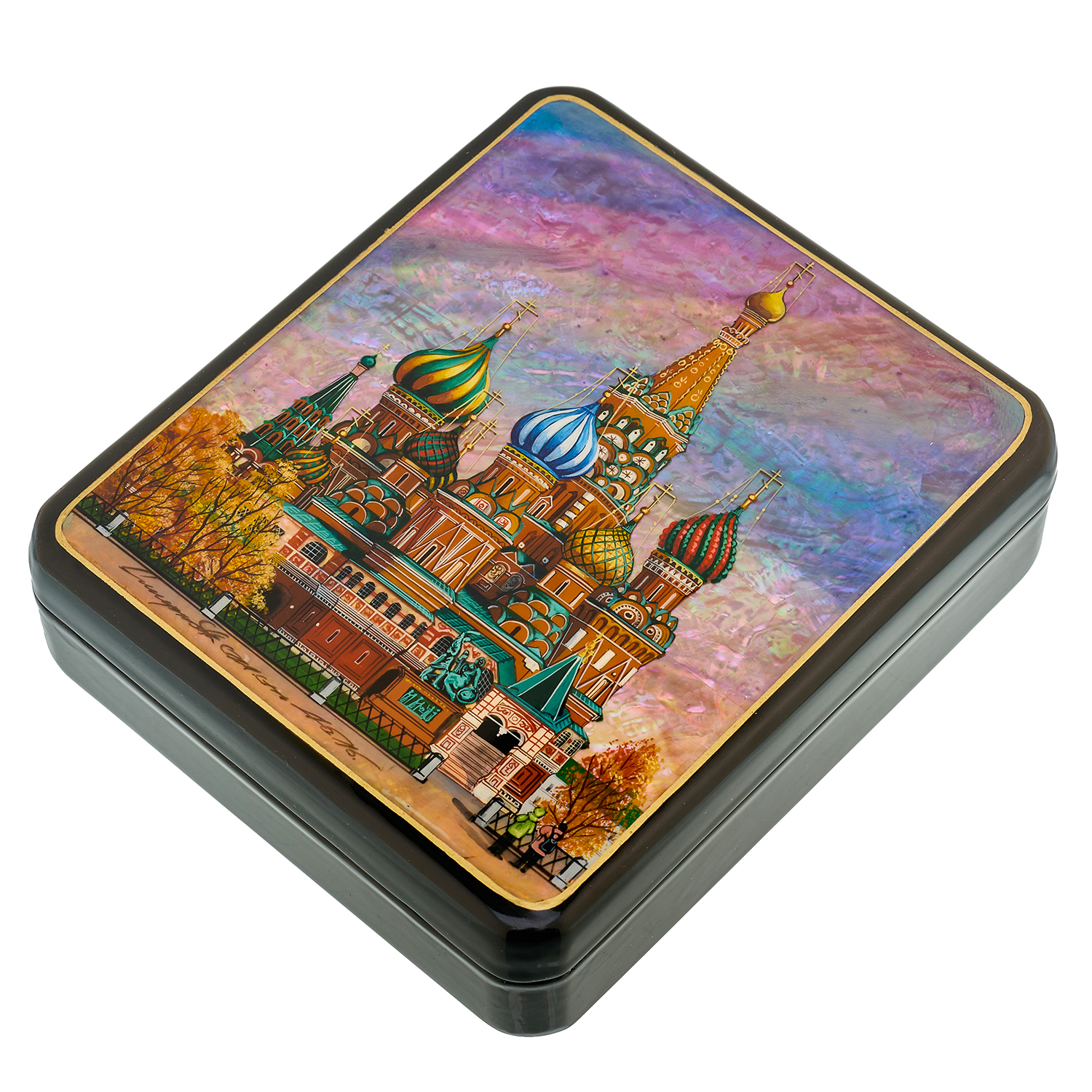 Русские подарки и сувениры → Шкатулки → Лаковая миниатюра → Шкатулка с художественной росписью "Москва. Осень"
