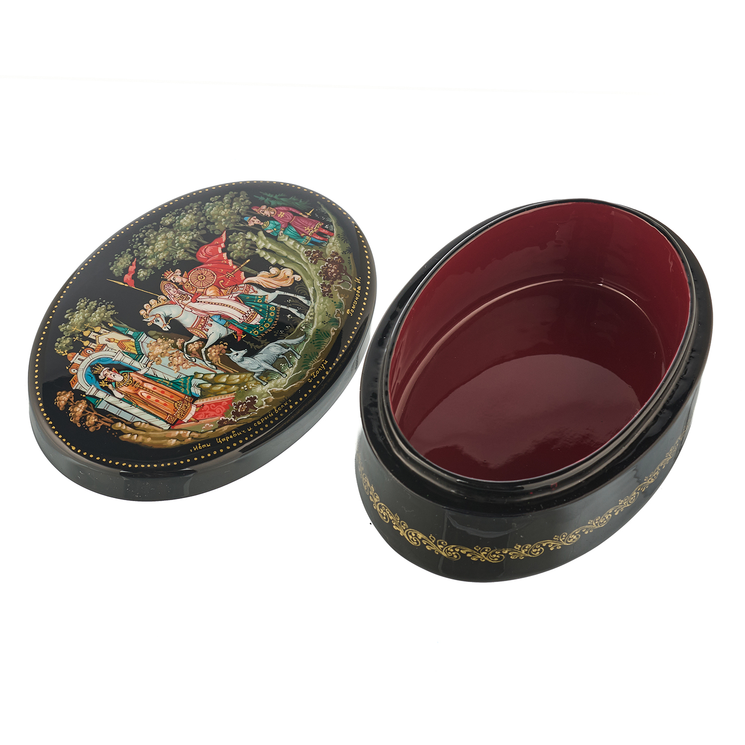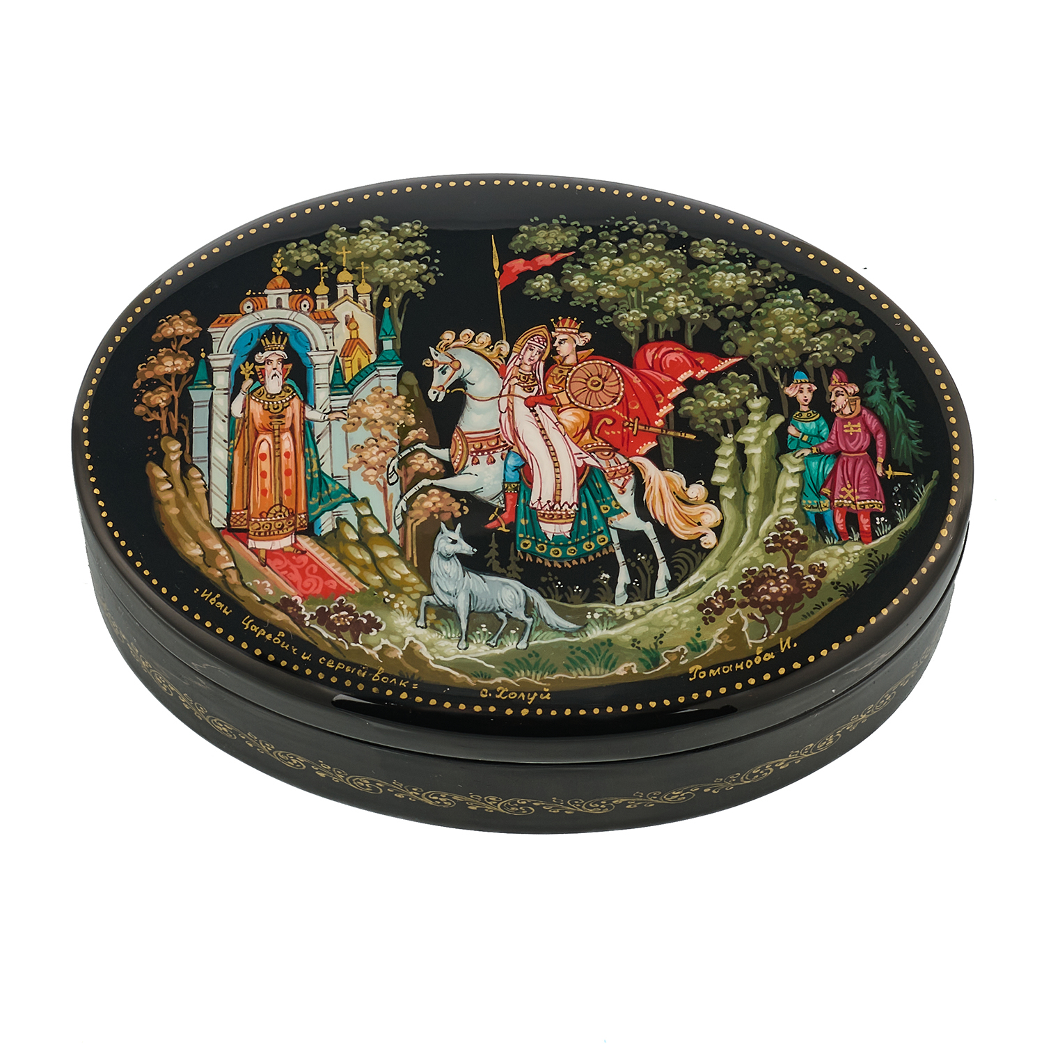 Русские подарки и сувениры → Шкатулки → Лаковая миниатюра → Шкатулка с художественной росписью "Иван-царевич и серый волк"