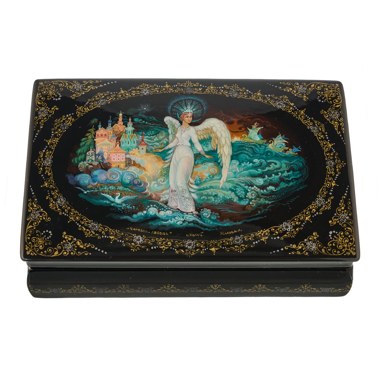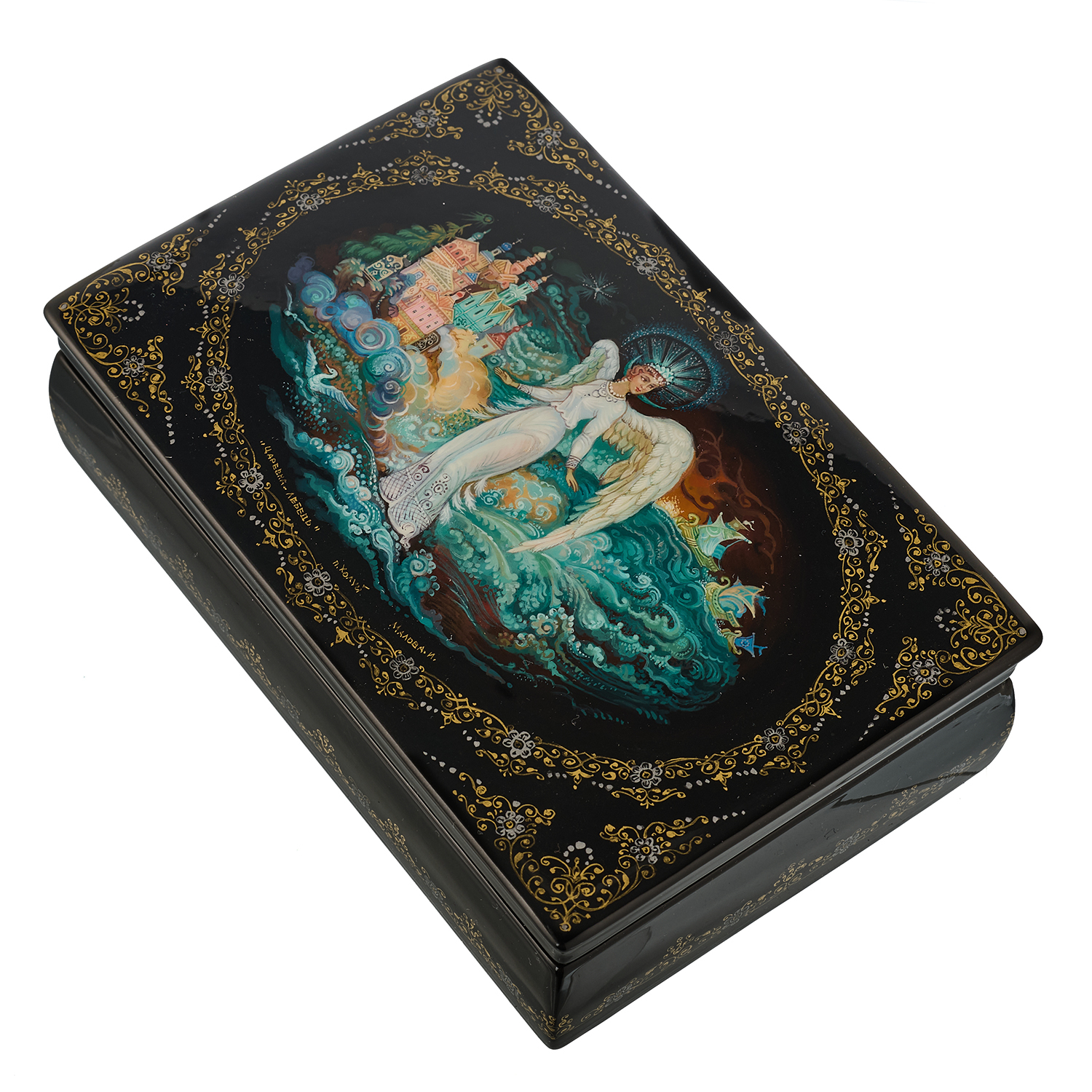 Русские подарки и сувениры → Шкатулки → Лаковая миниатюра → Шкатулка с художественной росписью "Царевна Лебедь"