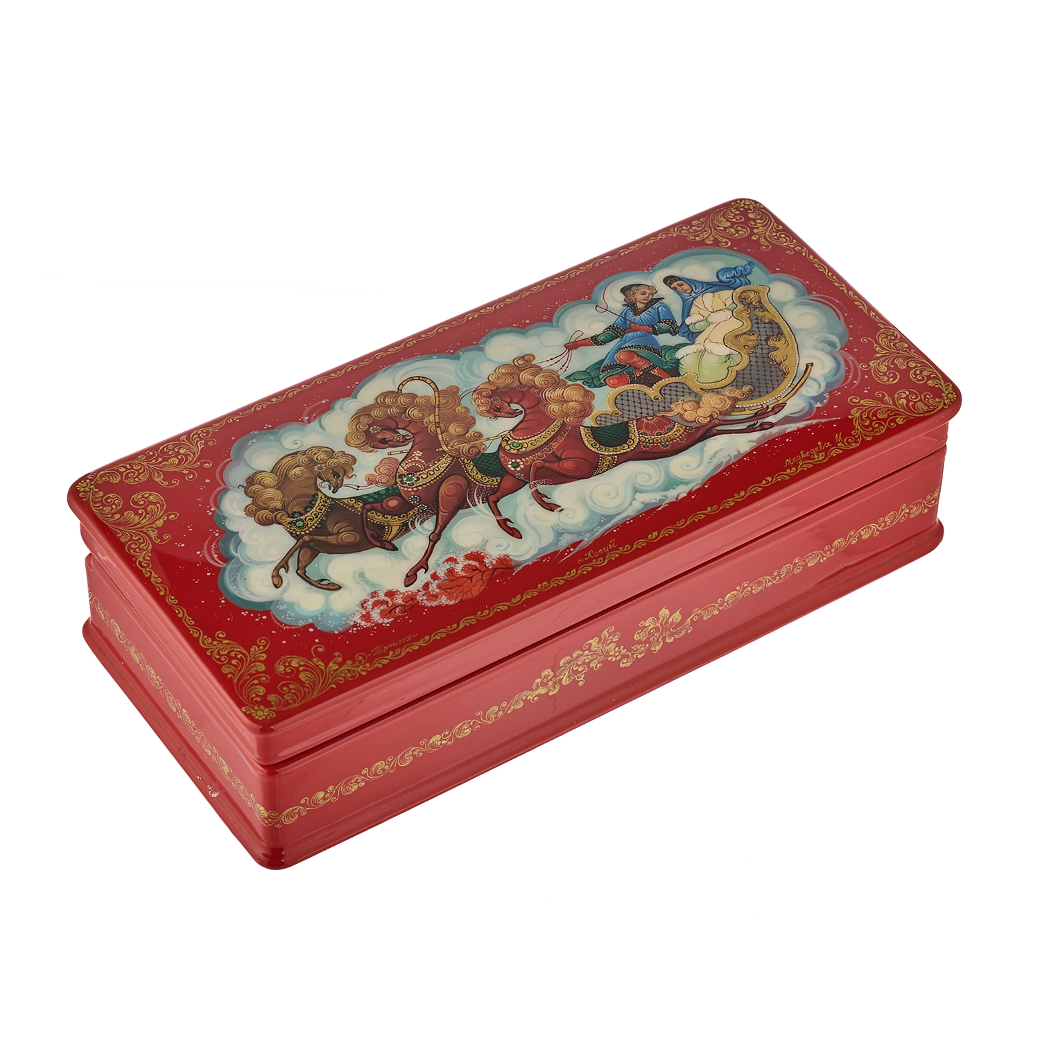 Русские подарки и сувениры → Шкатулки → Лаковая миниатюра → Шкатулка с художественной росписью "Тройка"