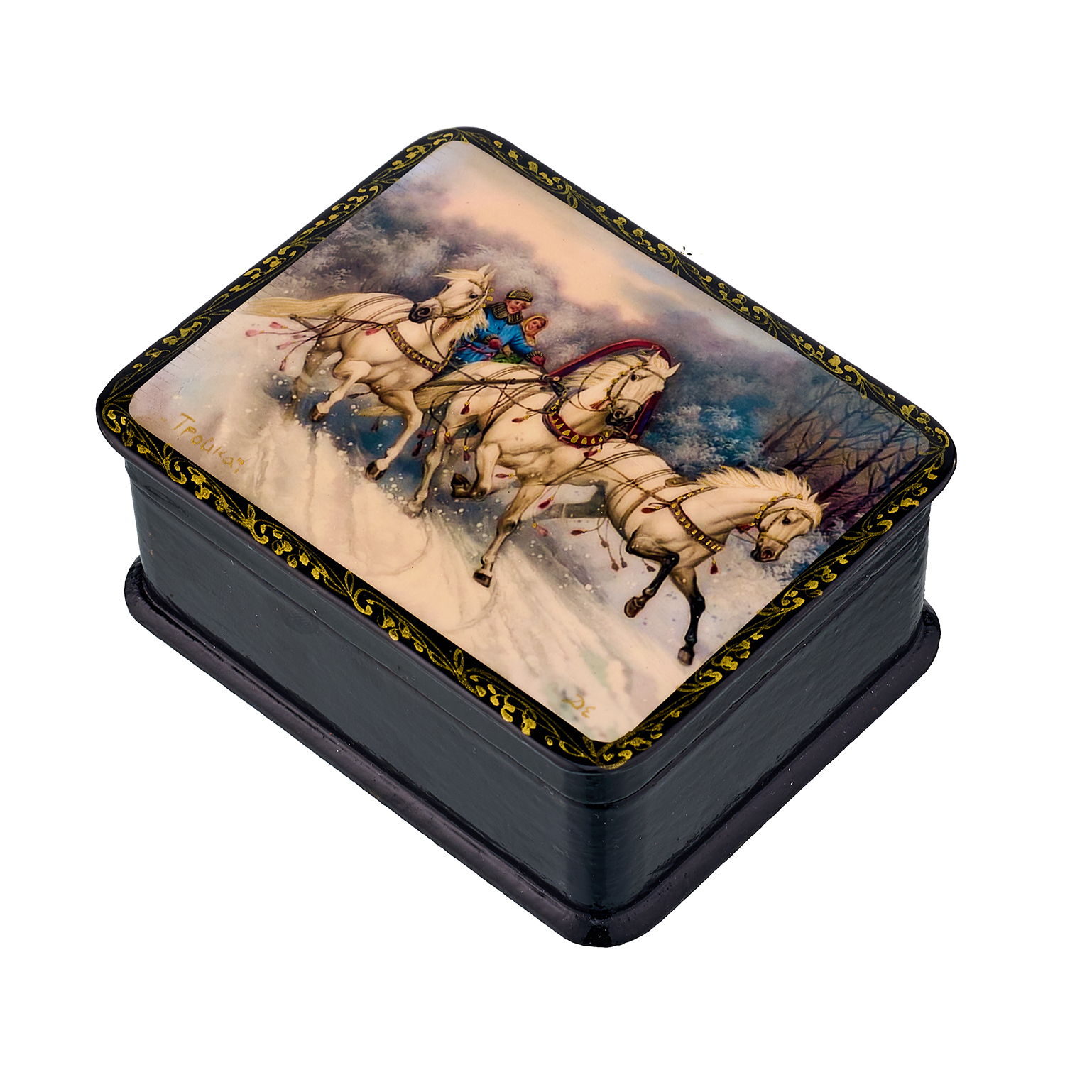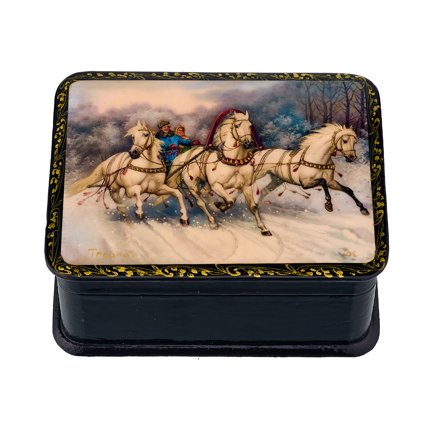 Шкатулка из папье-маше с принтом "Русская тройка"