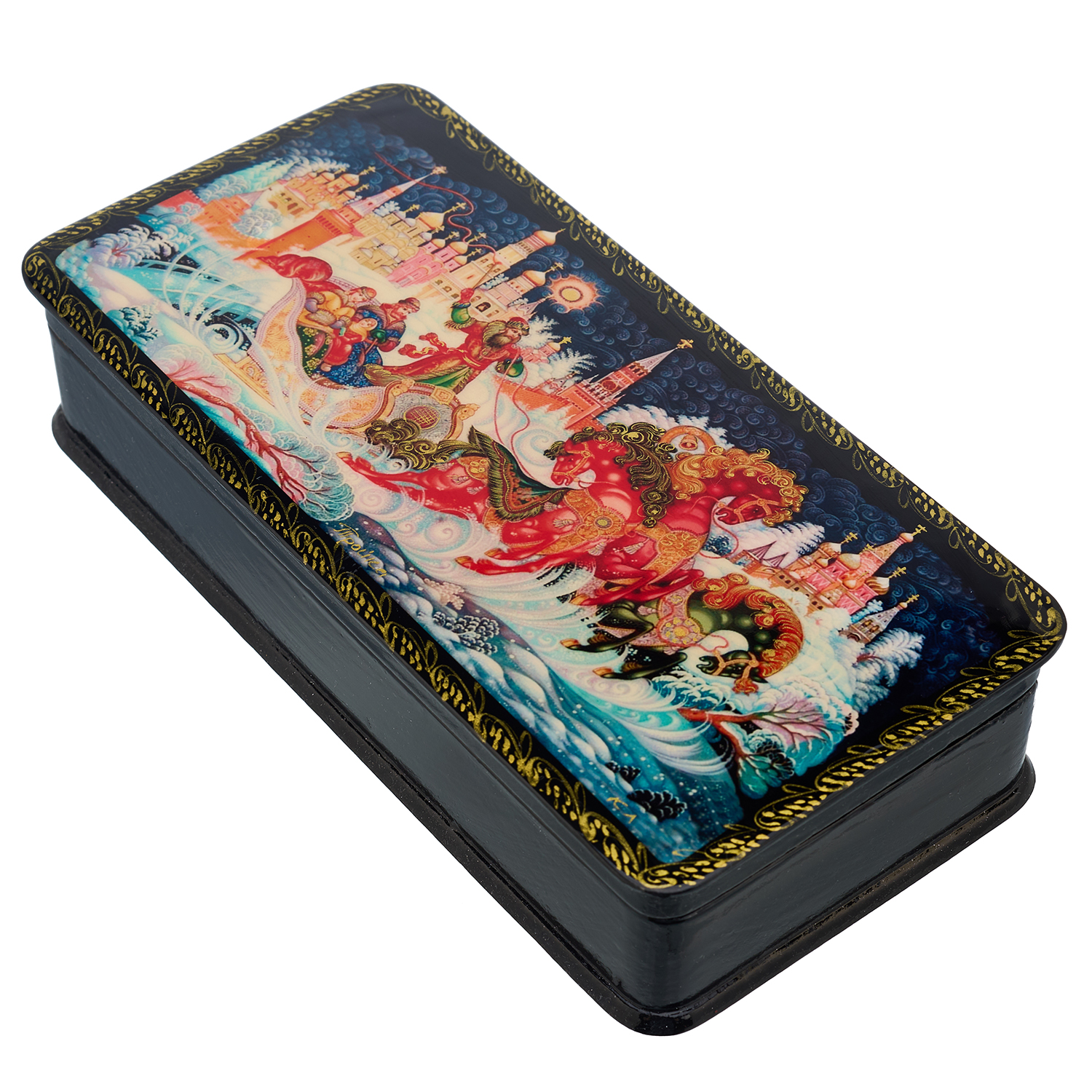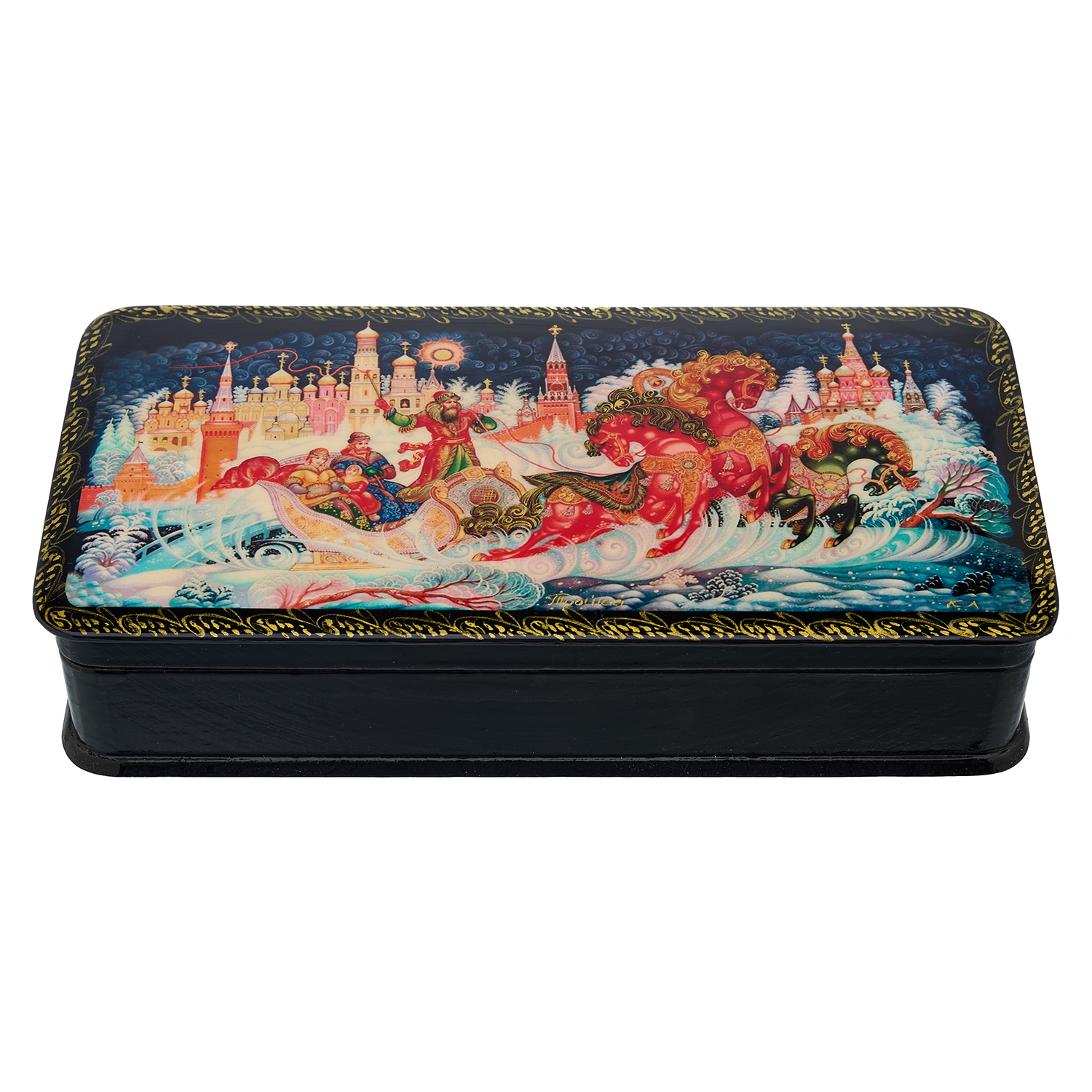 Шкатулка из папье-маше "Тройка. Зима".Размер: 185х90х40 мм