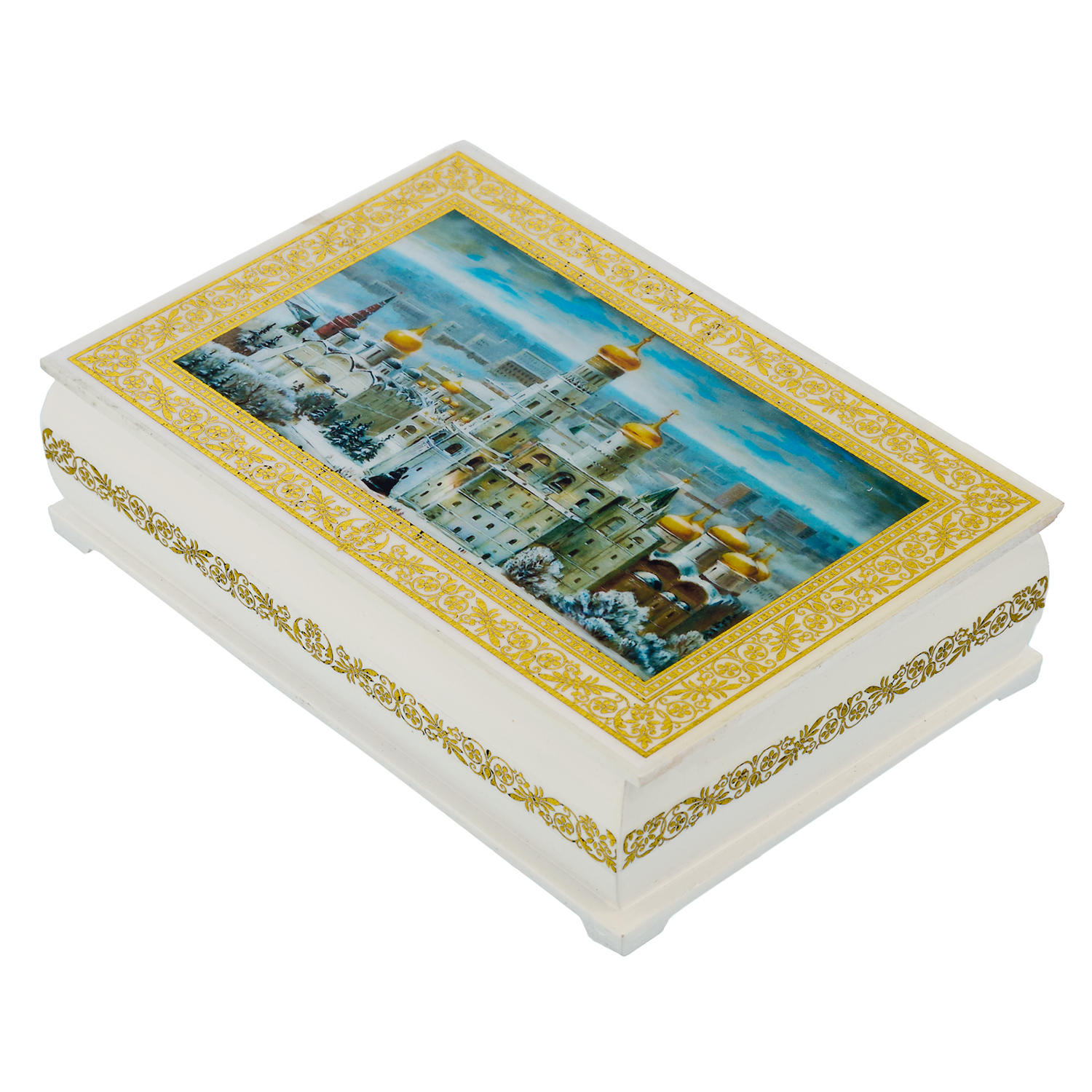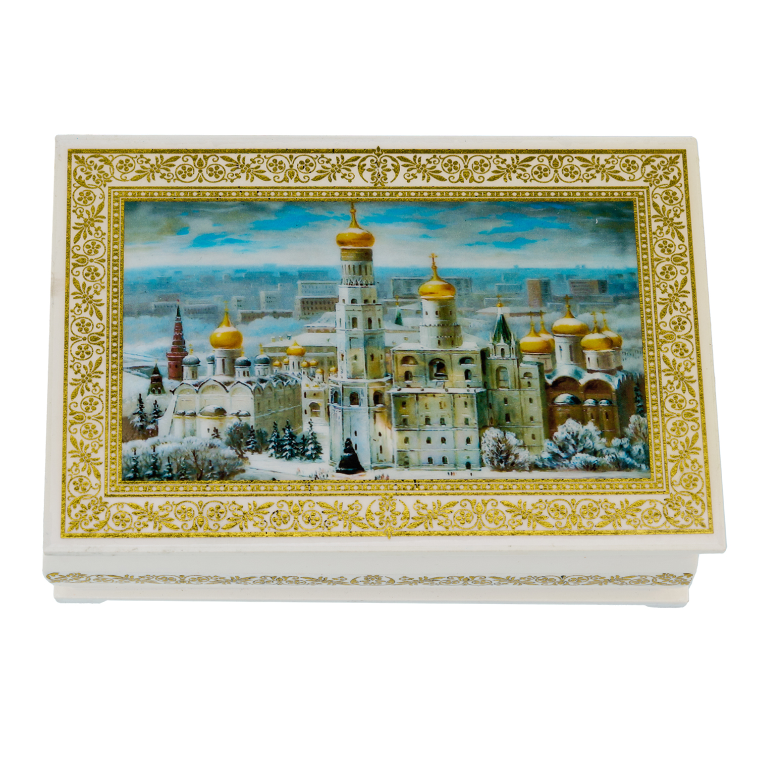 Шкатулка из папье-маше "Зимняя Москва. Храм Христа Спасителя"