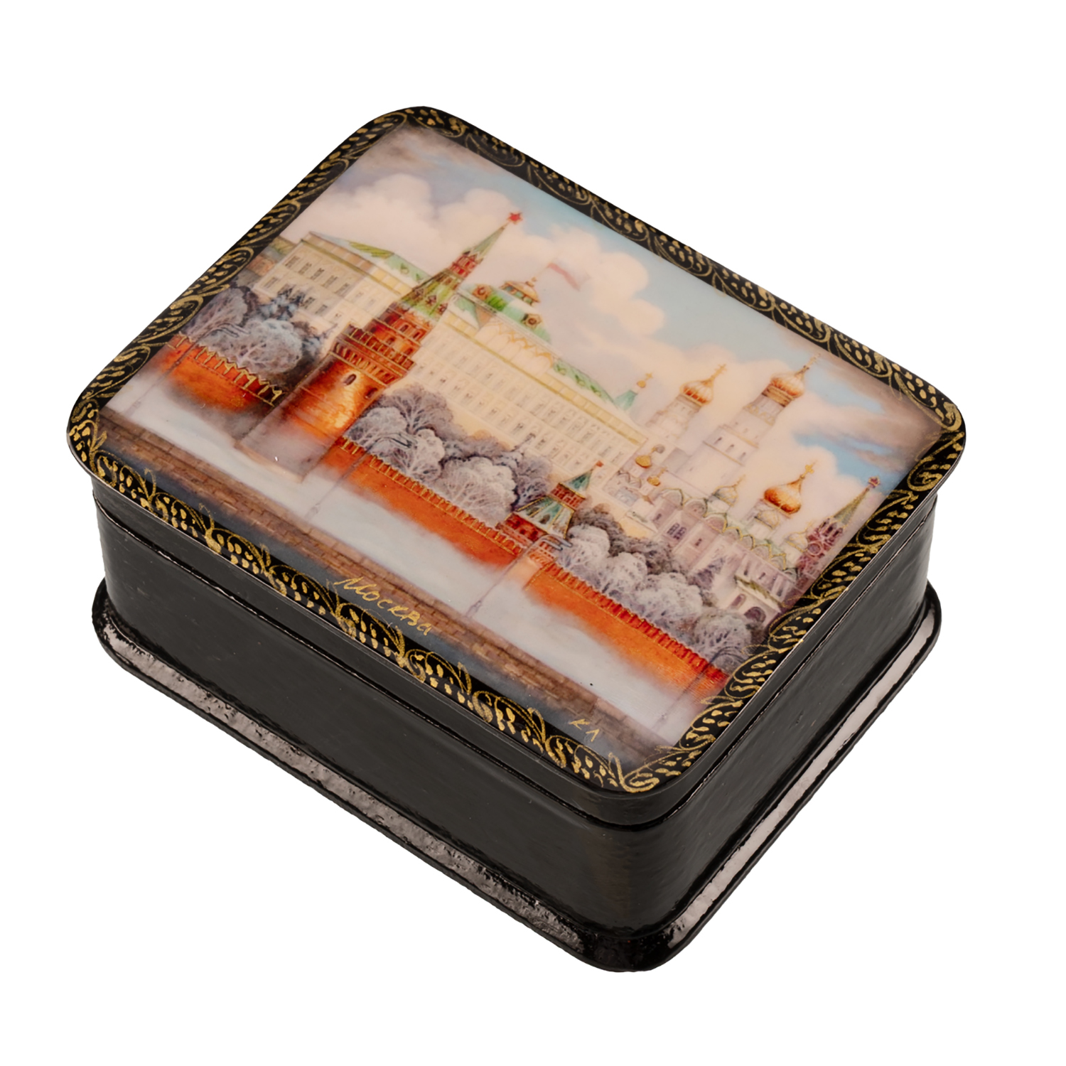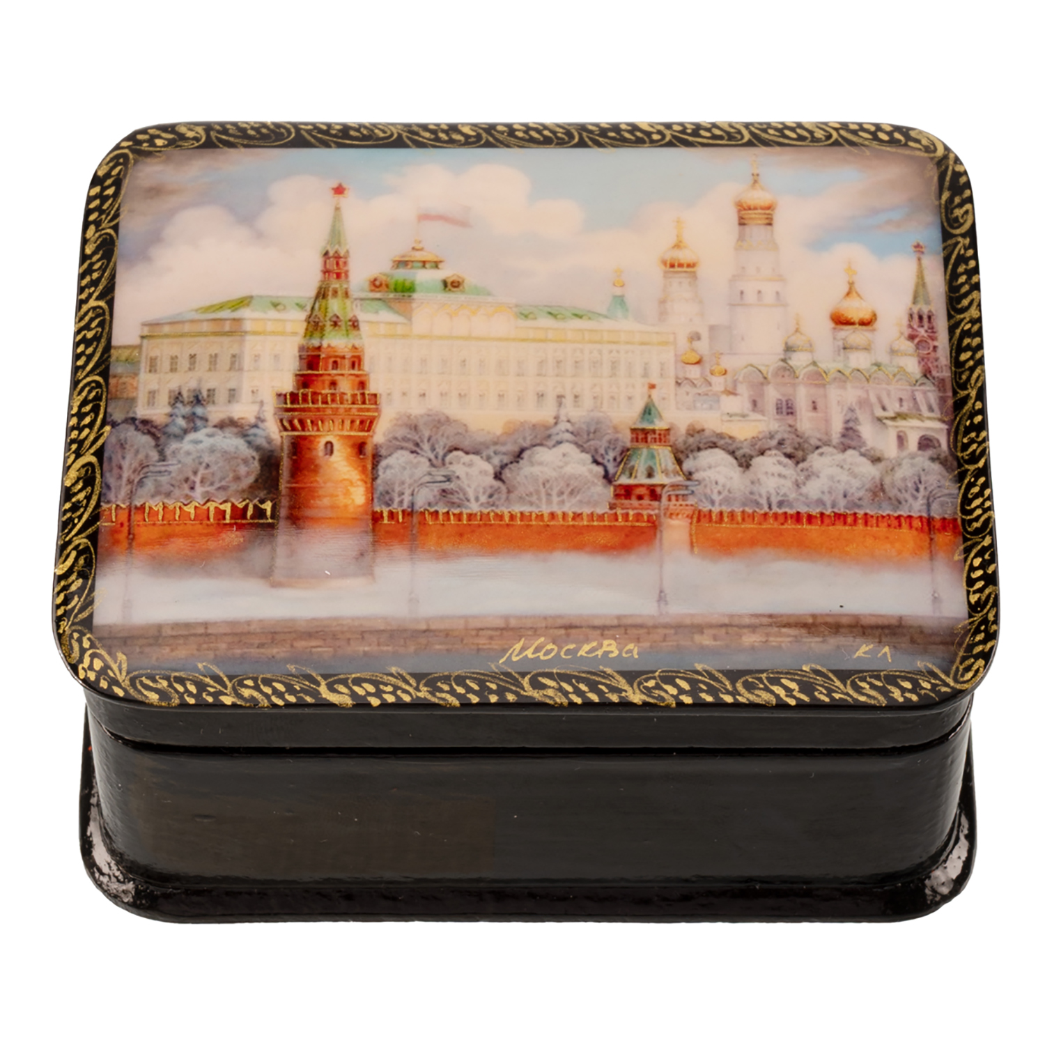 Шкатулка из папье-маше "Москва. Кремль".Размер: 95х75х35 мм