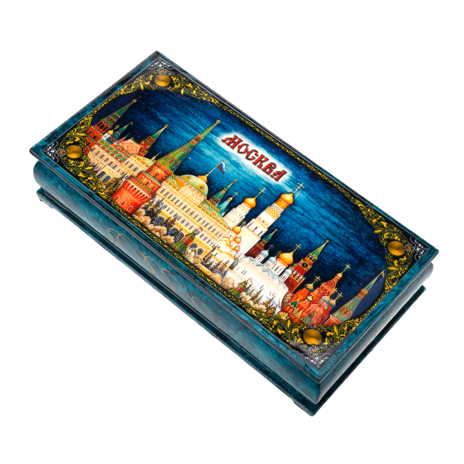 Шкатулка-купюрница из папье-маше с принтом "Москва. Храм Василия Блаженного"