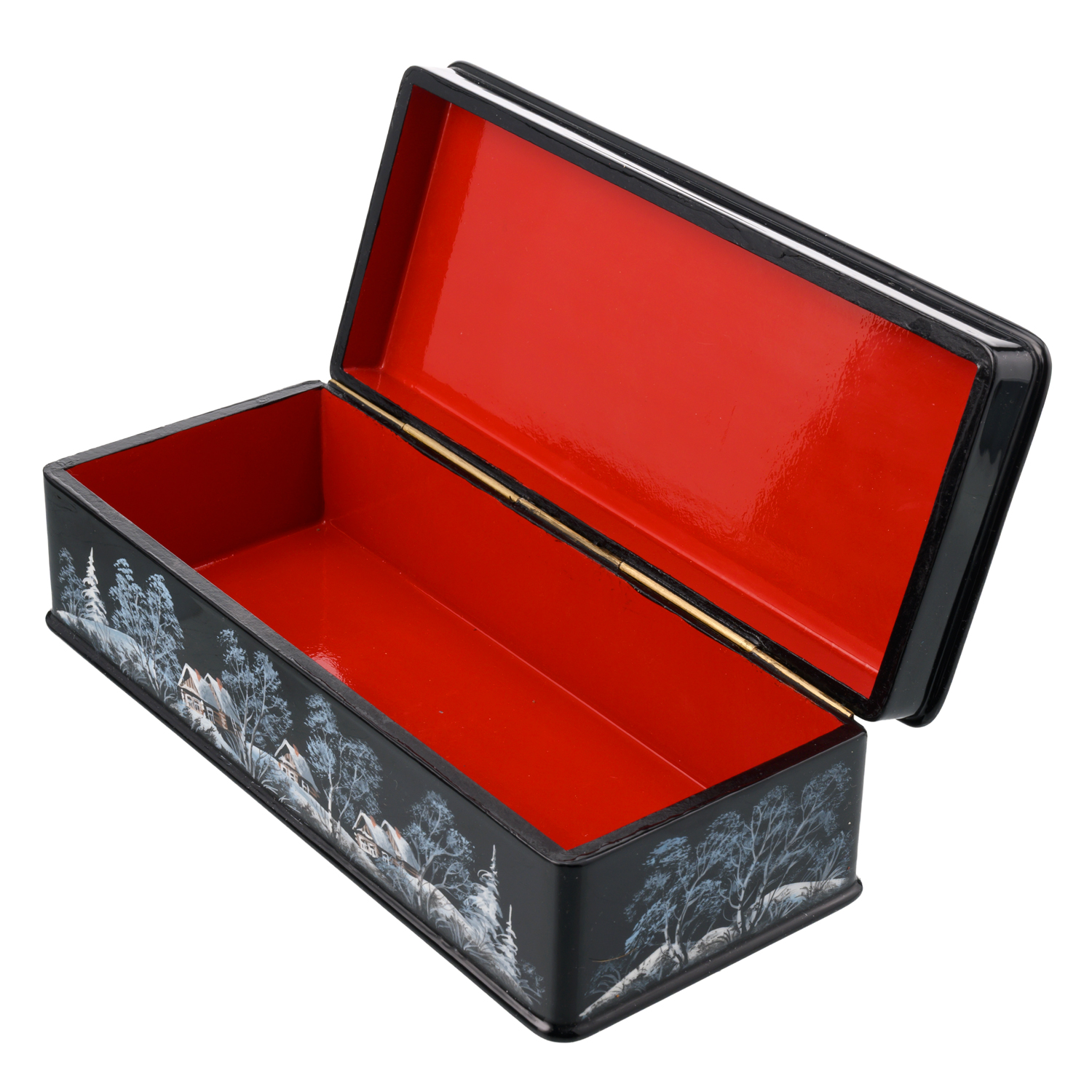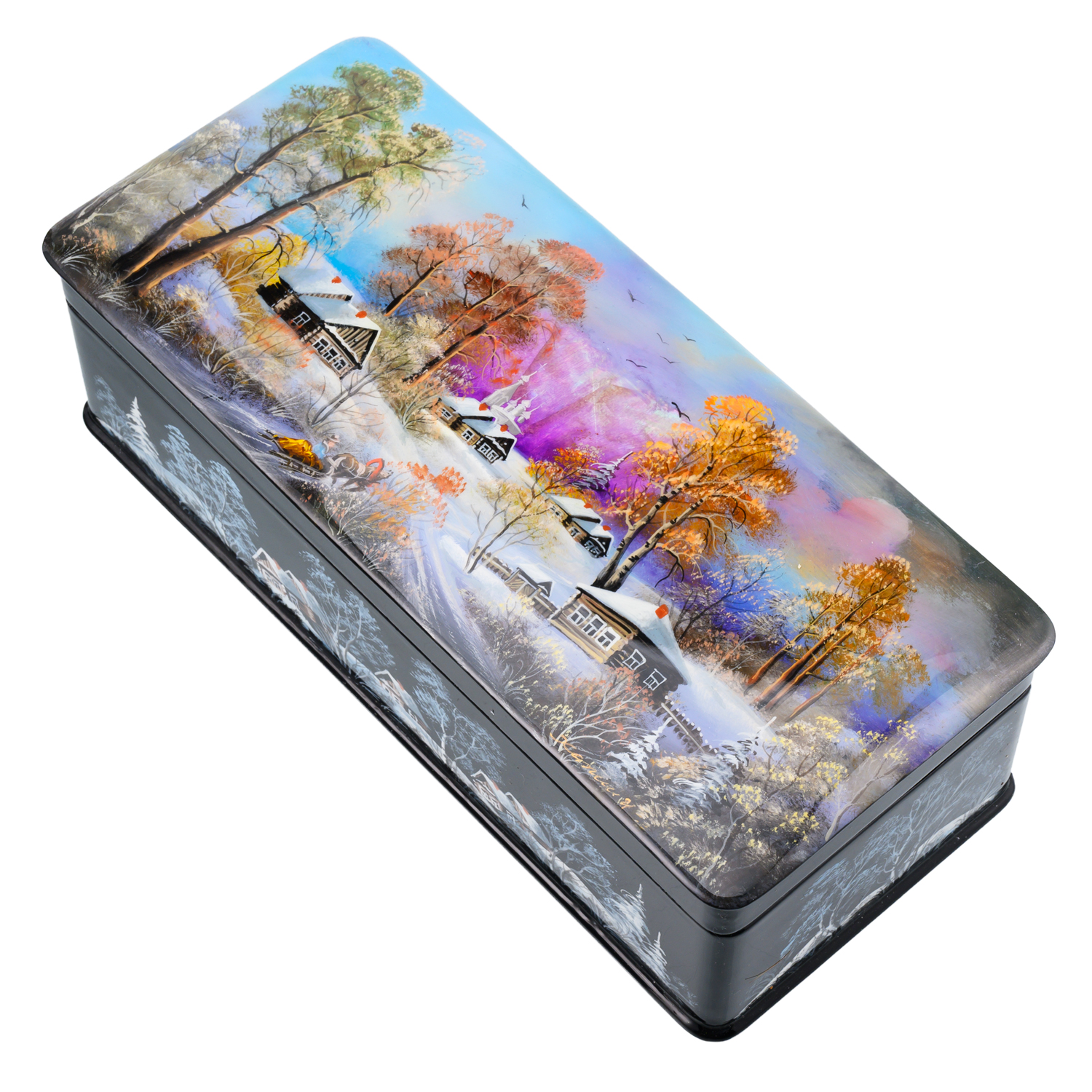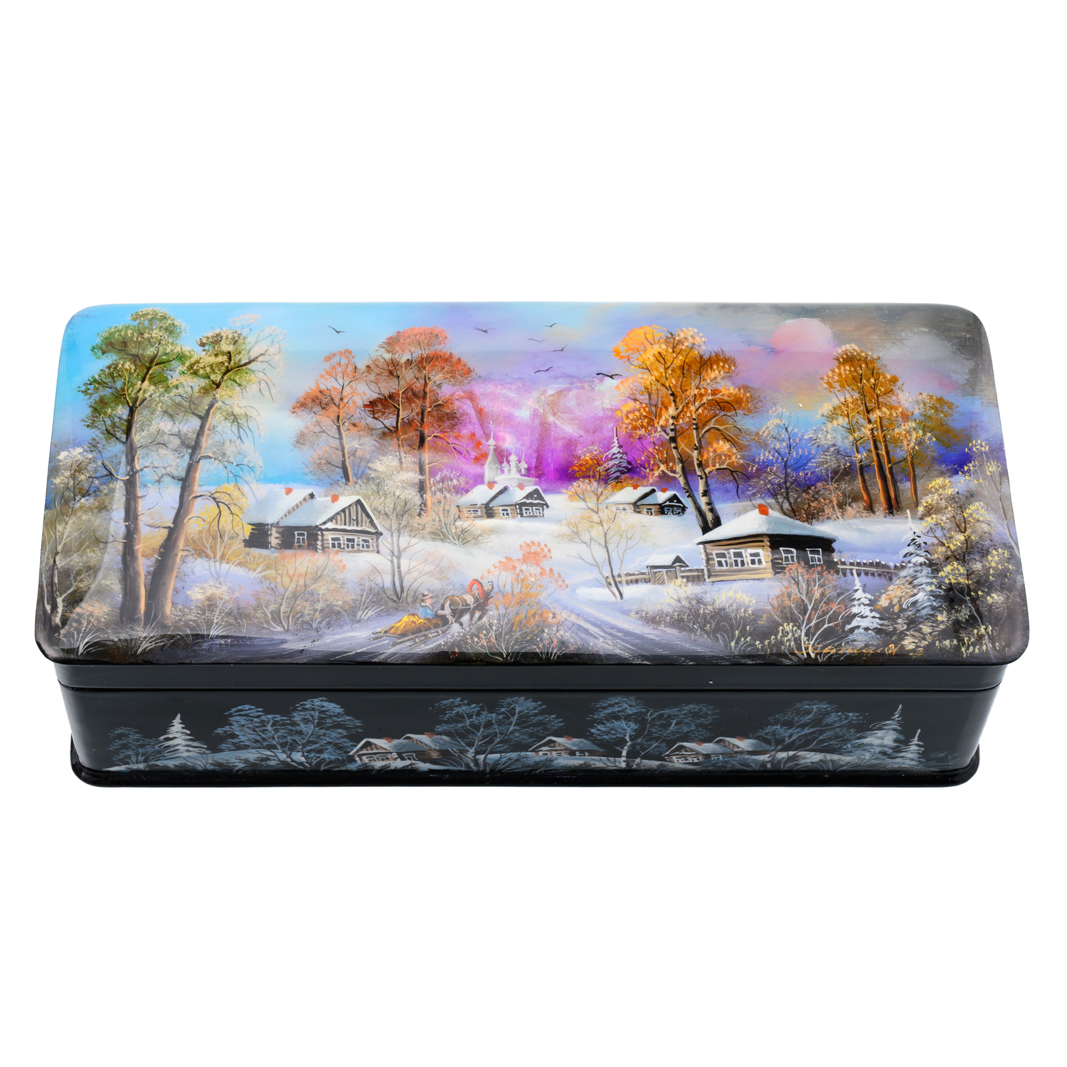 Русские подарки и сувениры → Шкатулки → Лаковая миниатюра → Шкатулка с художественной росписью "Зима в деревне"