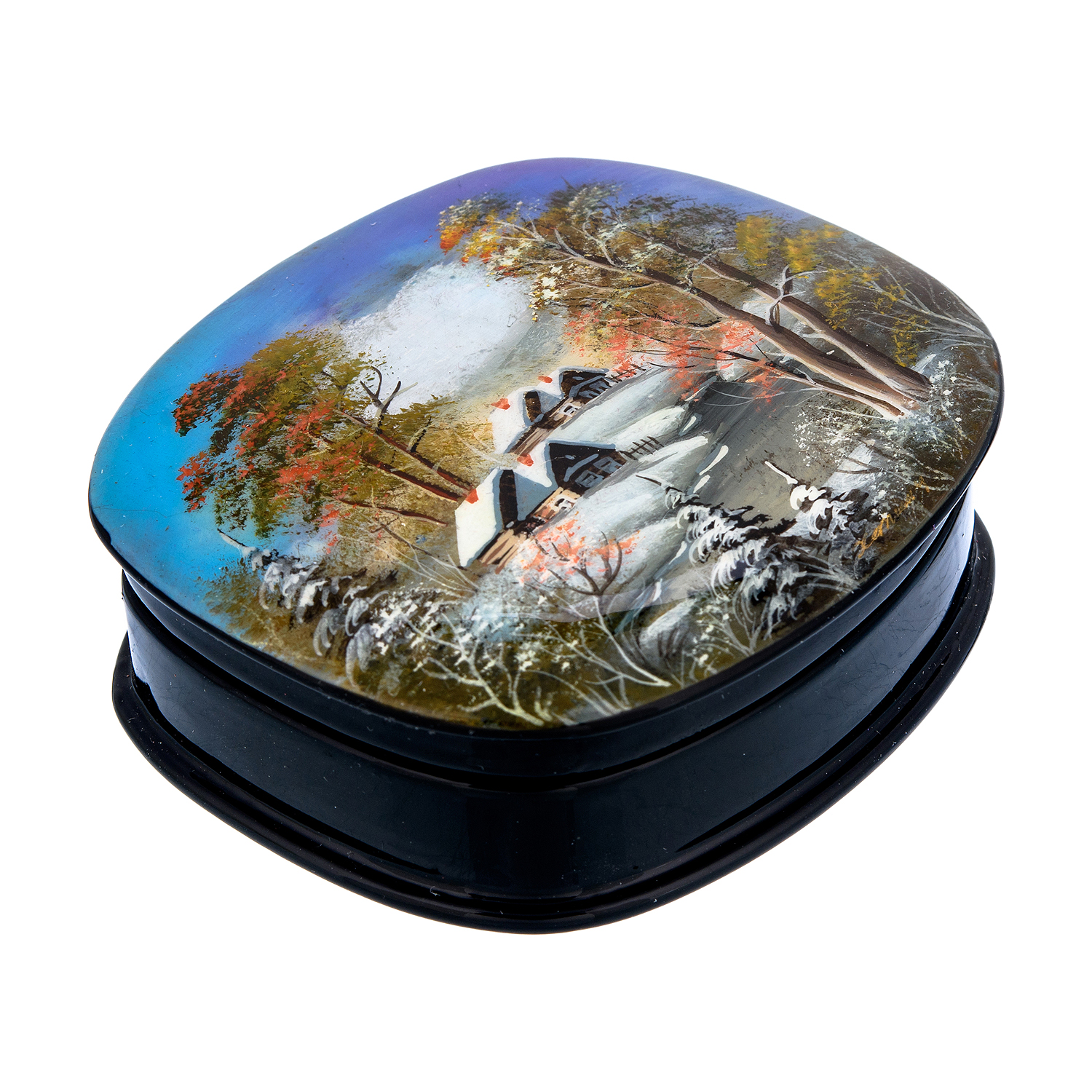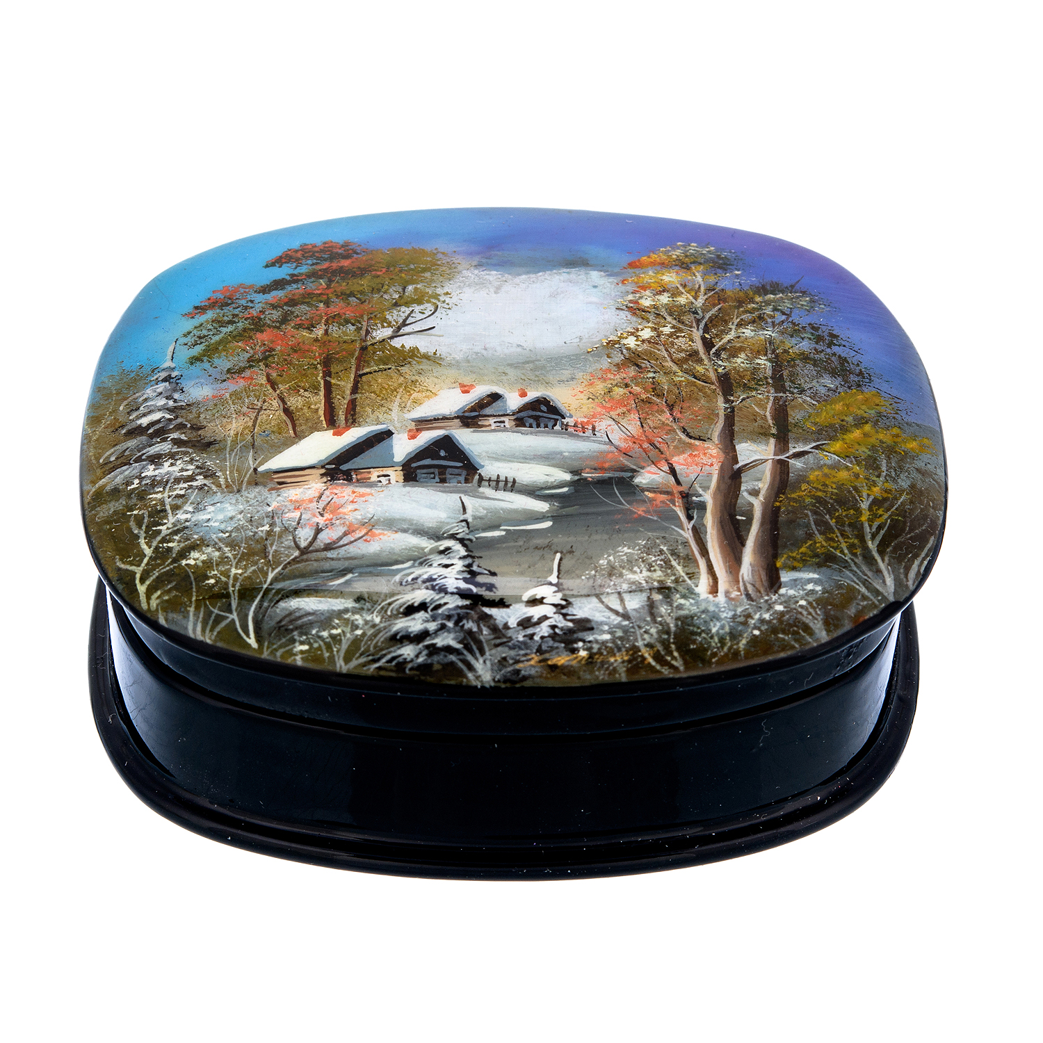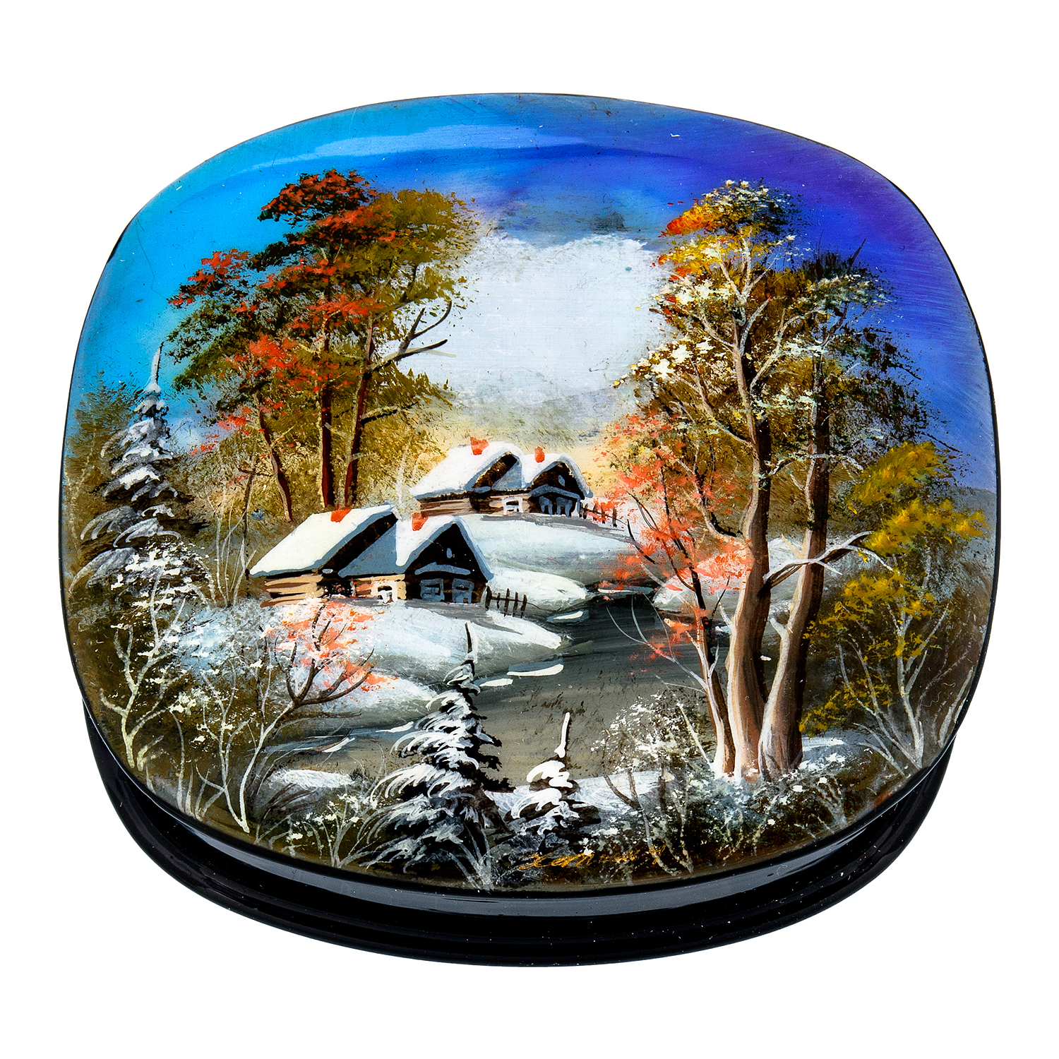 Русские подарки и сувениры → Шкатулки → Лаковая миниатюра → Шкатулка с художественной росписью "Зима в деревне"