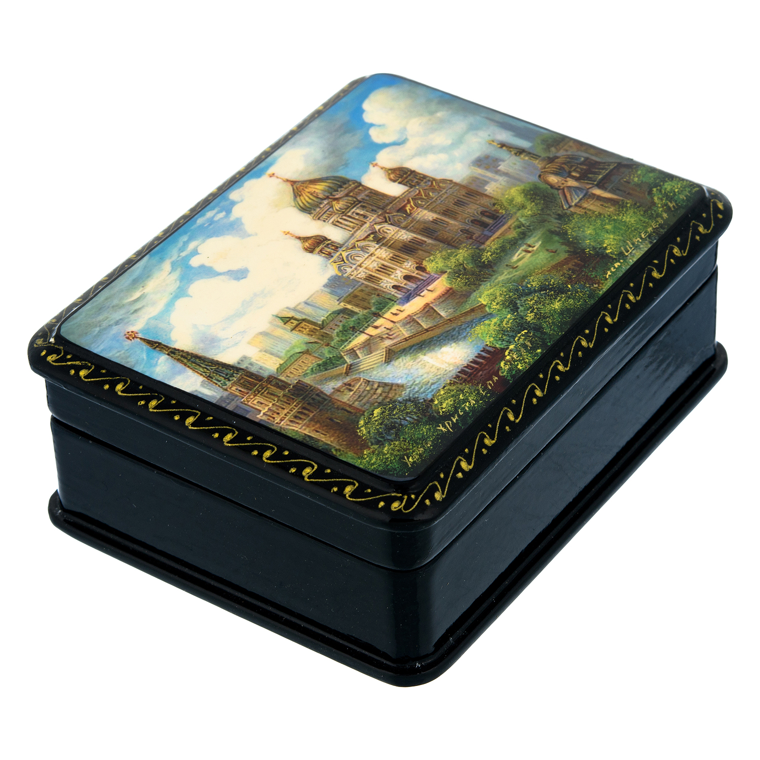 Шкатулка с художественной росписью "Храм Христа Спасителя".Материалы: папье-маше, краски, лак.