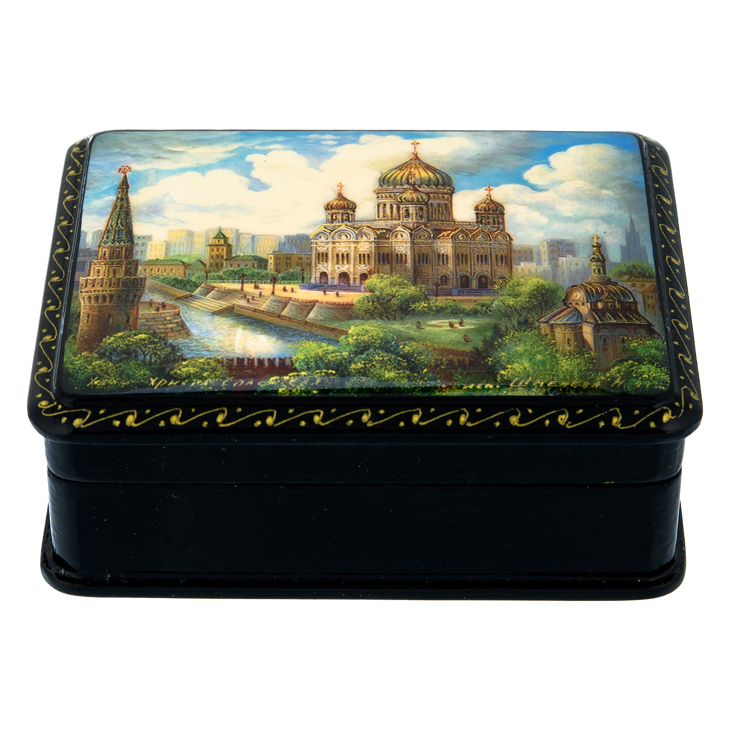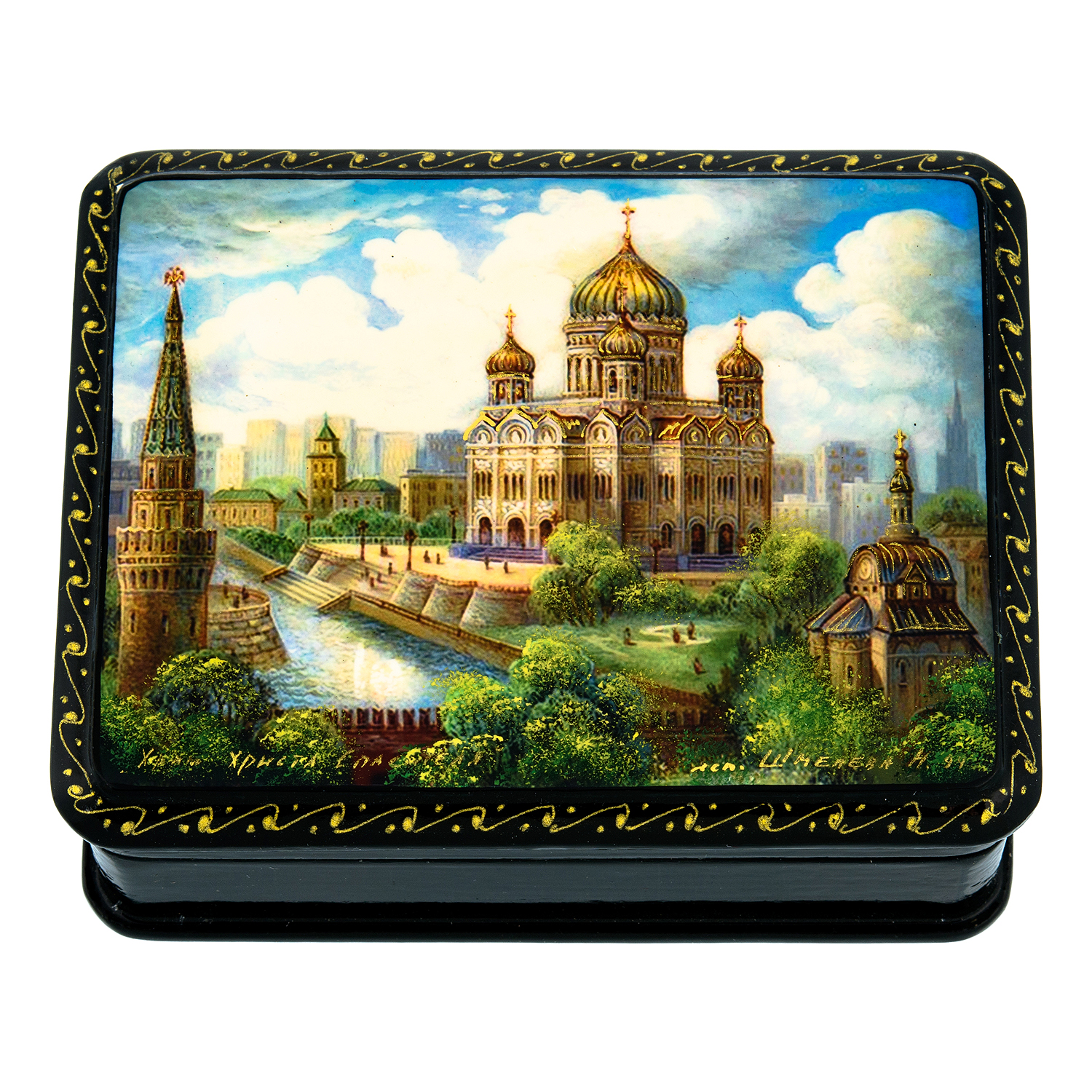 Русские подарки и сувениры → Шкатулки → Лаковая миниатюра → Шкатулка с художественной росписью "Храм Христа Спасителя"