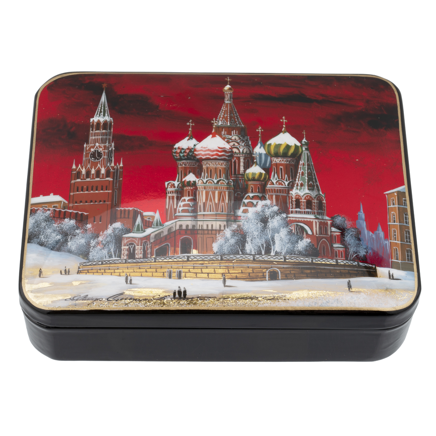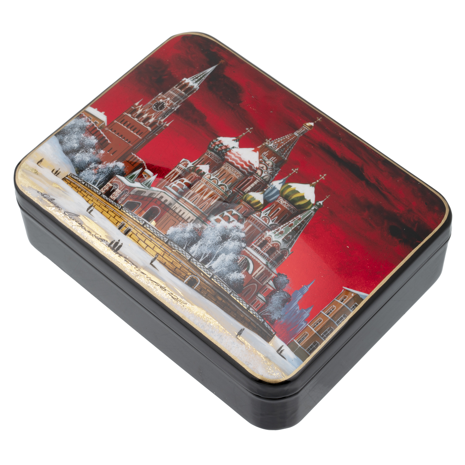 Русские подарки и сувениры → Шкатулки → Лаковая миниатюра → Шкатулка с художественной росписью "Москва. Храм Василия Блаженного"