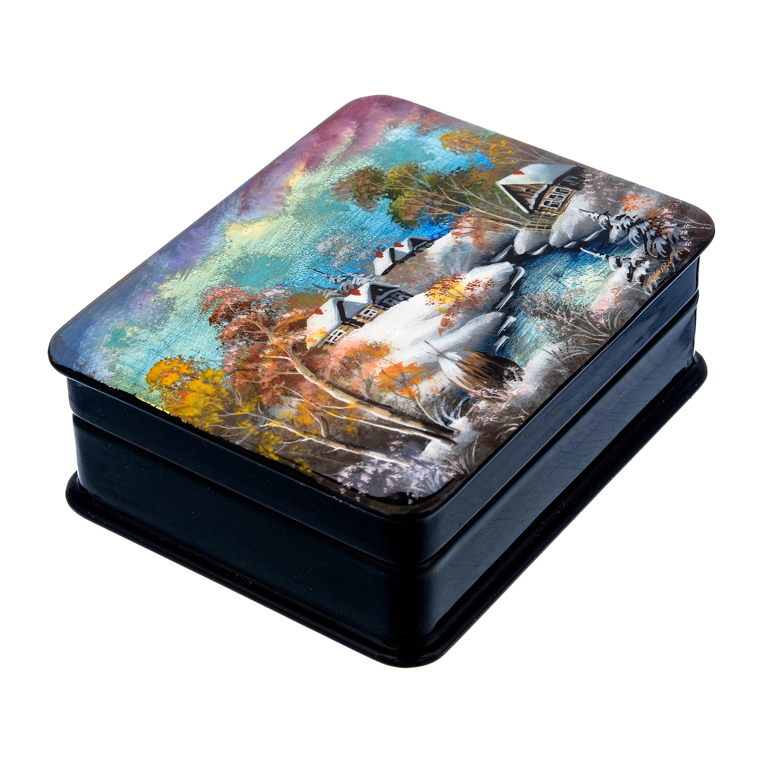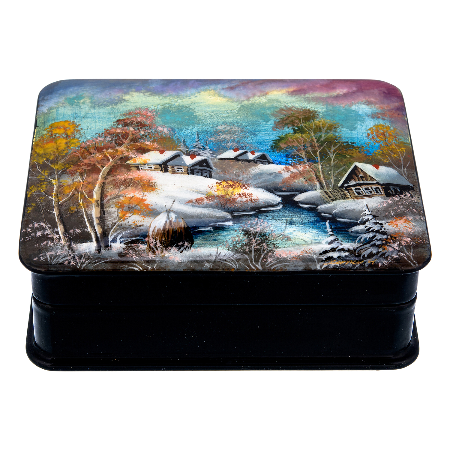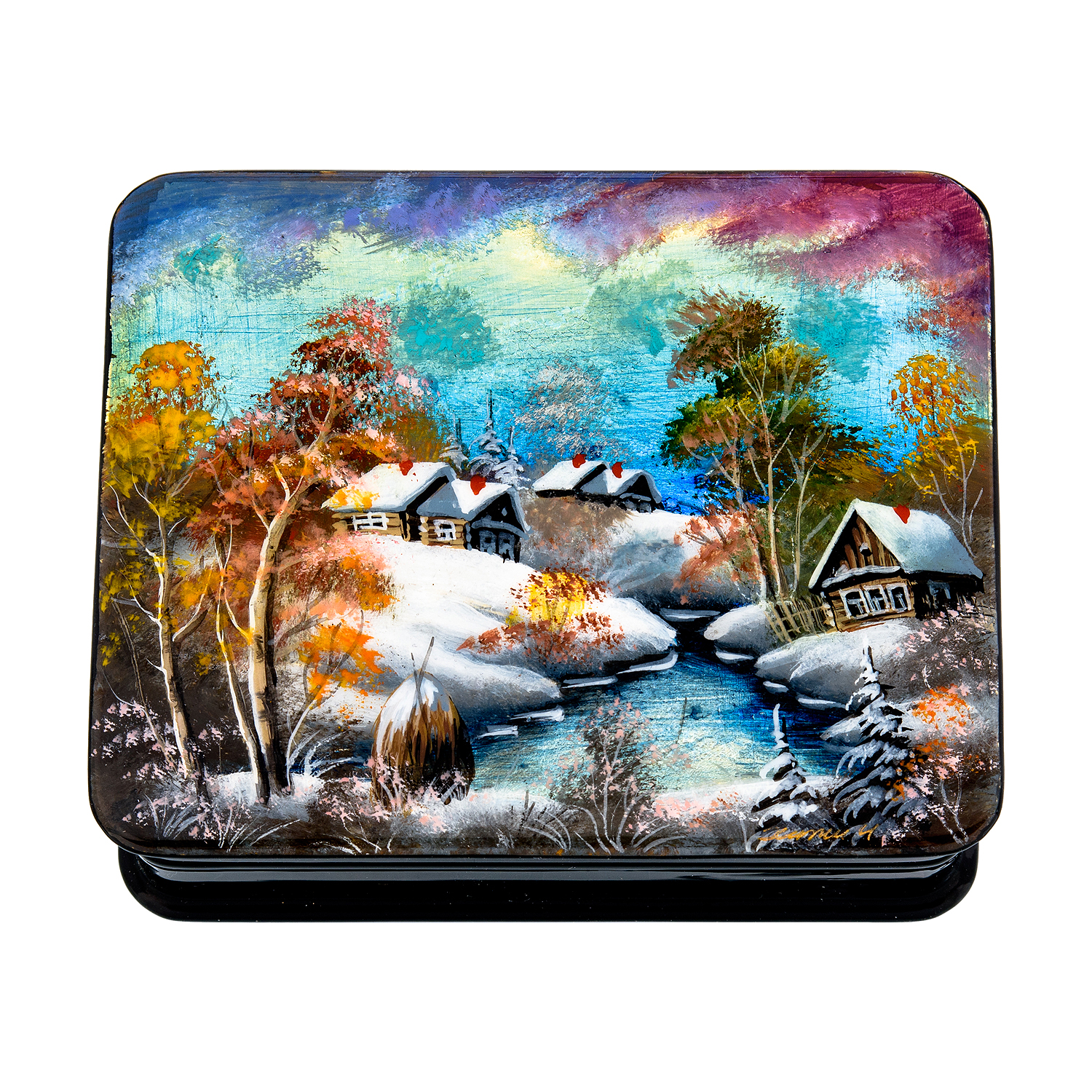 Русские подарки и сувениры → Шкатулки → Лаковая миниатюра → Шкатулка с художественной росписью "Зима в деревне"