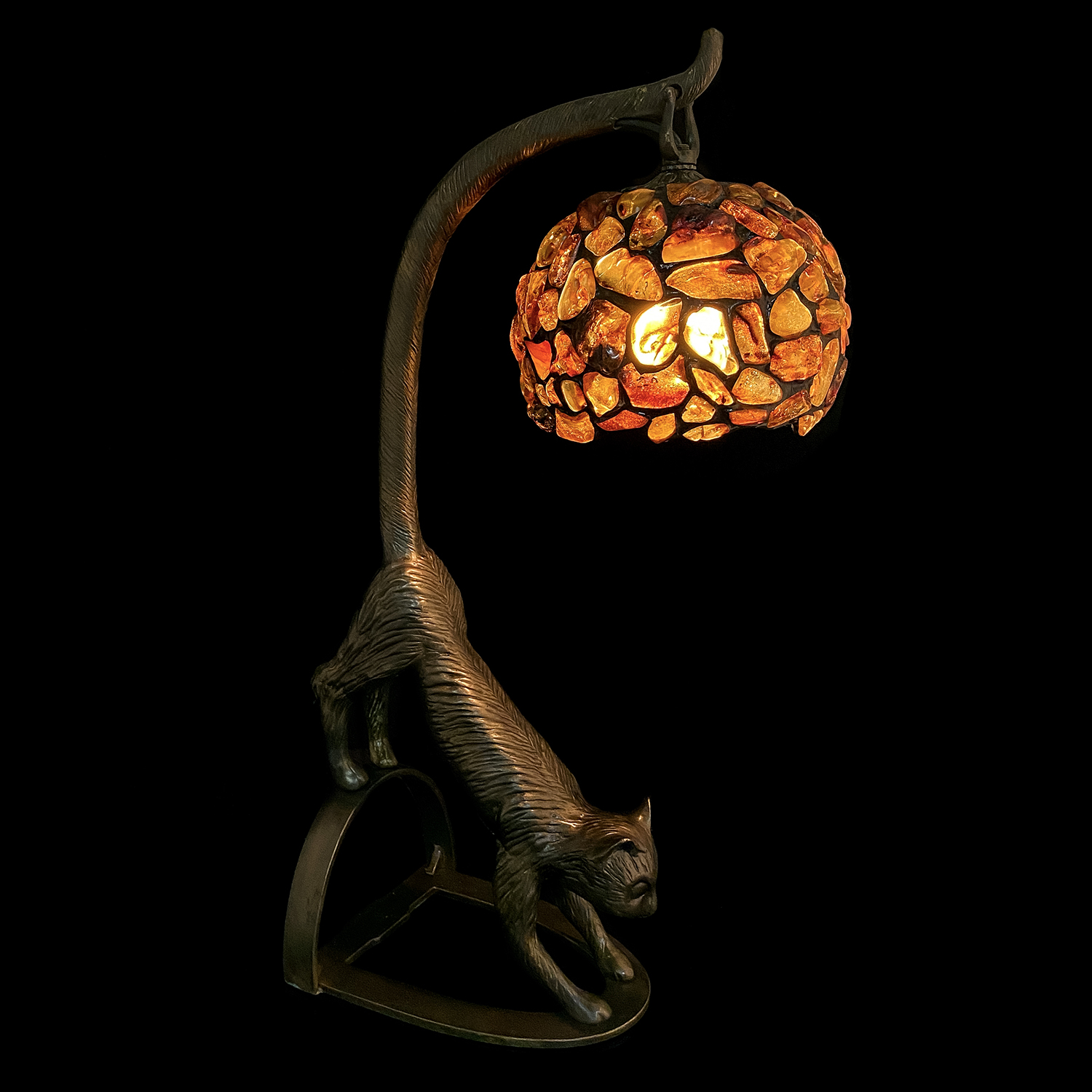 Русские подарки и сувениры → Интерьерные изделия → Лампы → Комплект из двух настольных ламп из янтаря и бронзы "Коты"