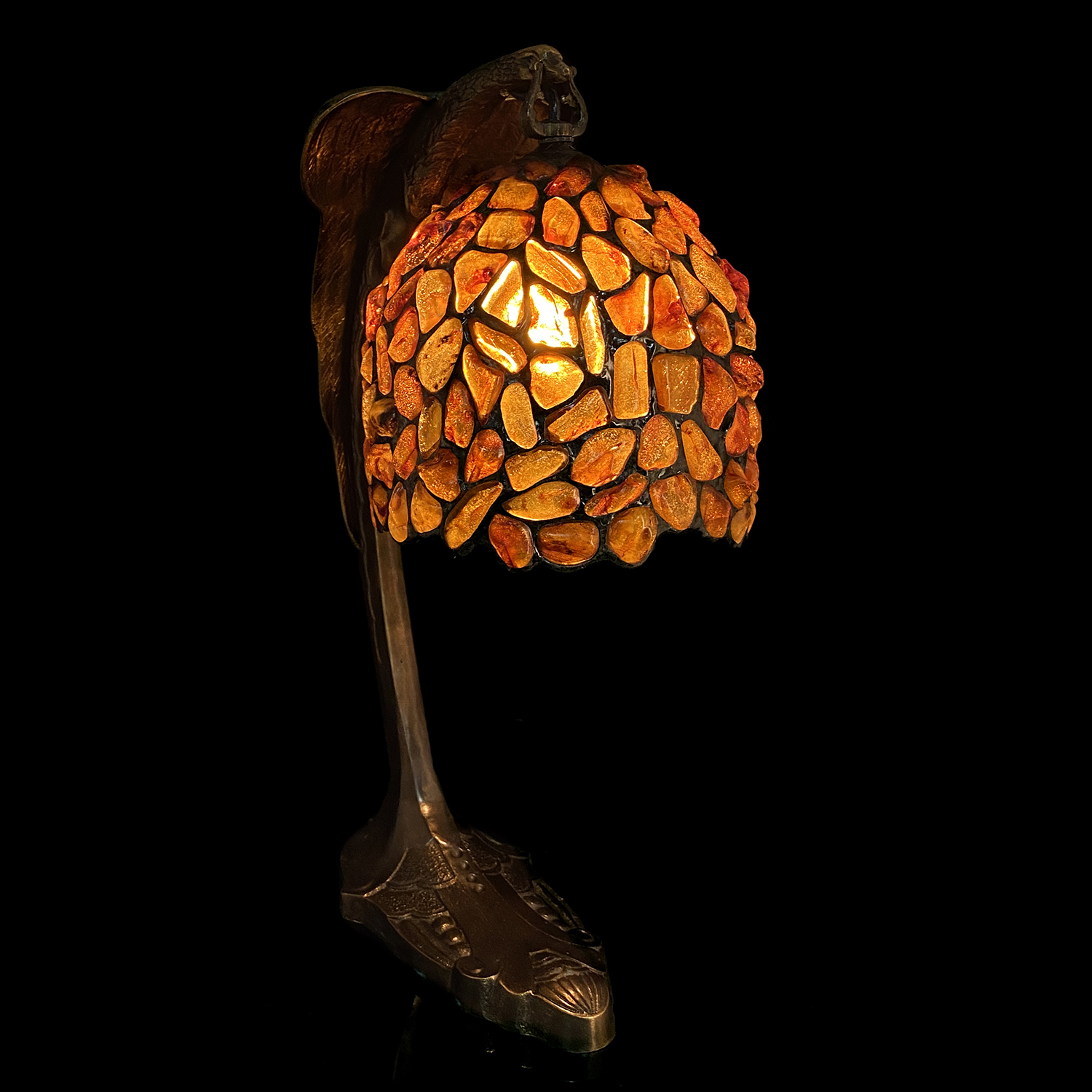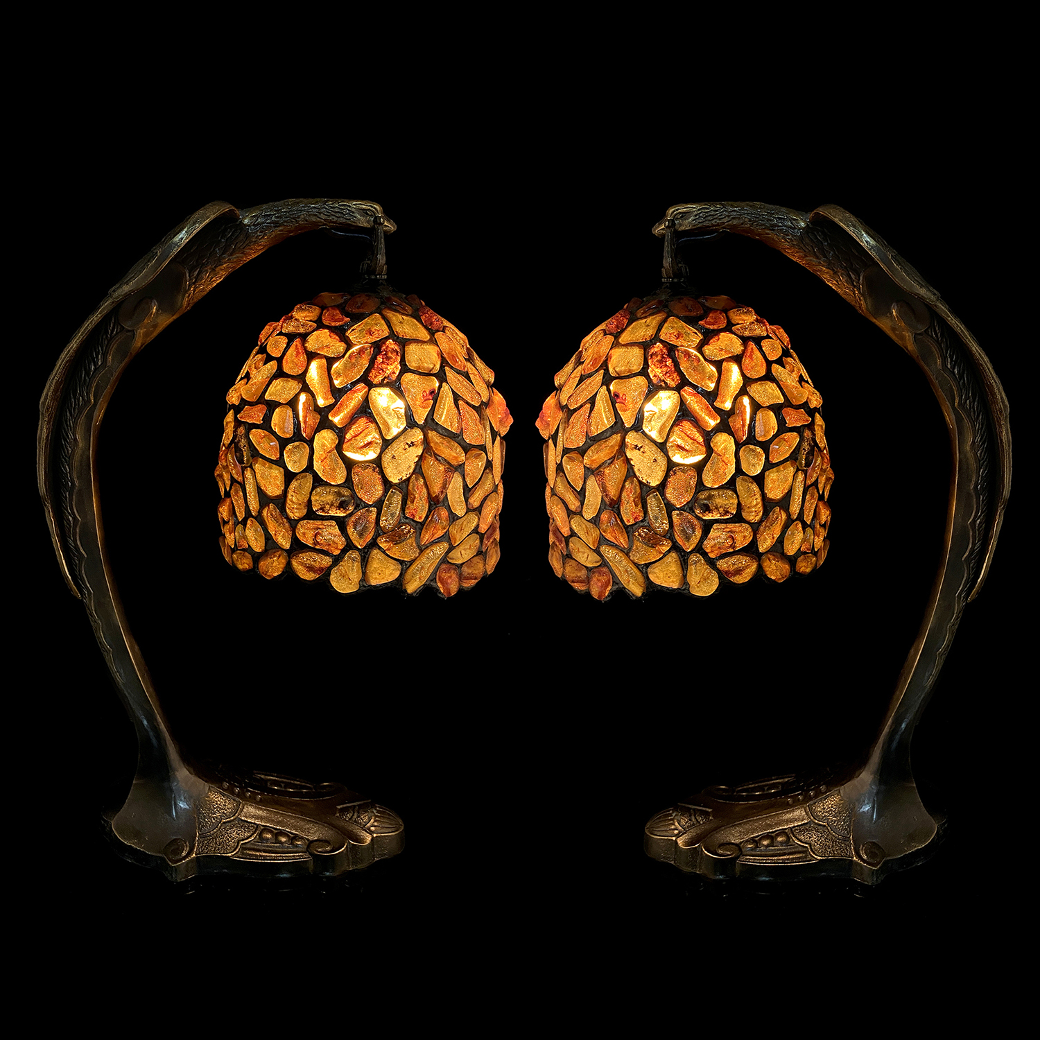 Комплект из двух настольных ламп из янтаря и бронзы "Орел"